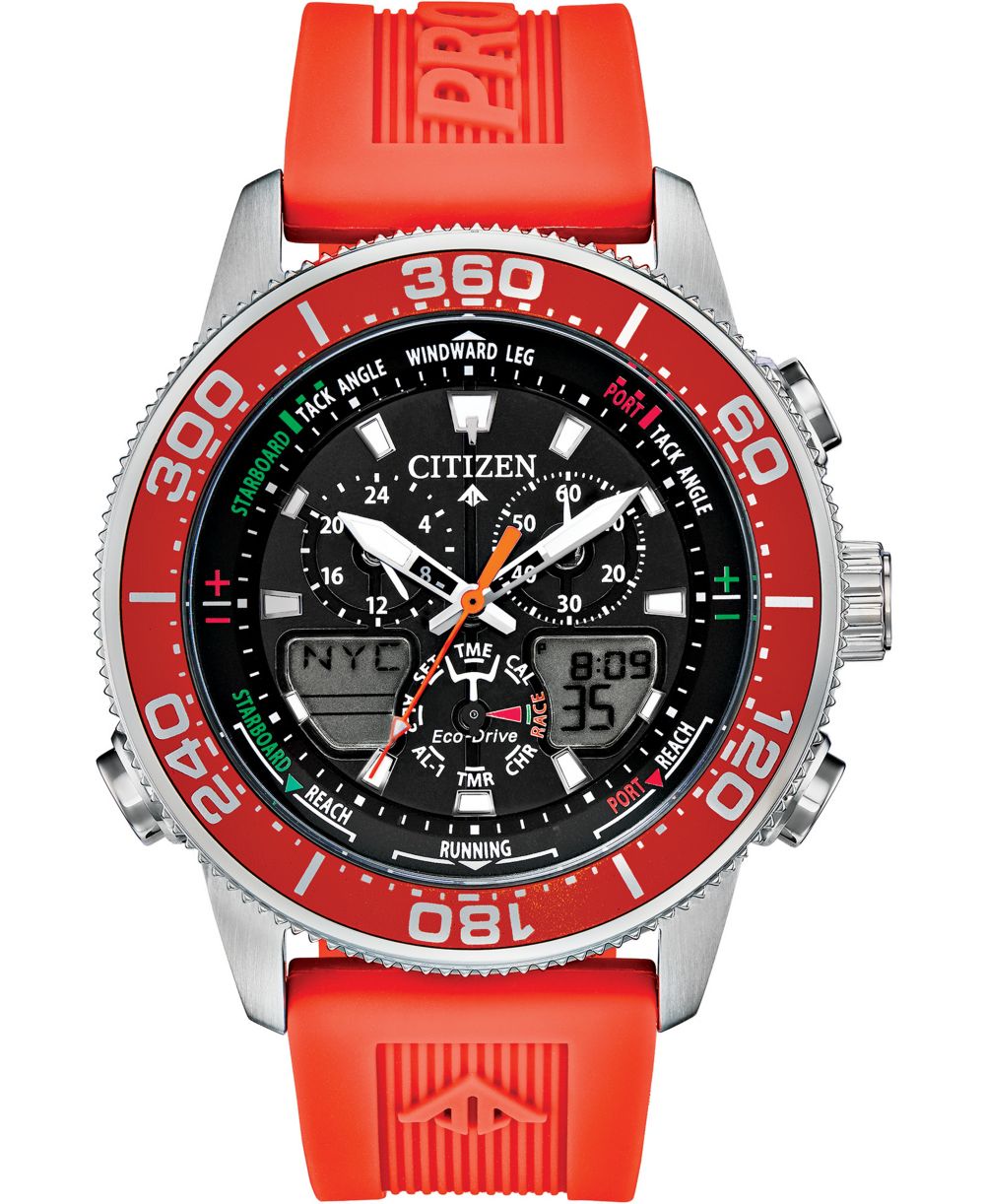 Citizen Eco Drive Mens Promaster Sailhawk Analog Digital Orange Polyurethane Strap Watch 44mm