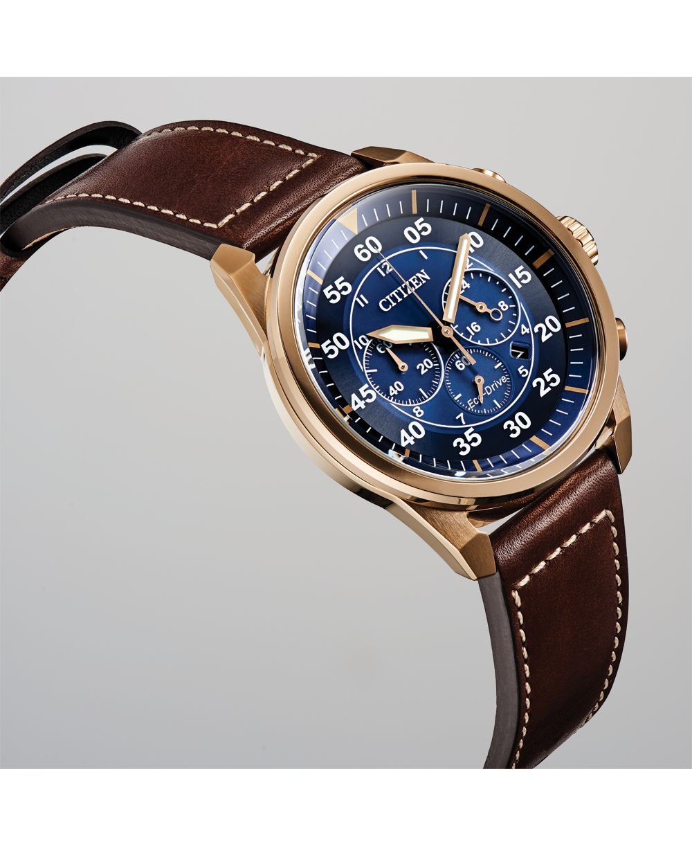Citizen Eco Drive Mens Chronograph Avion Brown Leather Strap Watch 48mm