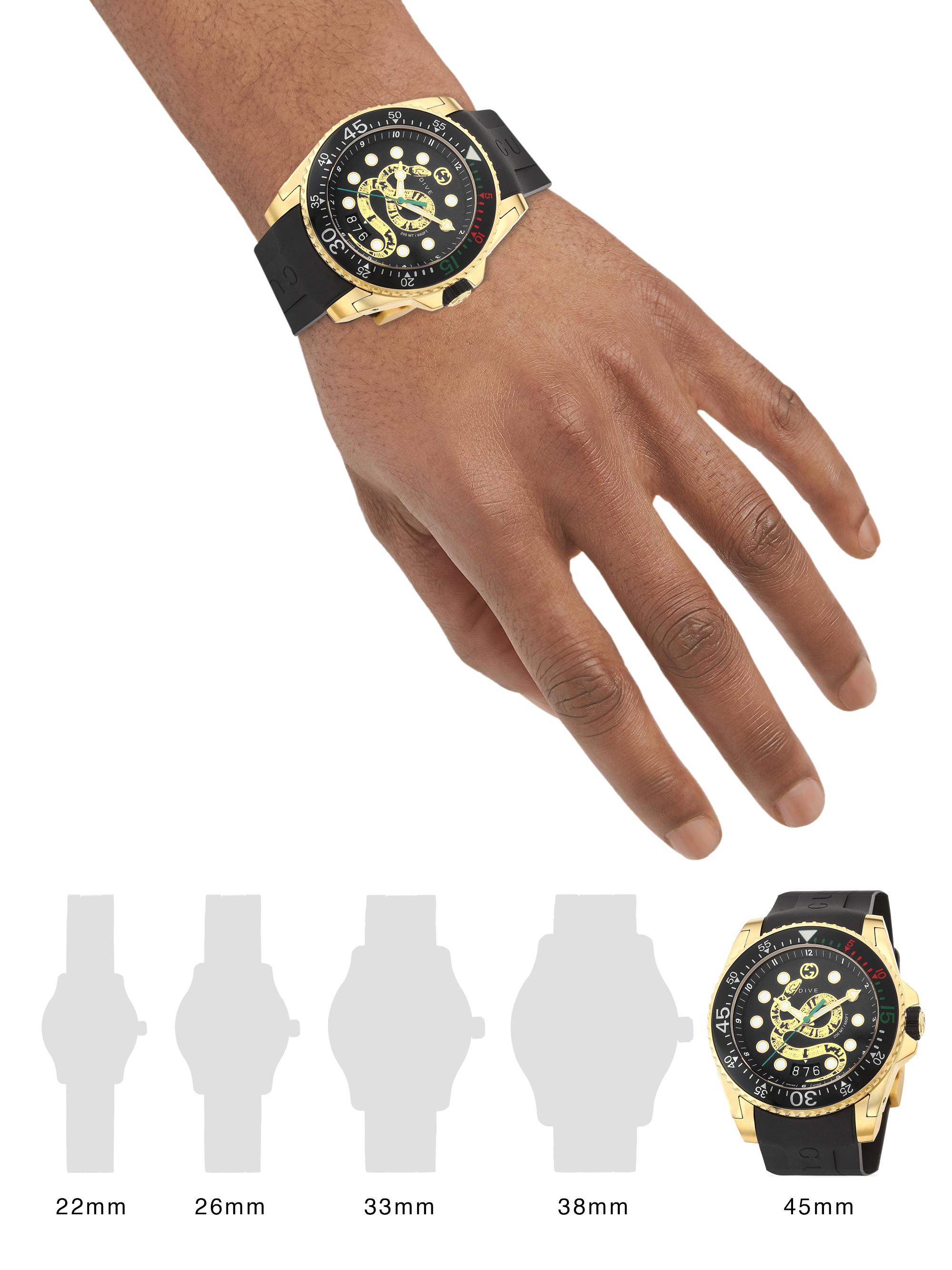 Gucci Dive 45MM Gold PVD King Snake Dial with Rubber Strap