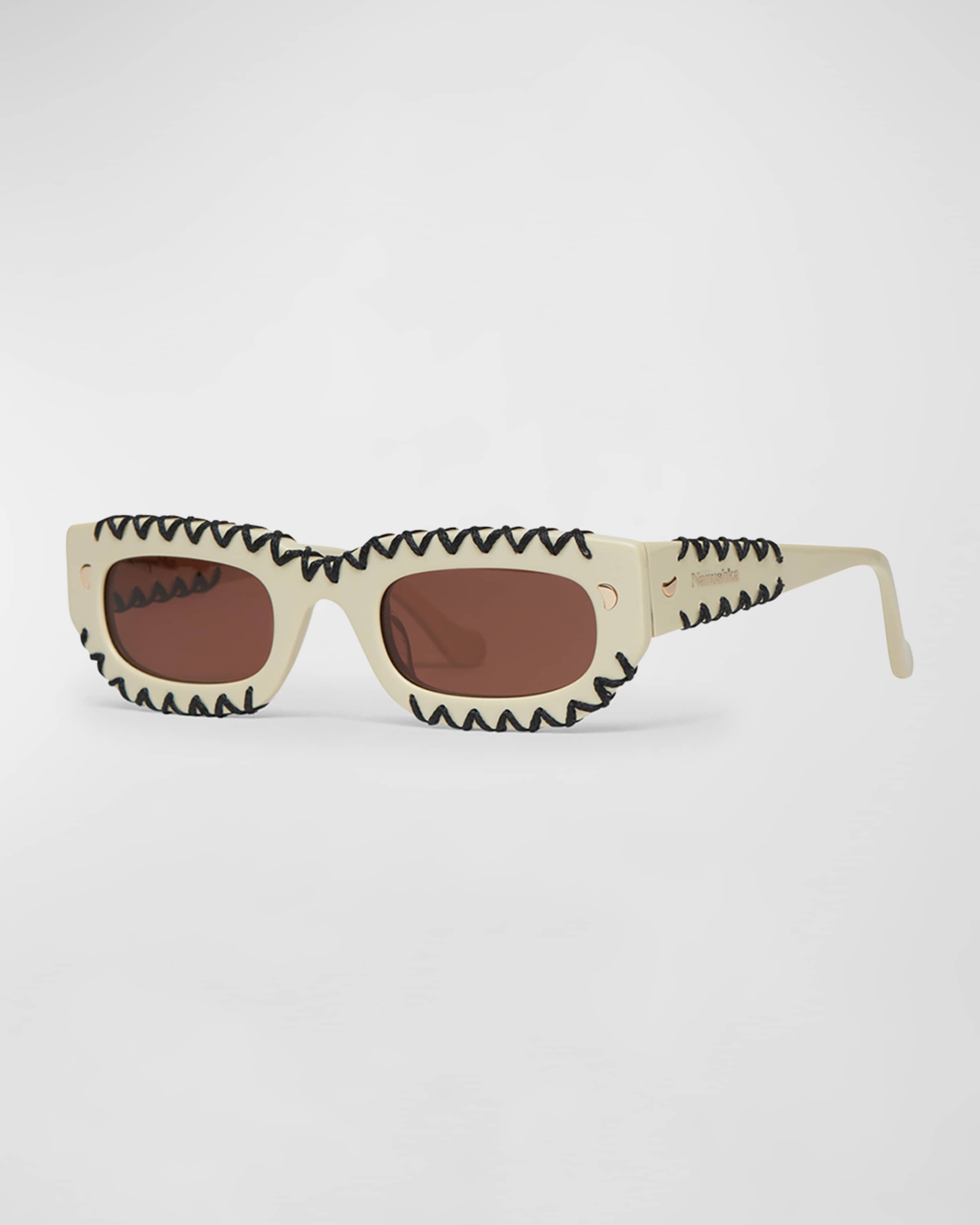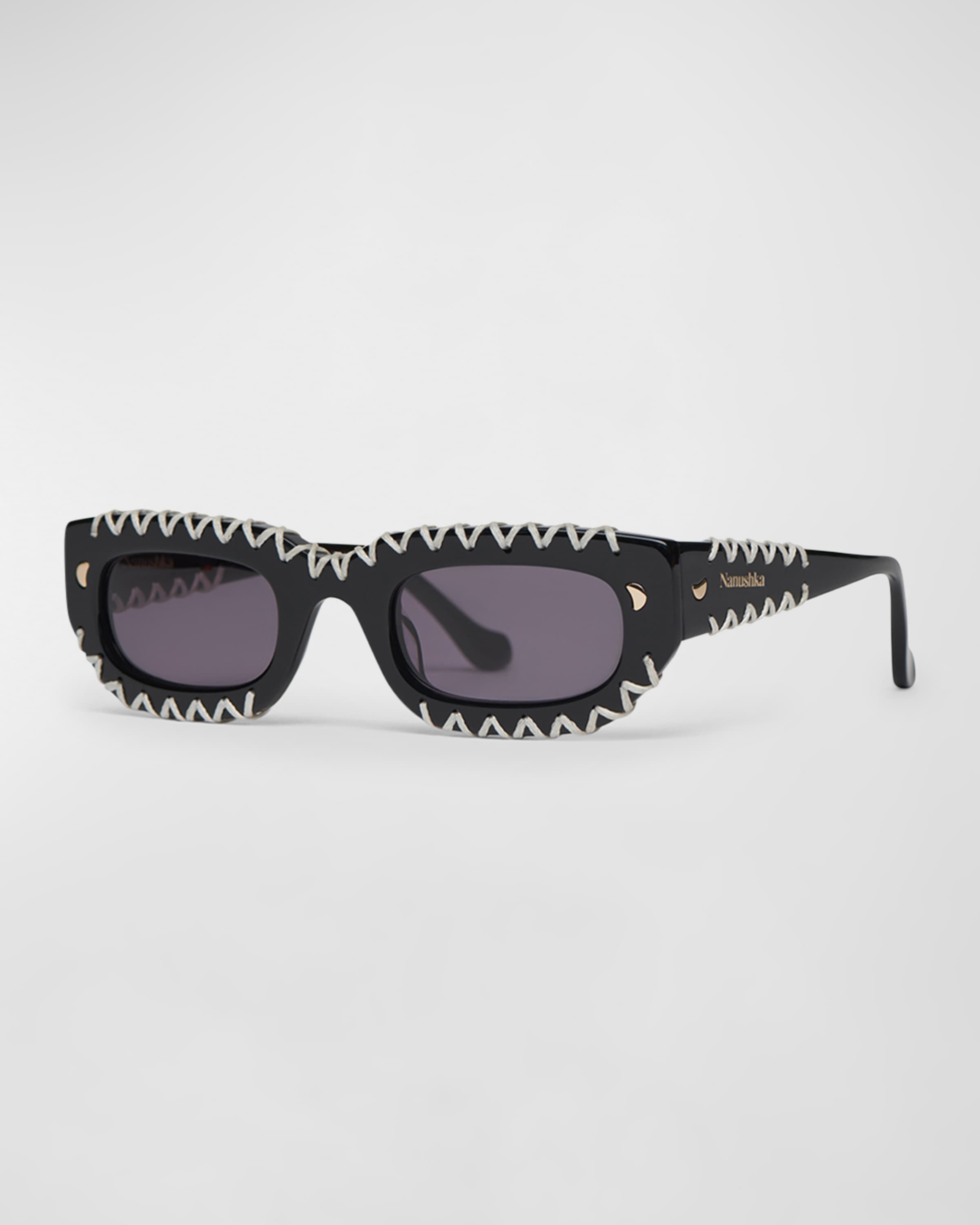 Nanushka Kadee Crochet Acetate Rectangle Sunglasses