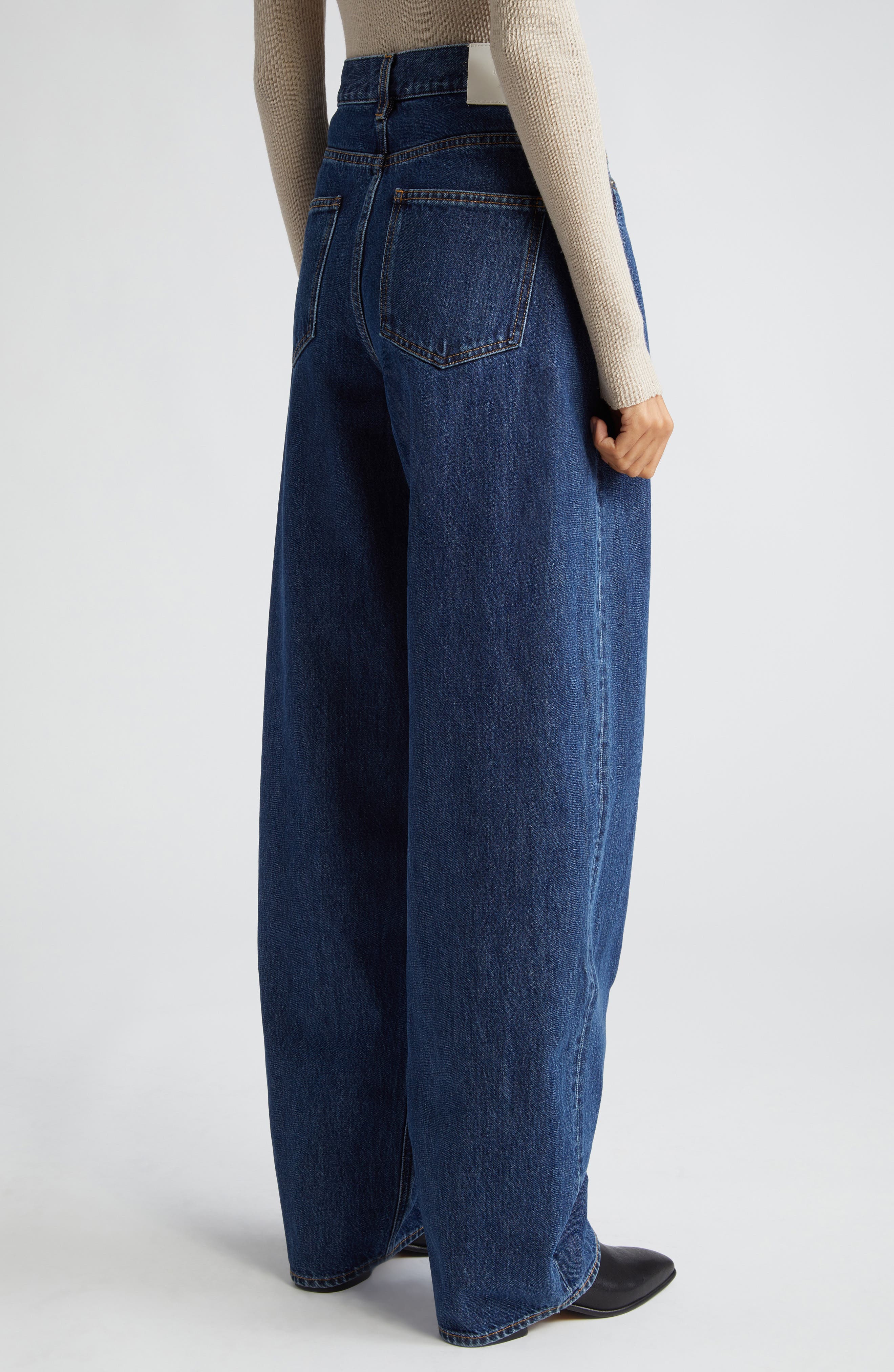 LOULOU DE SAISON Samur High Waist Tapered Leg Jeans_Washed Blue
