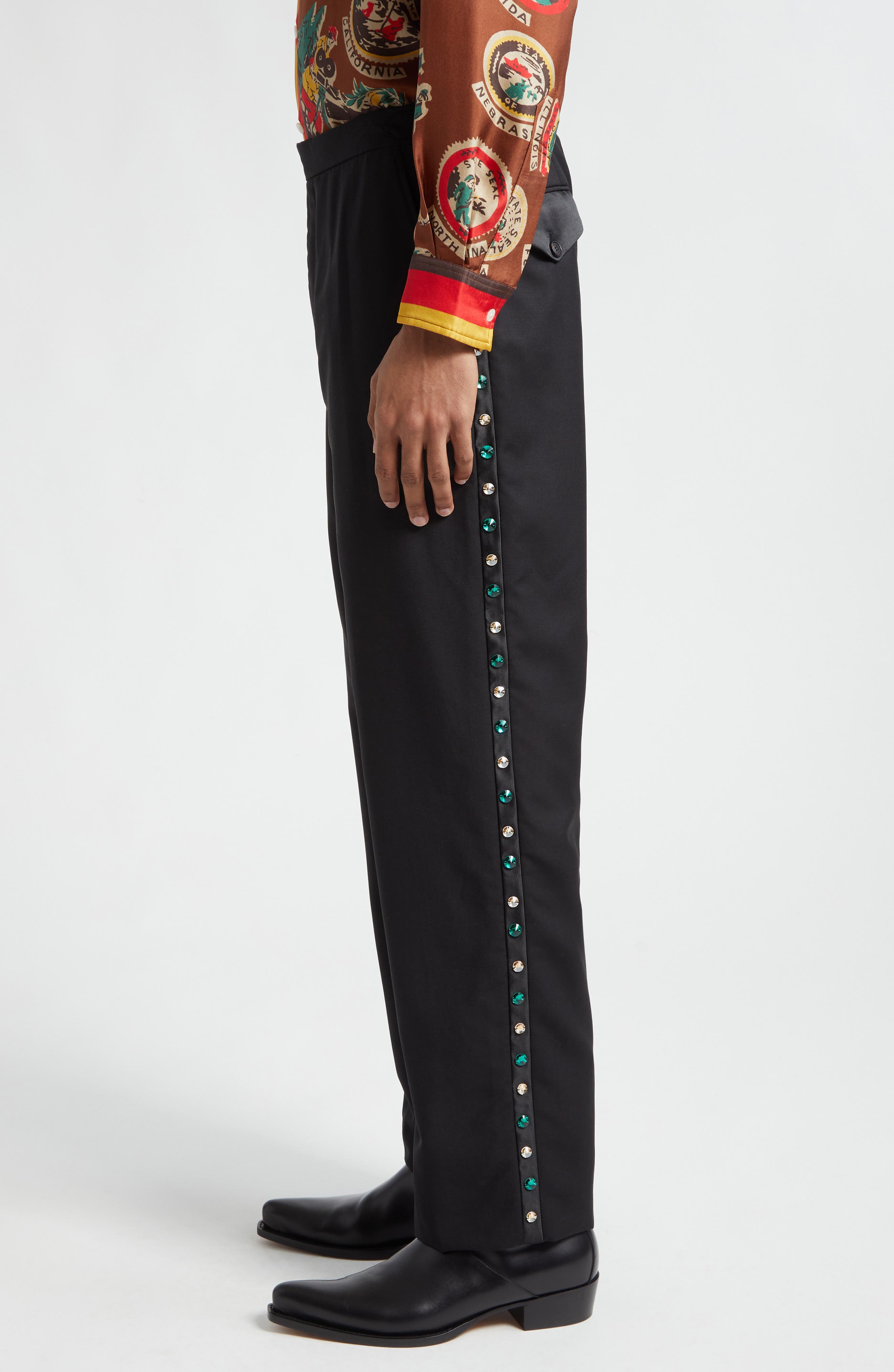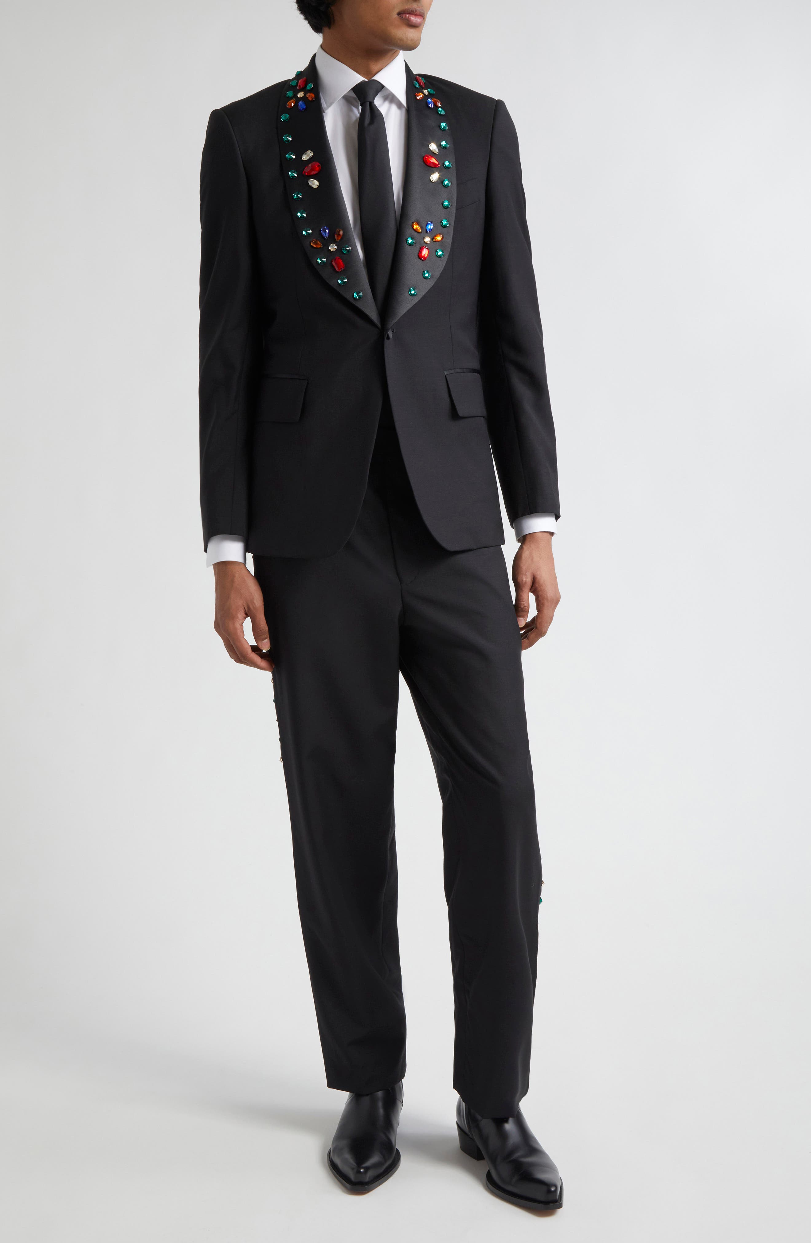 Bode Crystal Wool & Mohair Tuxedo Trousers_Black