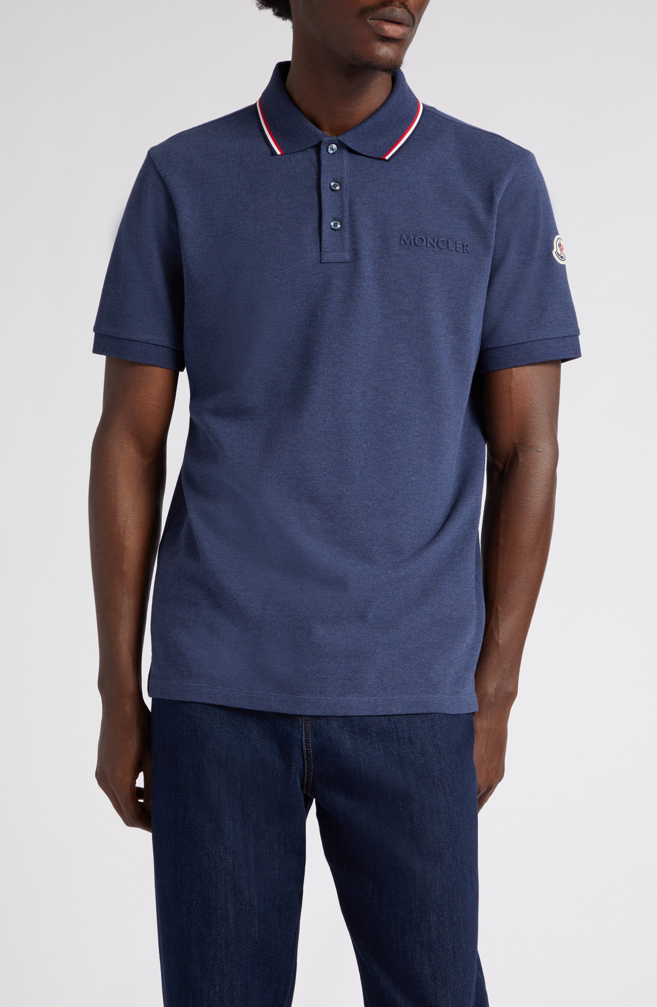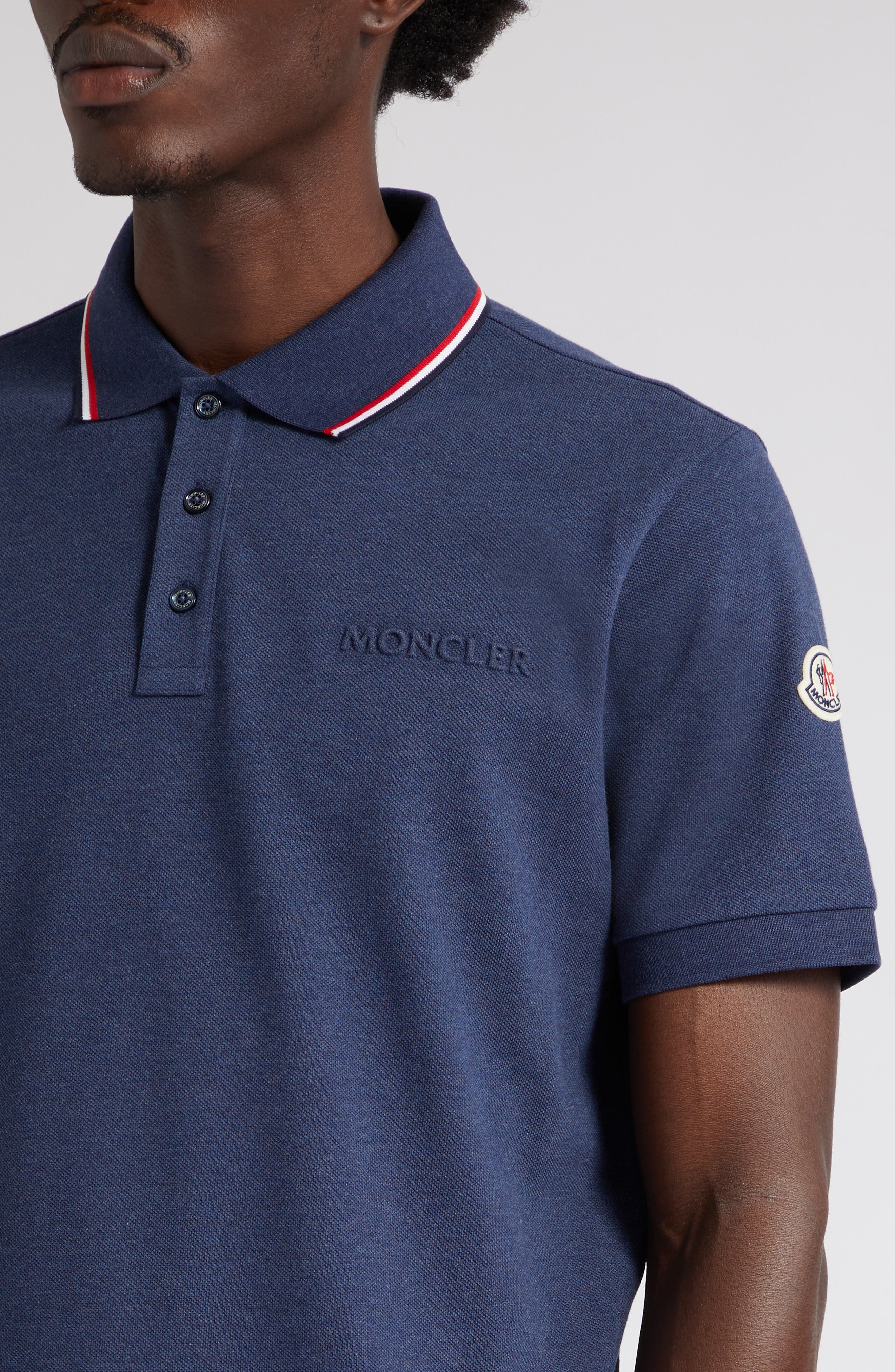 Moncler Tipped Logo Embossed Cotton Pique Polo_Navy