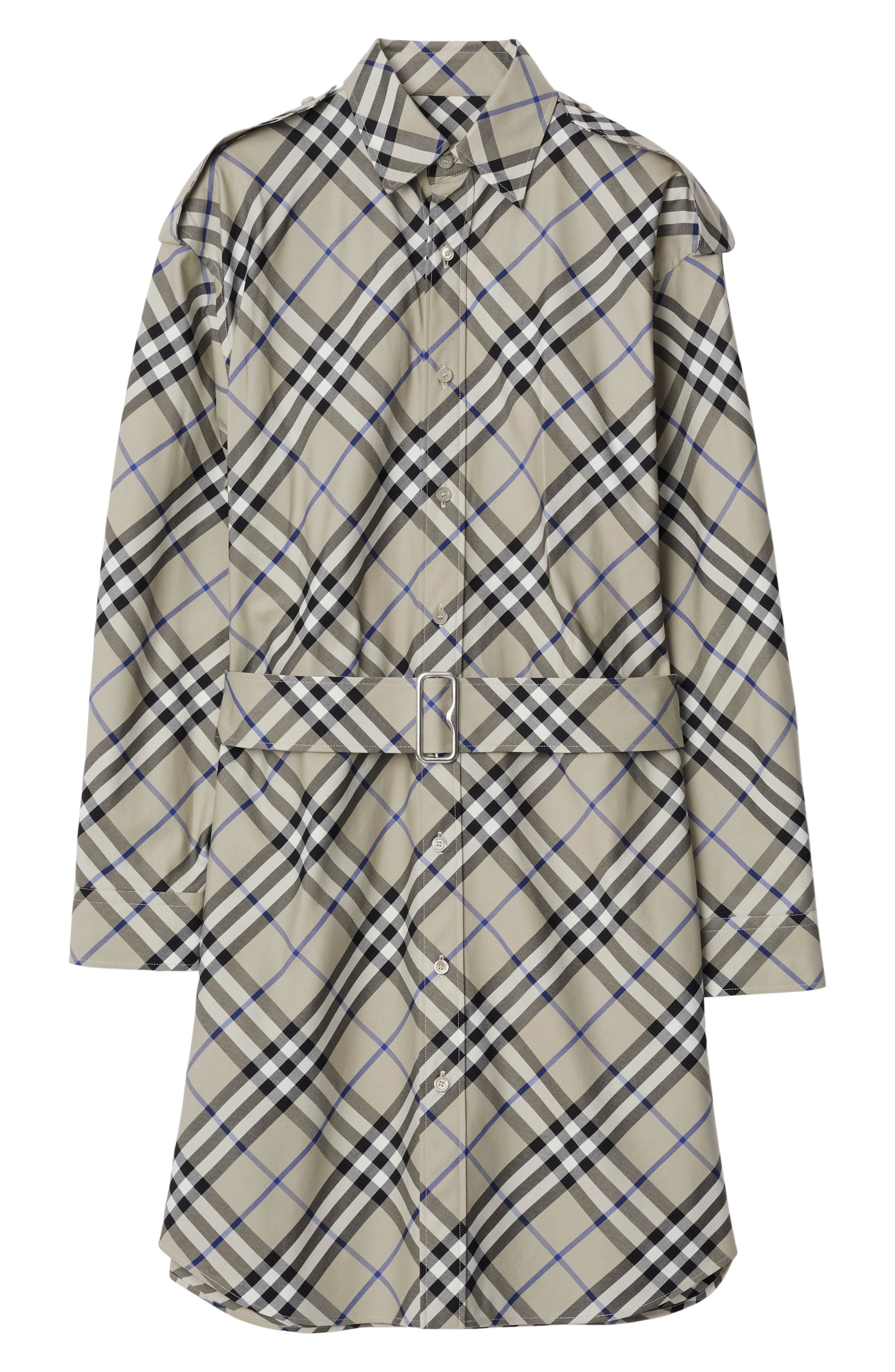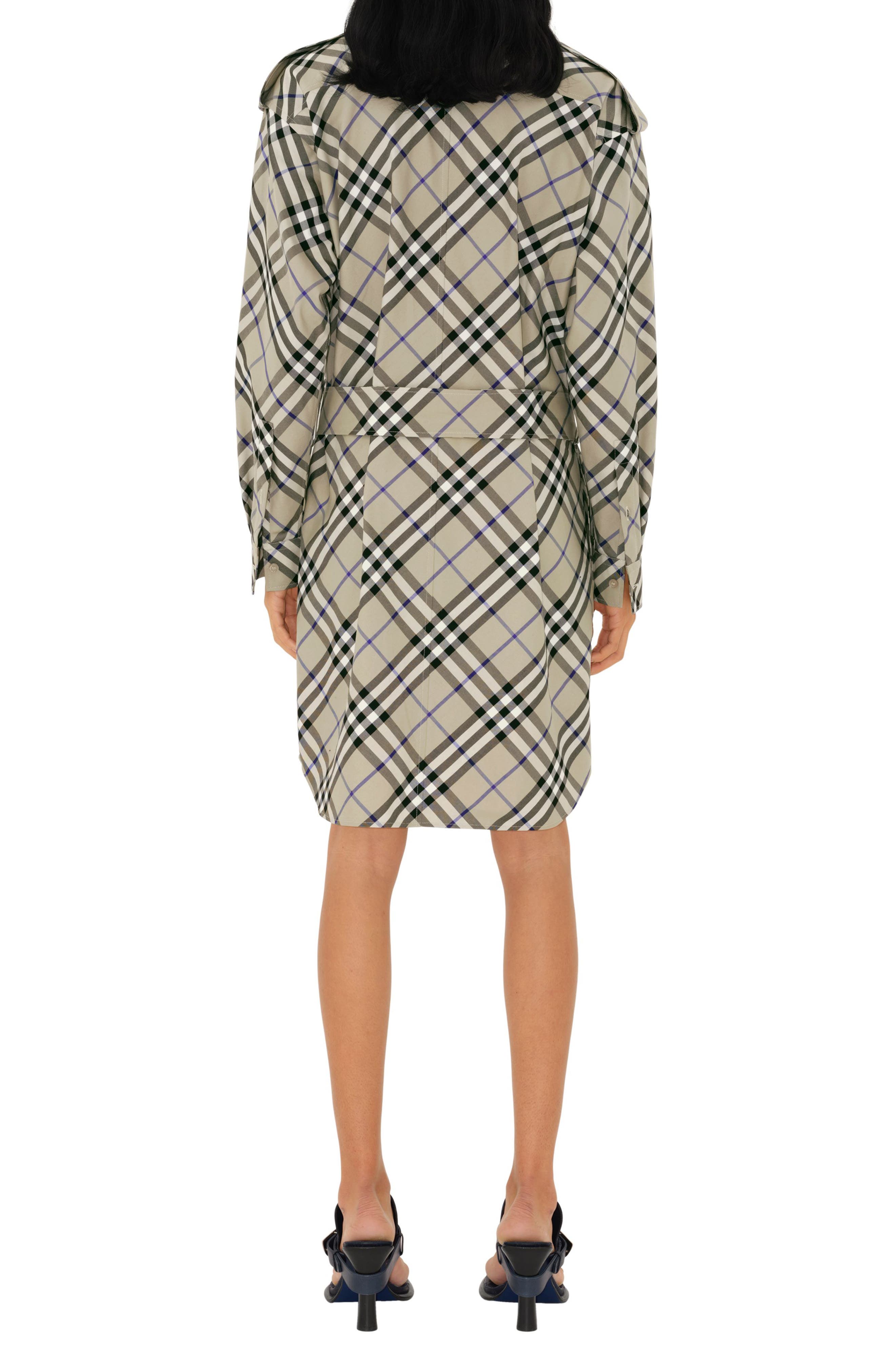 Burberry Check Long Sleeve Belted Cotton Twill Shirtdress_Lichen Ip Check
