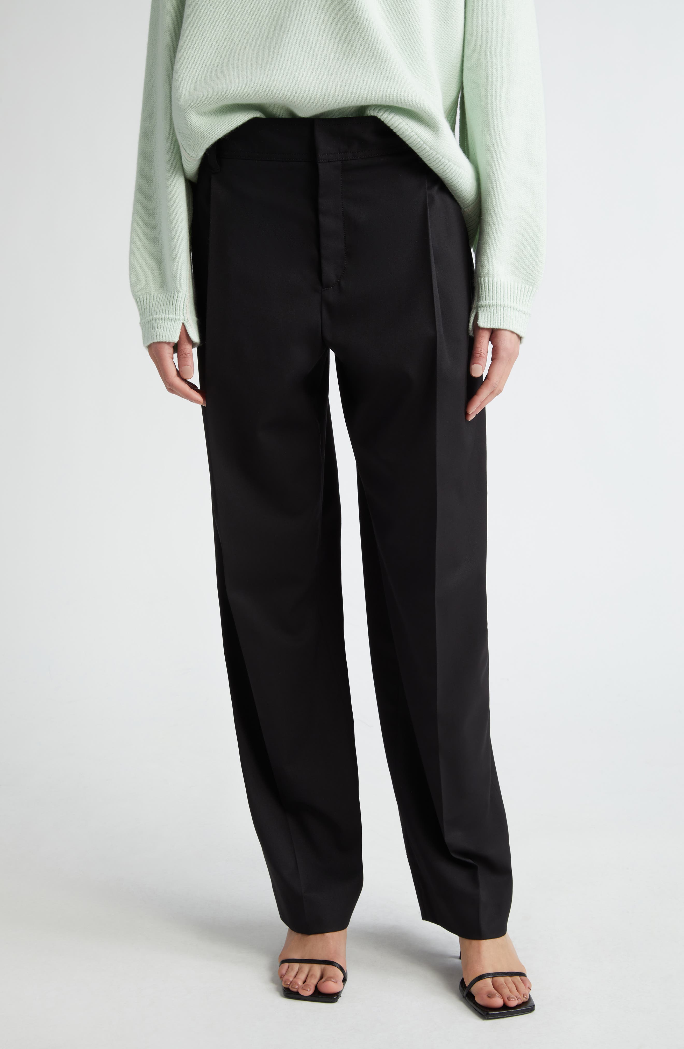 Maria McManus Straight Leg Stretch Wool Trousers_Black
