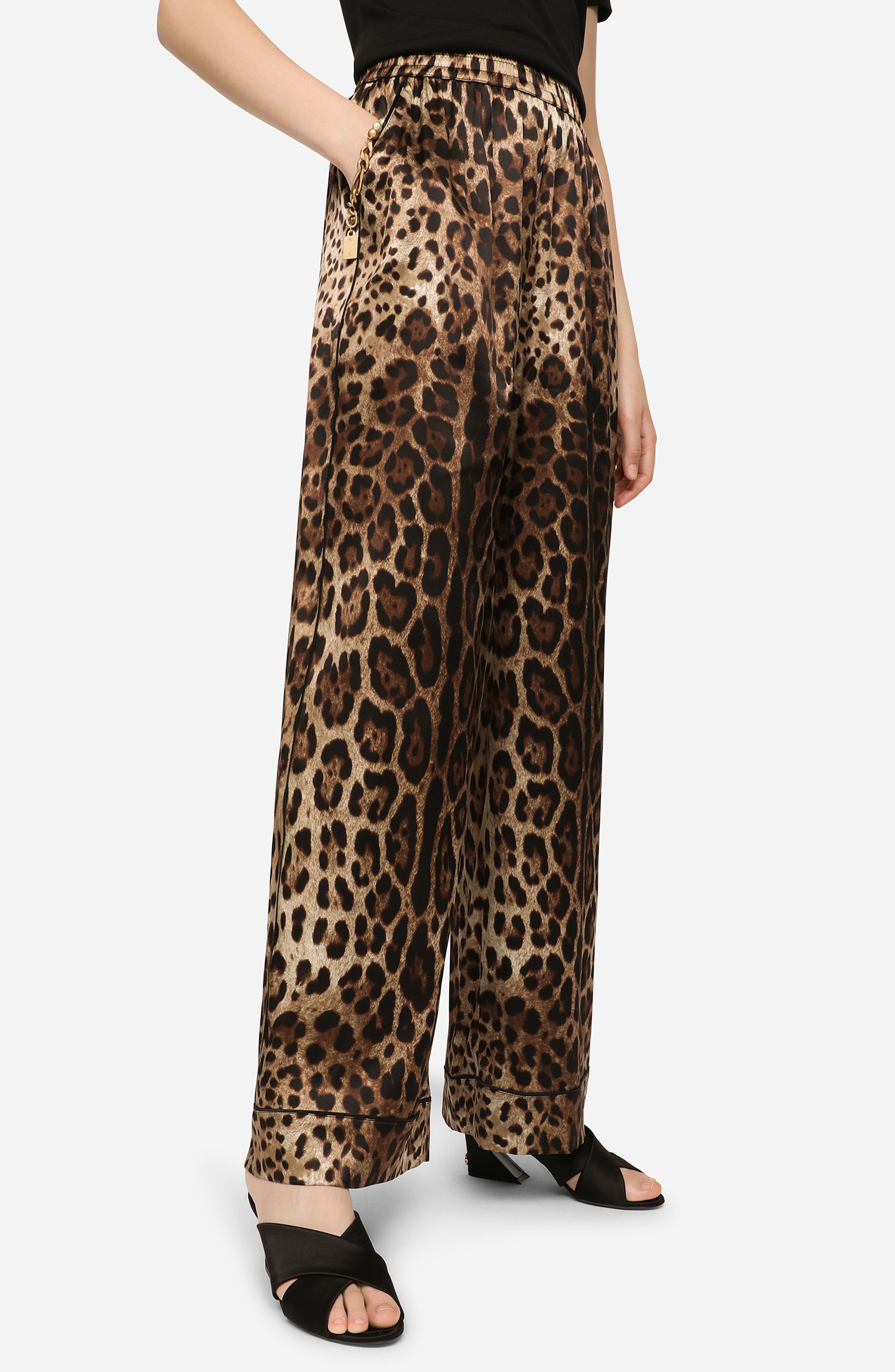 Dolce&Gabbana Leopard Print Wide Leg Stretch Silk Satin Pajama Pants_Light Brown