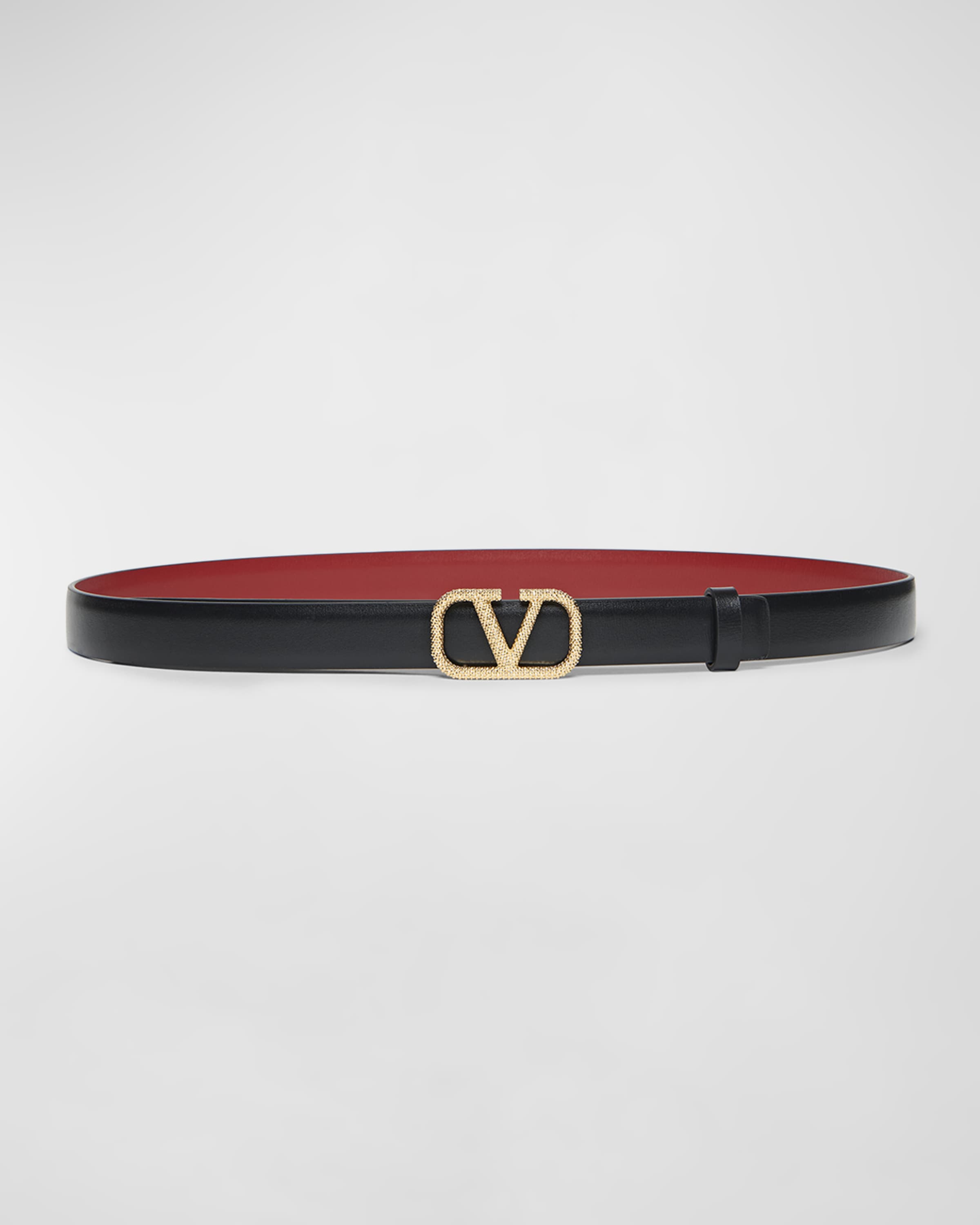 Valentino V-Logo Signature Reversible Leather Skinny Belt