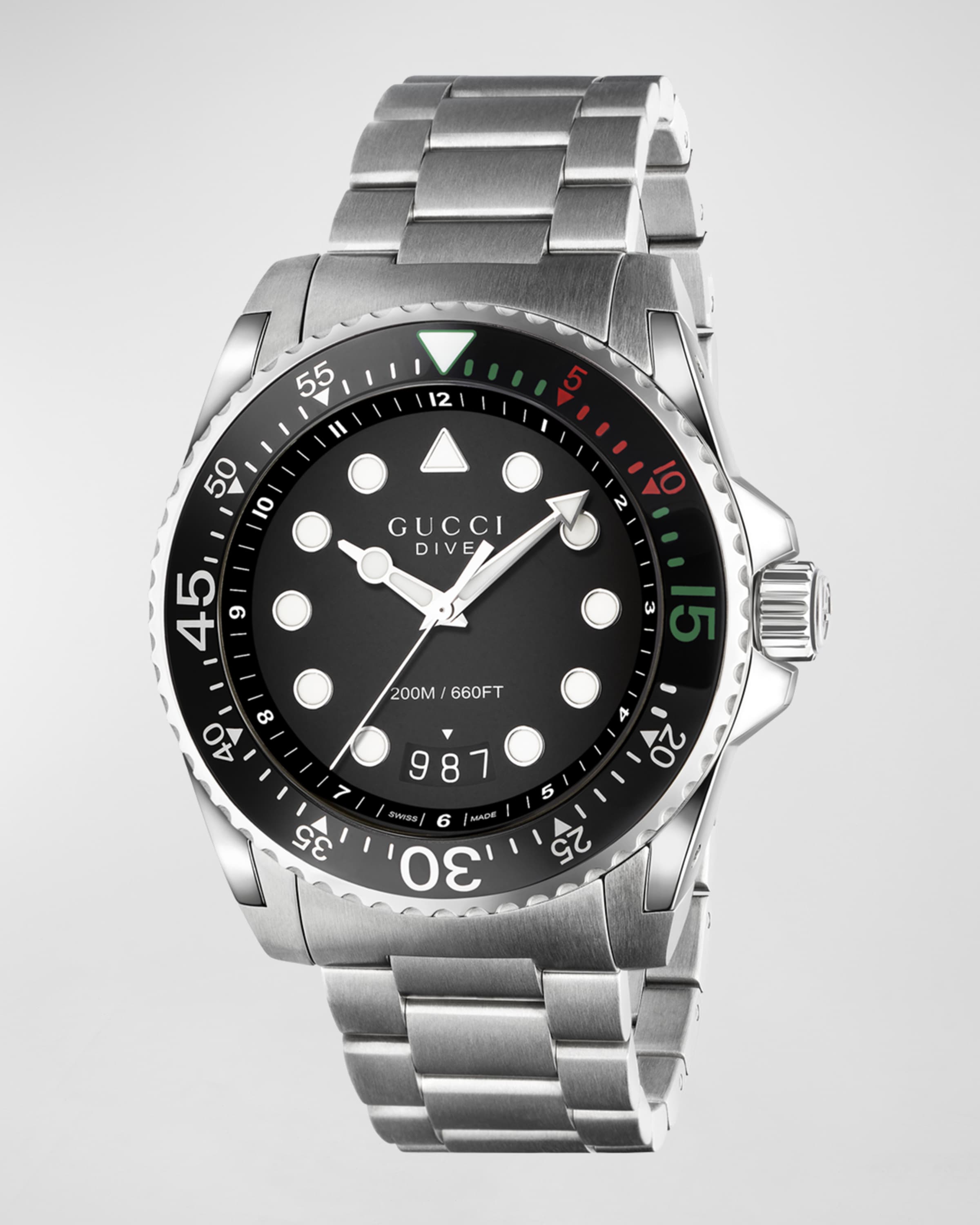 45mm Gucci Dive Stainless Steel Bracelet Watch