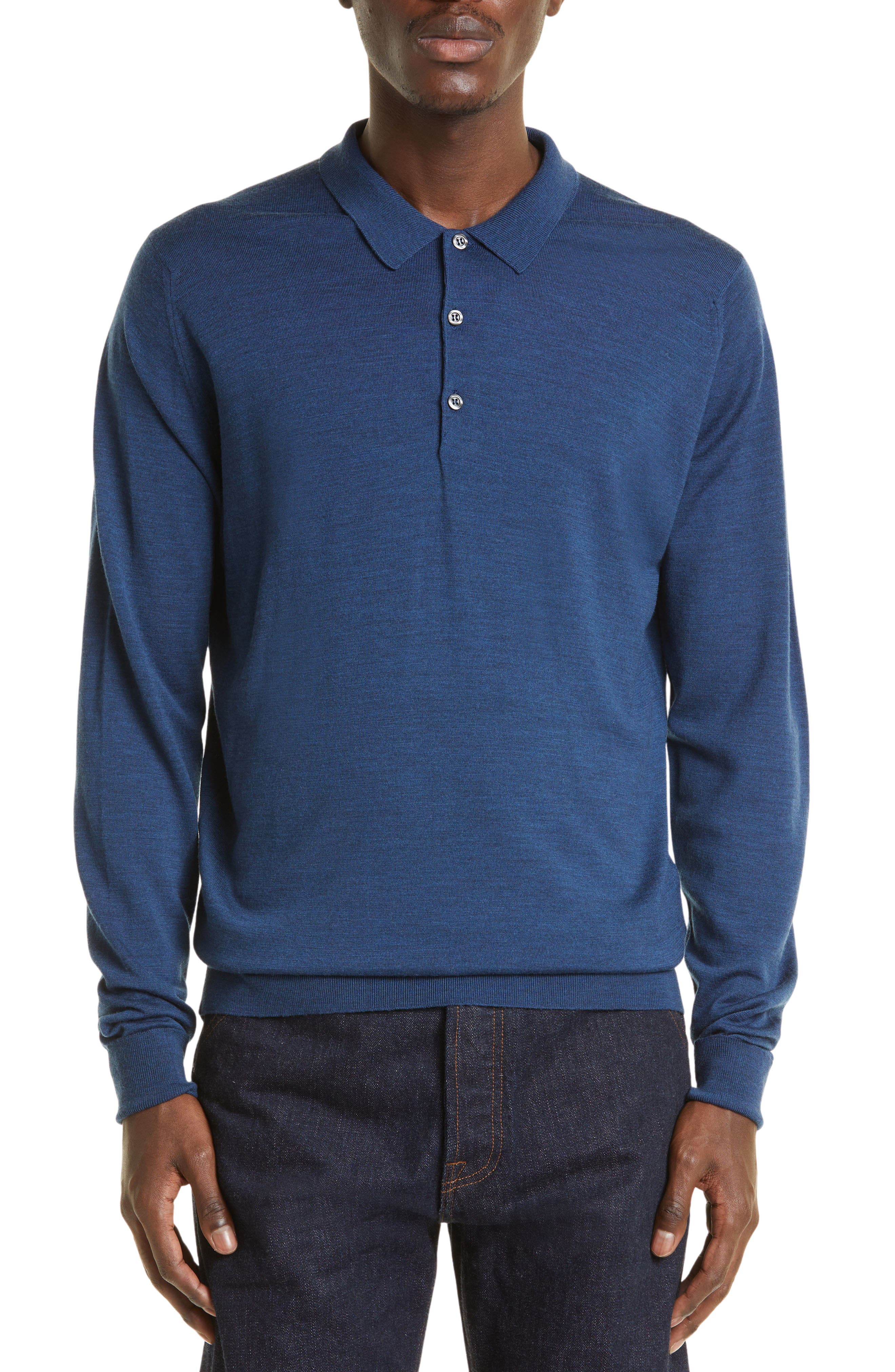 John Smedley Cotswold Wool Polo Sweater_Indigo
