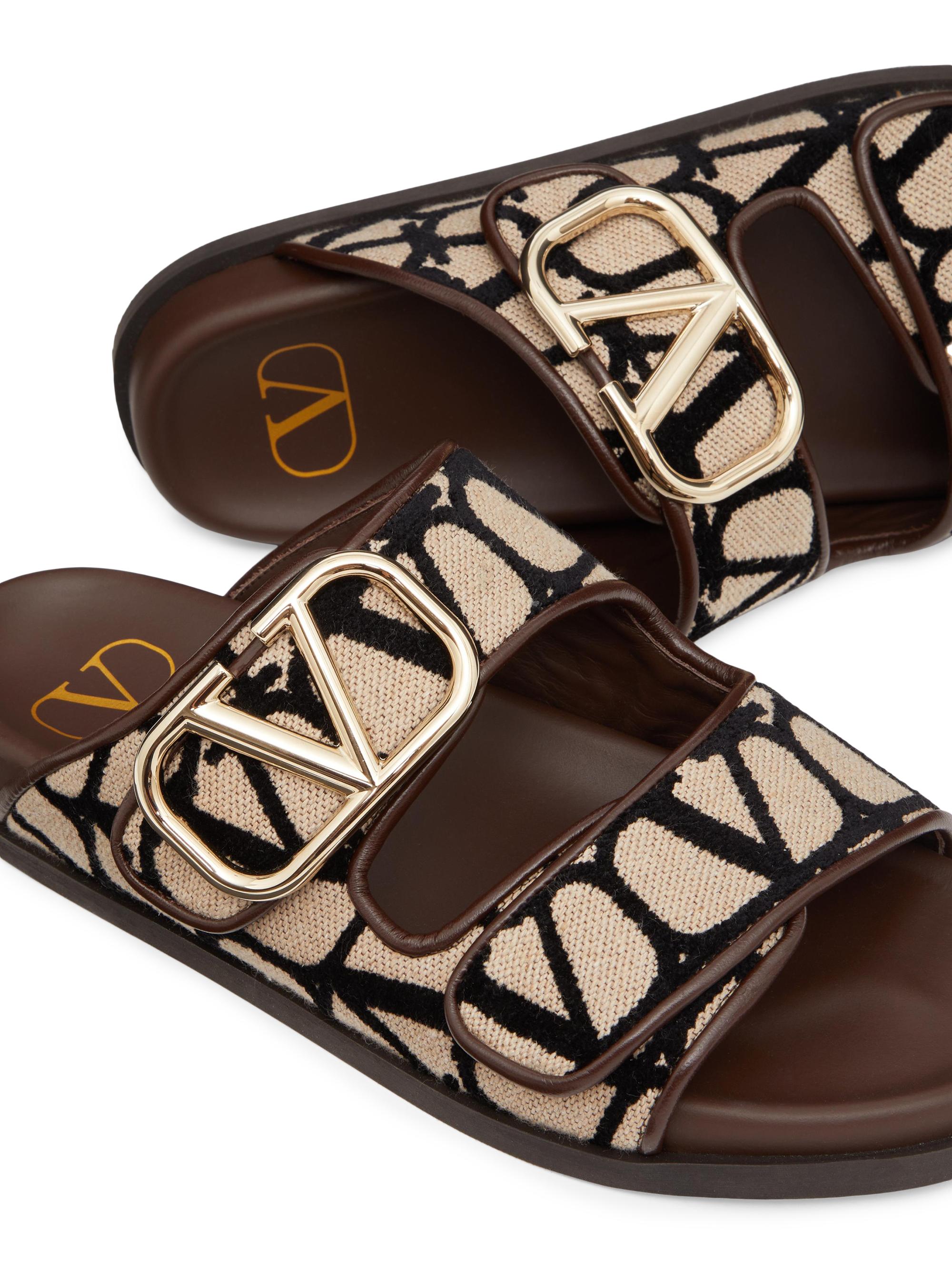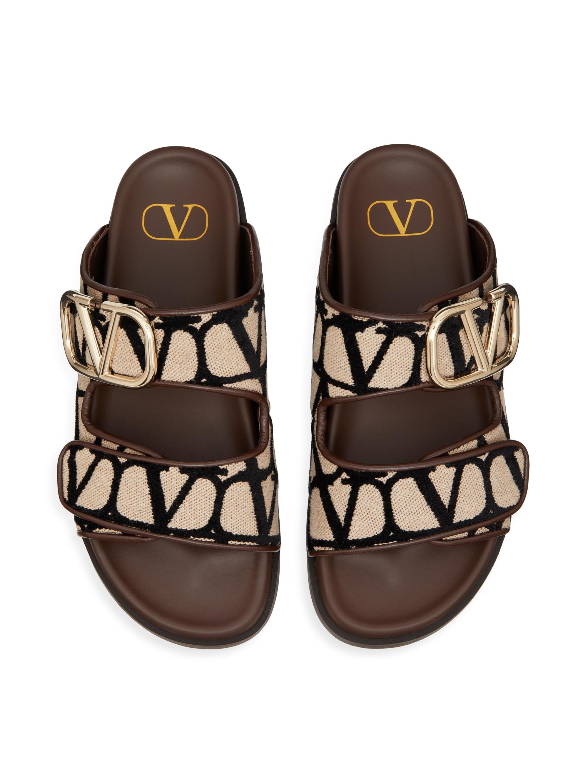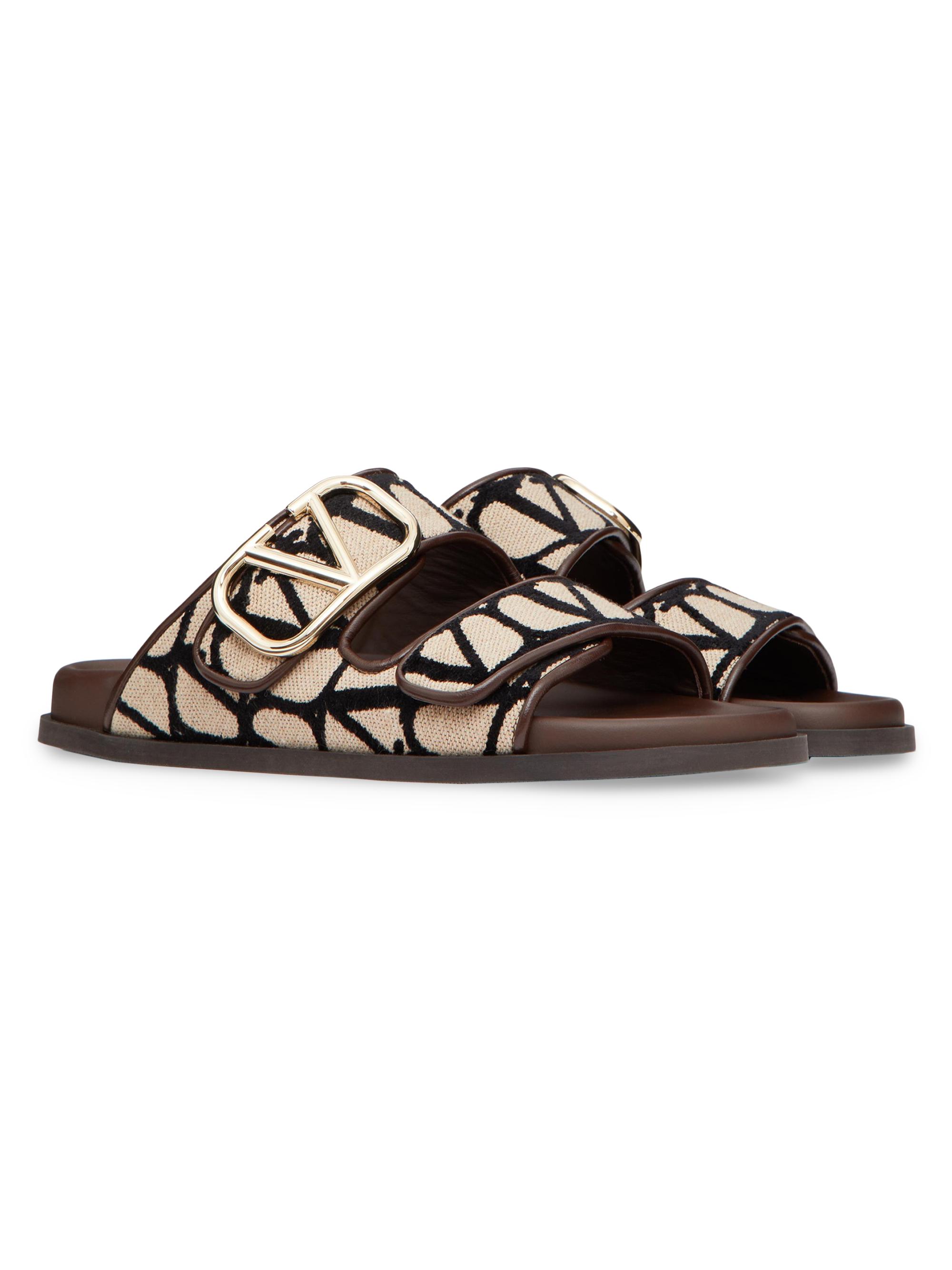 Valentino Garavani Vlogo Signature Slide Sandals In Toile Iconographe