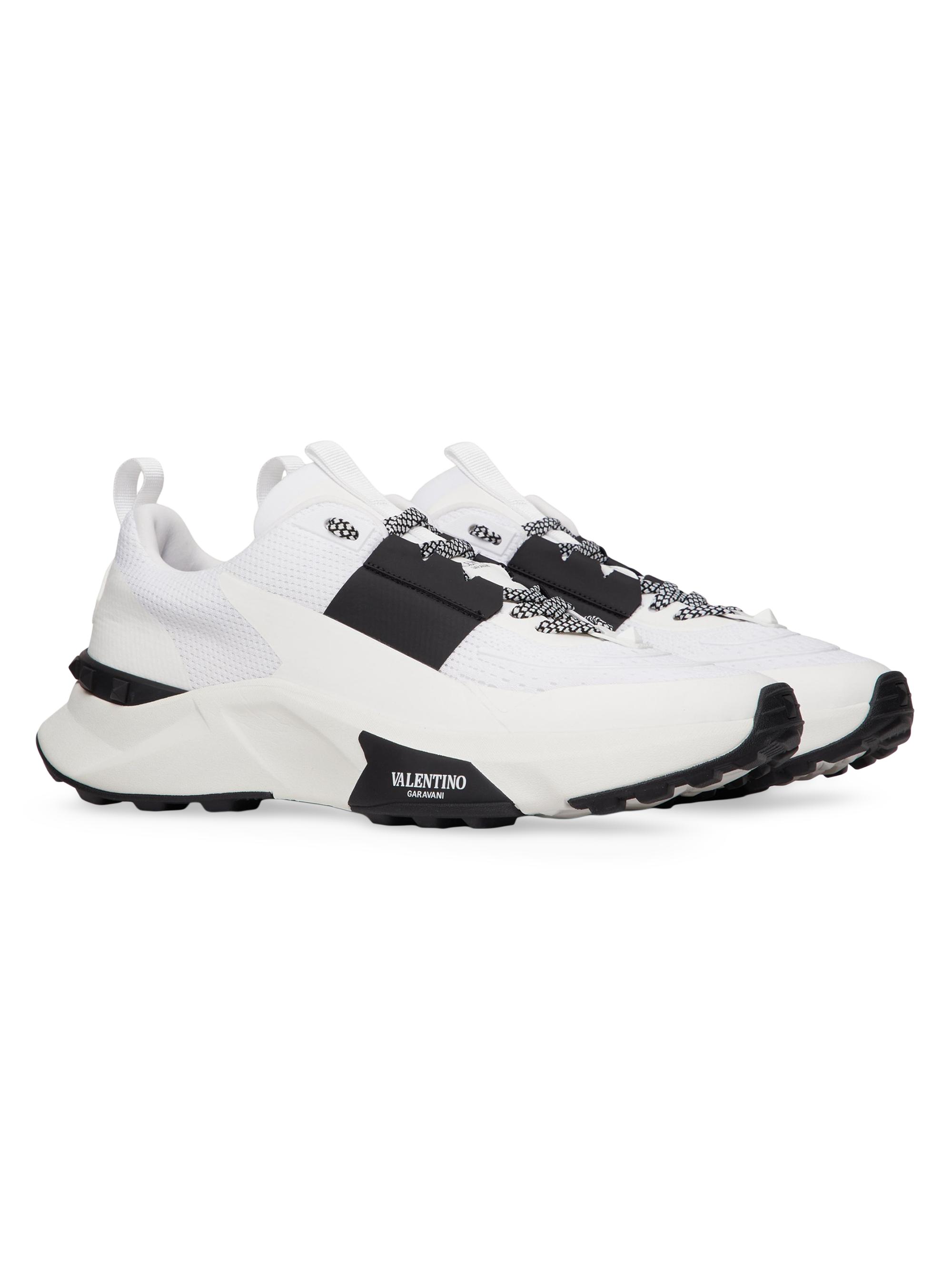 Valentino Garavani True Act Low Top Sneakers in Mesh and Rubberized Fabric WHITE BLACK