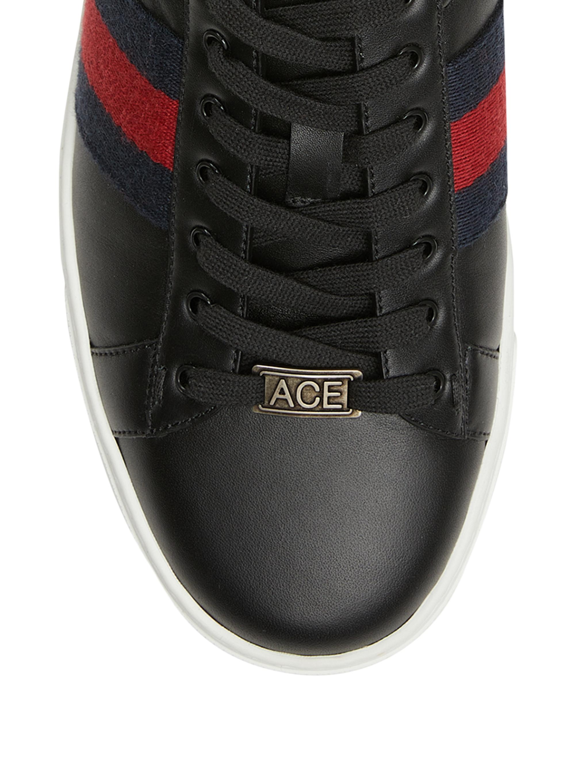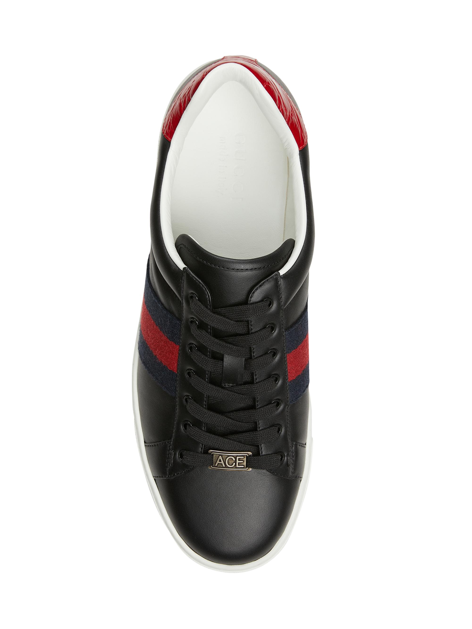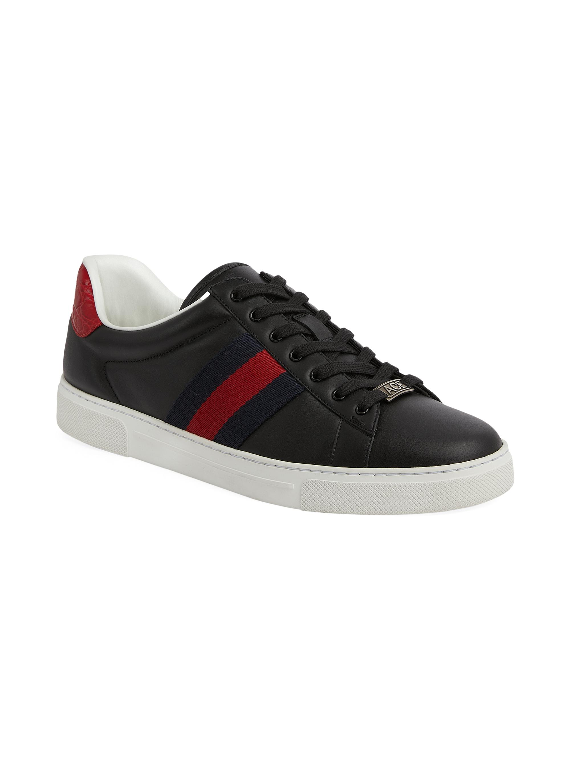 Gucci Ace Leather Web Low-Top Sneakers BLACK HIBISCUS RED