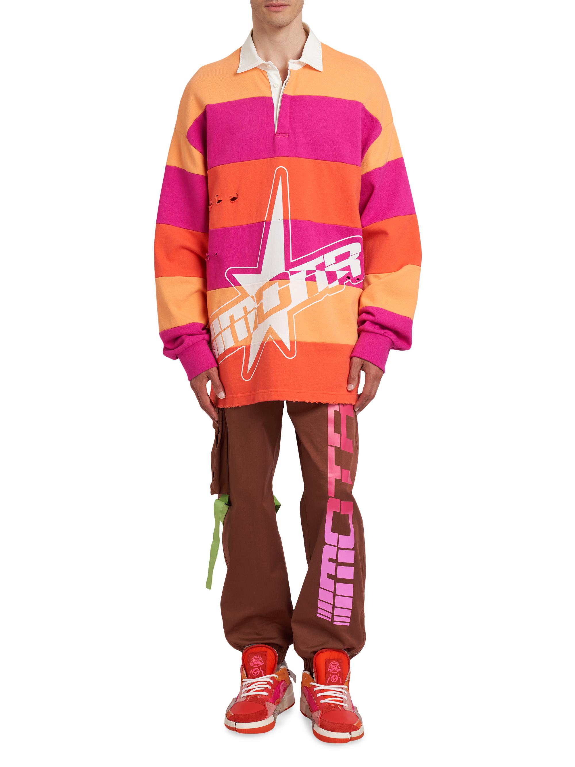 Members of the Rage Striped Cotton Distressed Long-Sleeve Polo Shirt