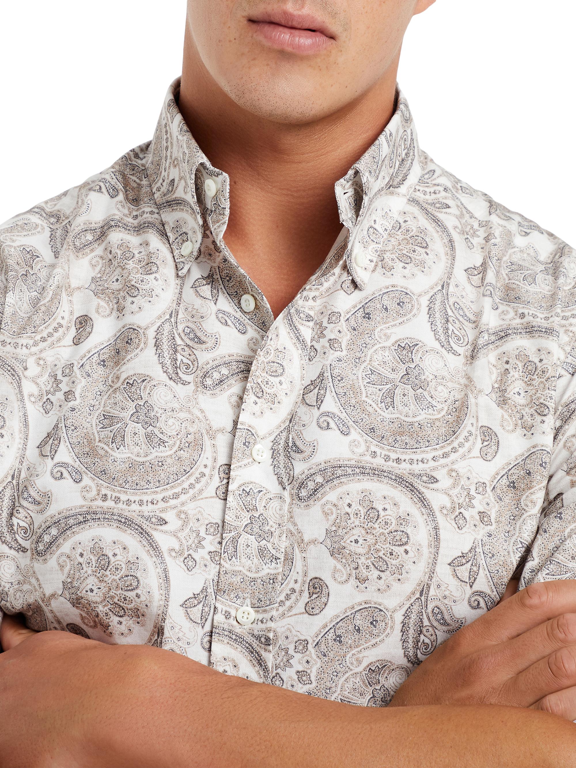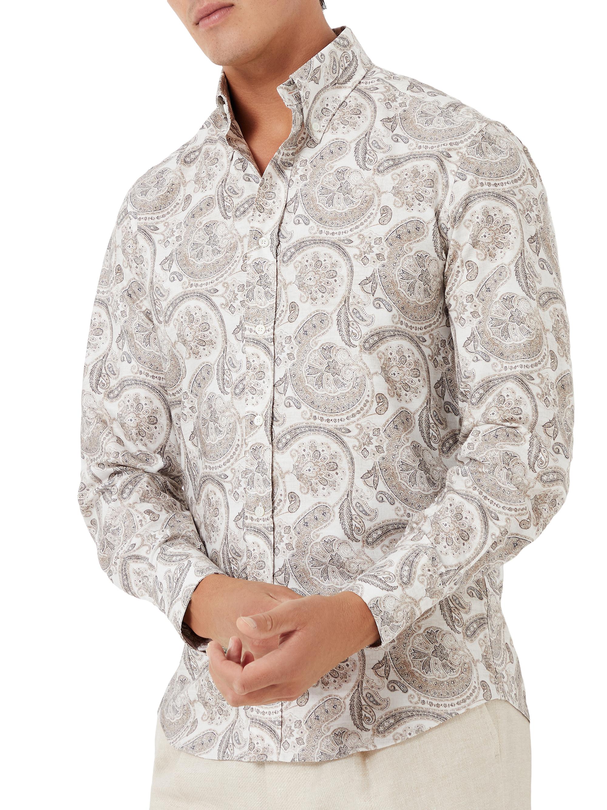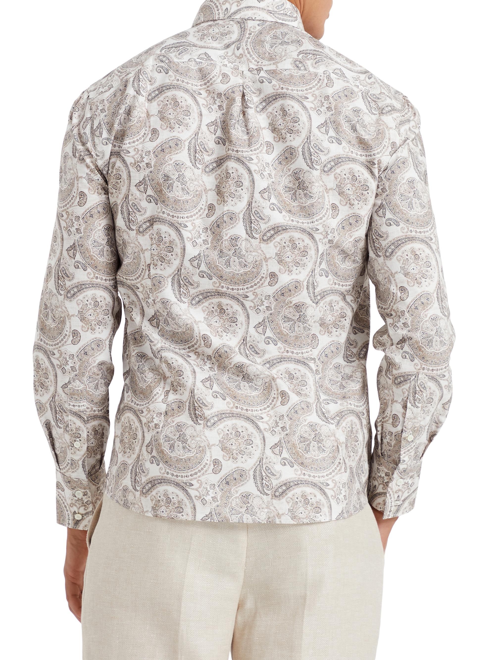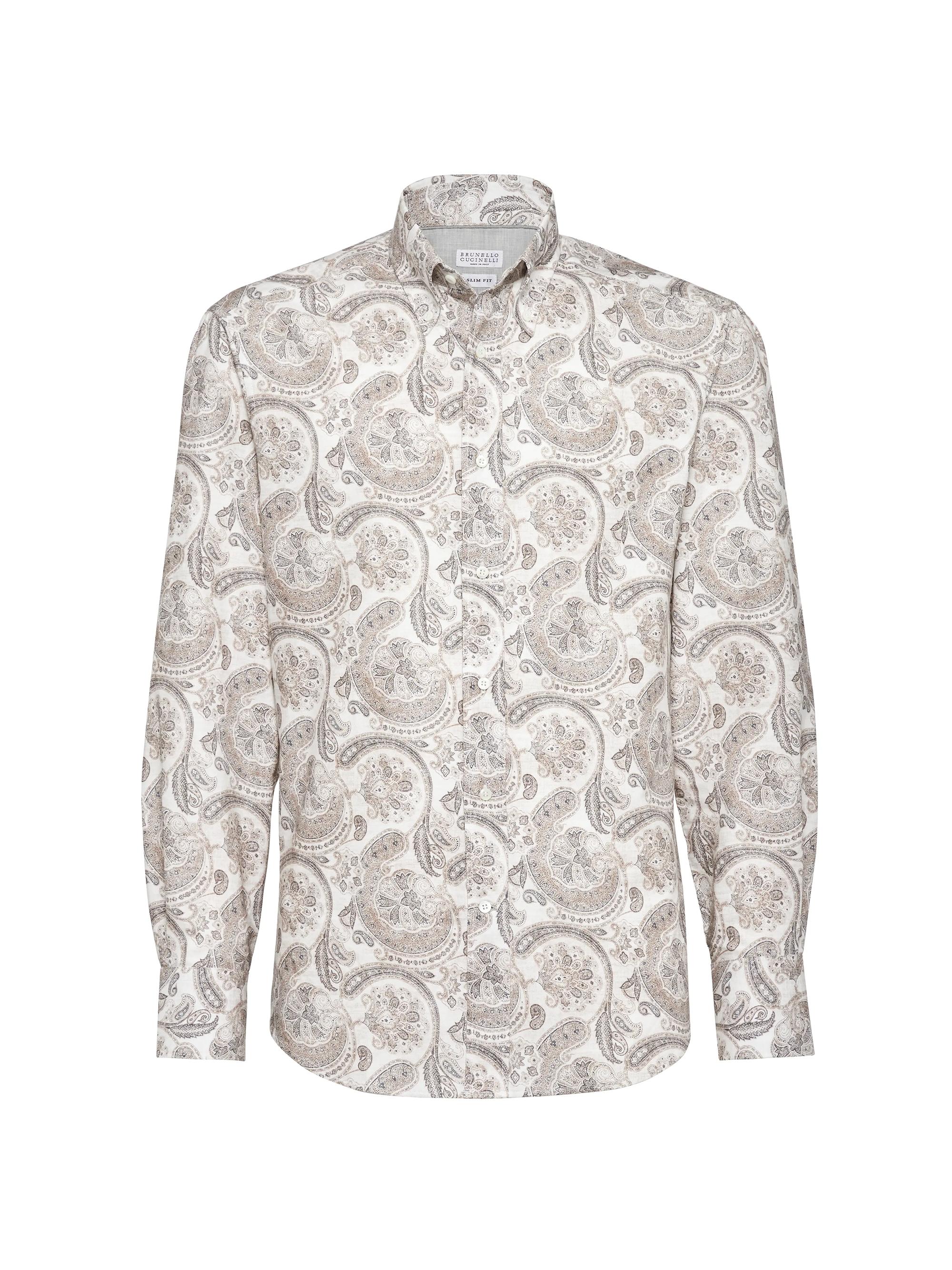 Brunello Cucinelli Paisley Cotton Slim Fit Shirt With Button Down Collar