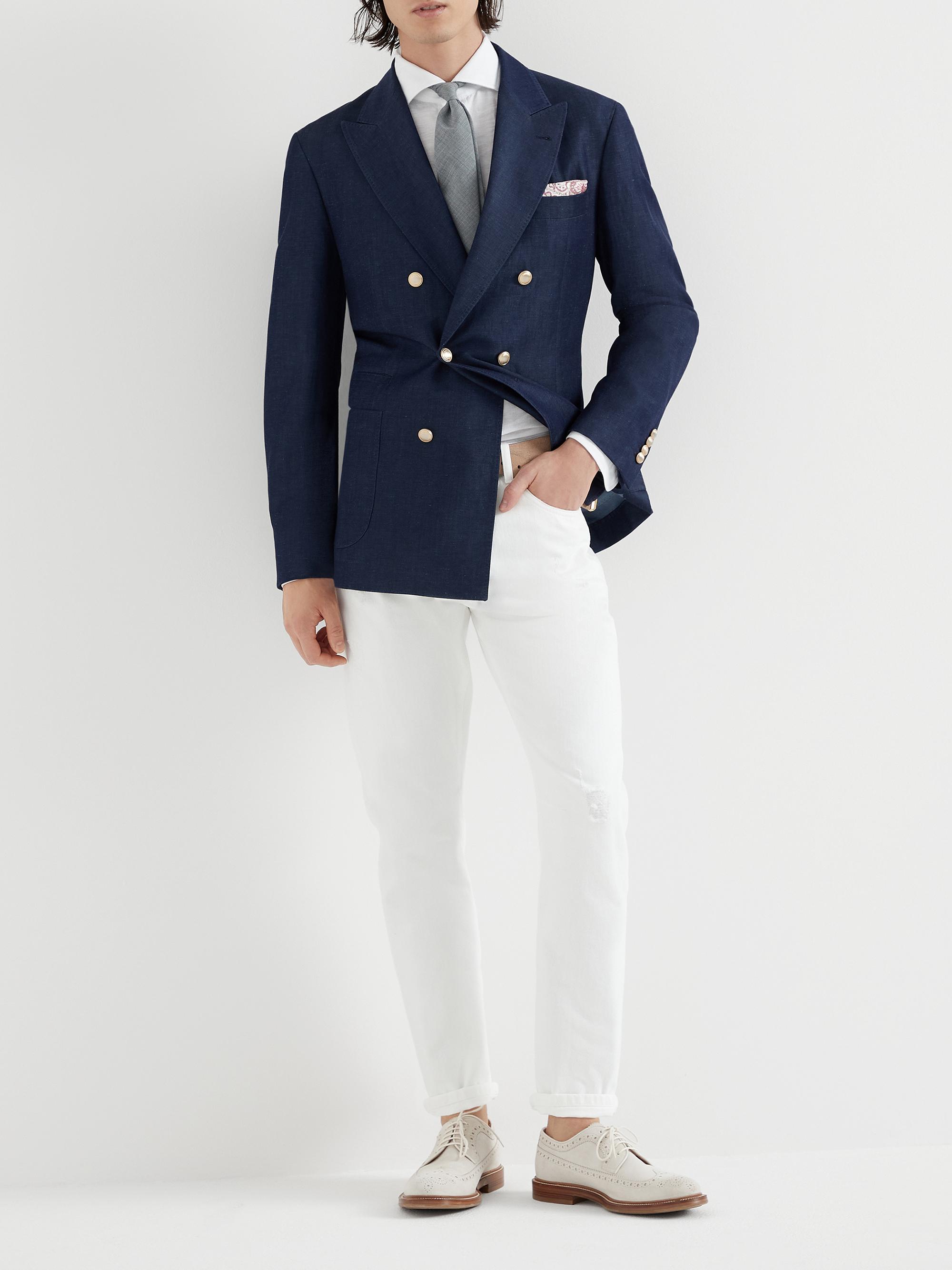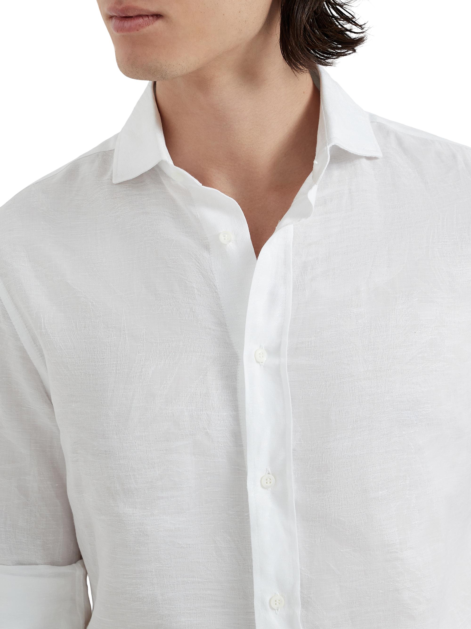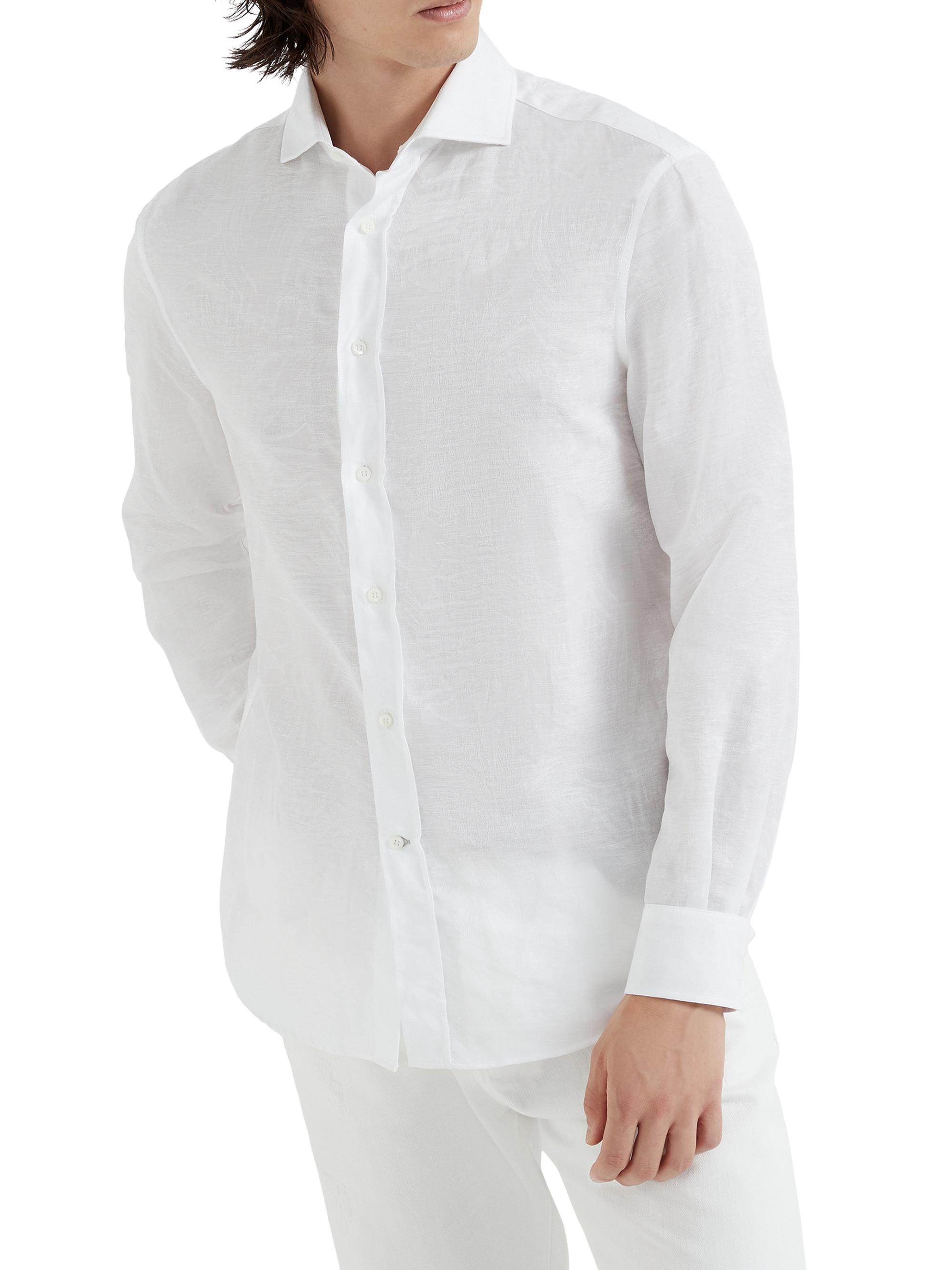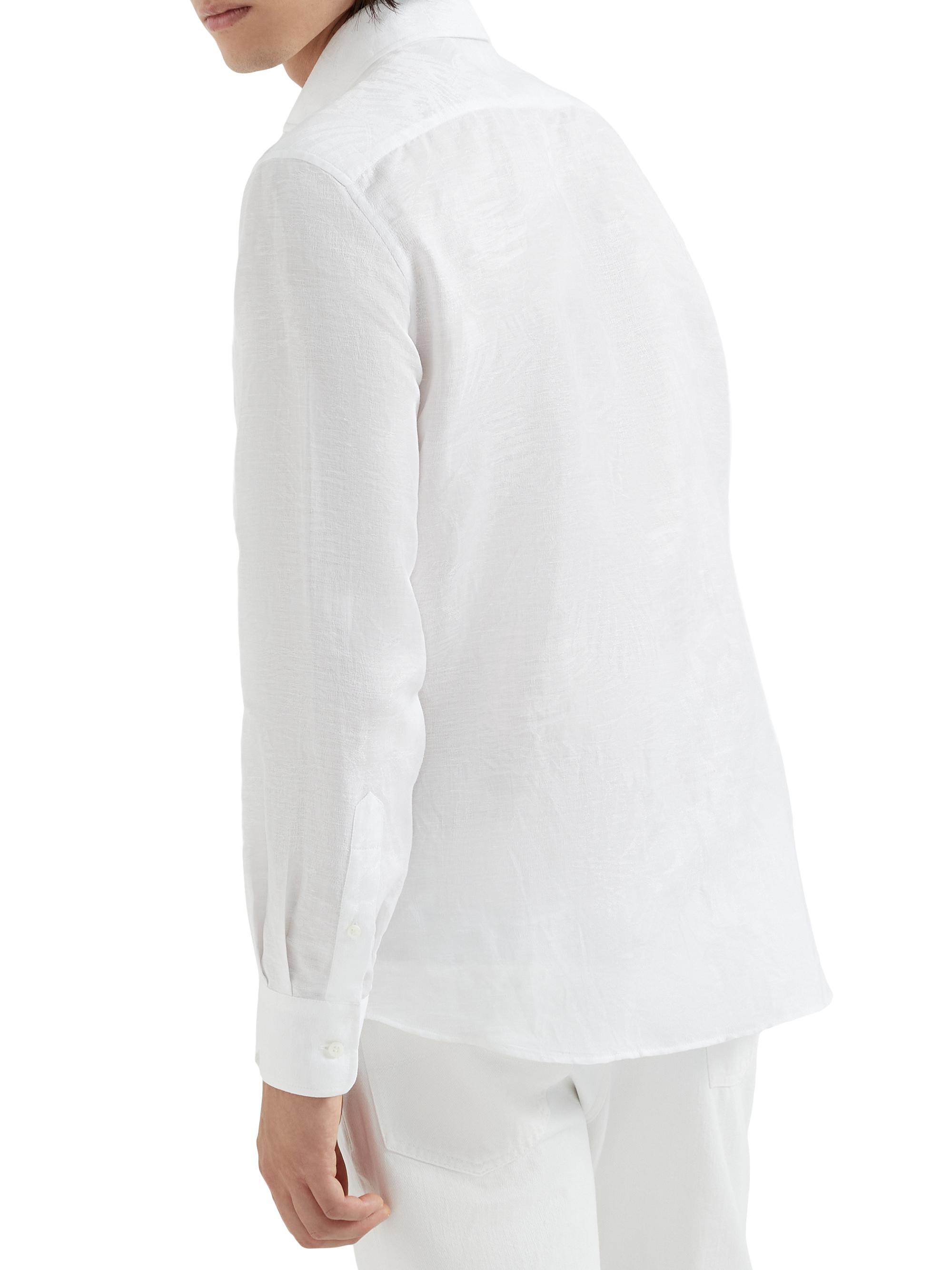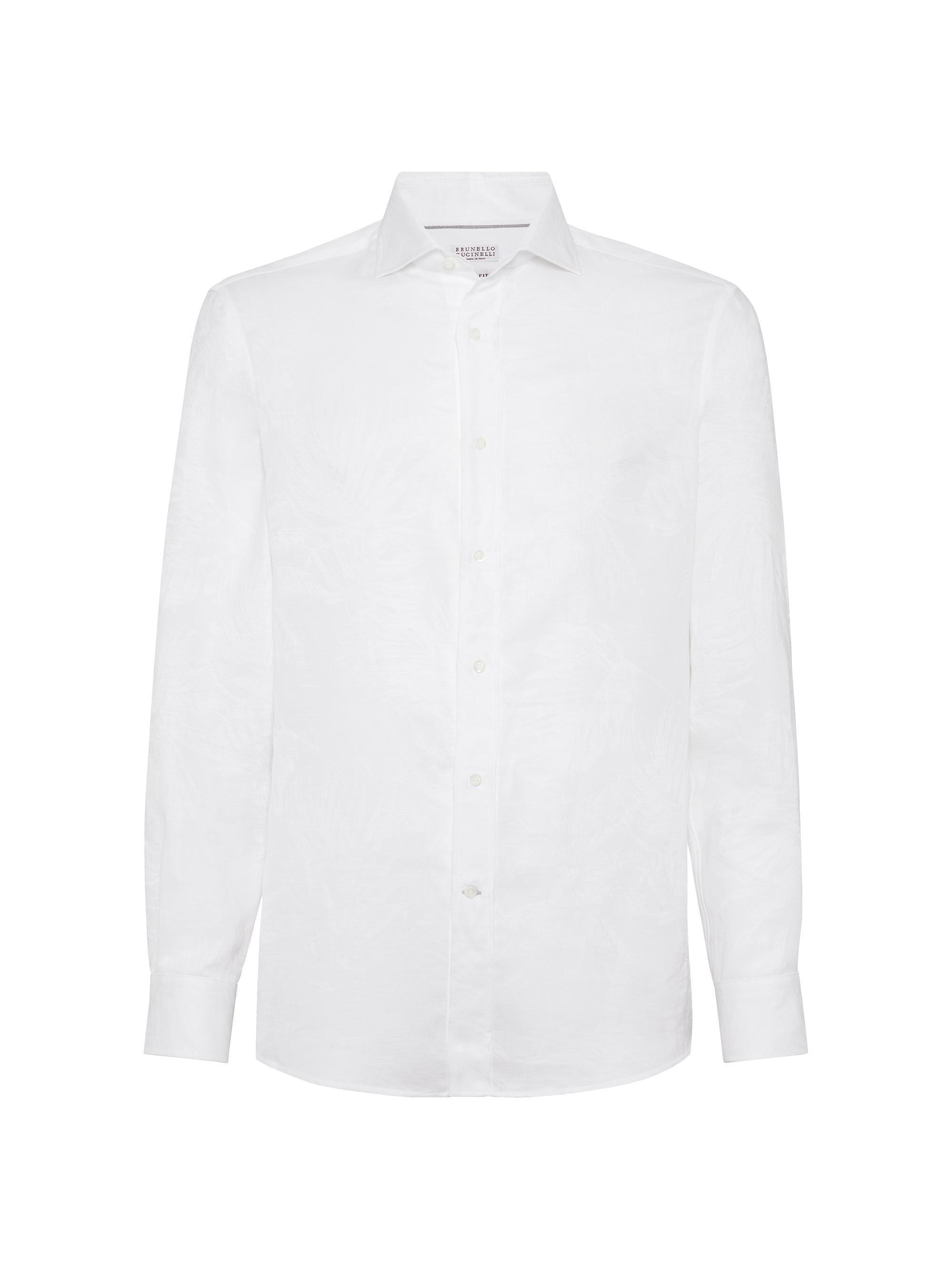 Brunello Cucinelli Palm Jacquard Linen And Cotton Easy Fit Shirt With Spread Collar
