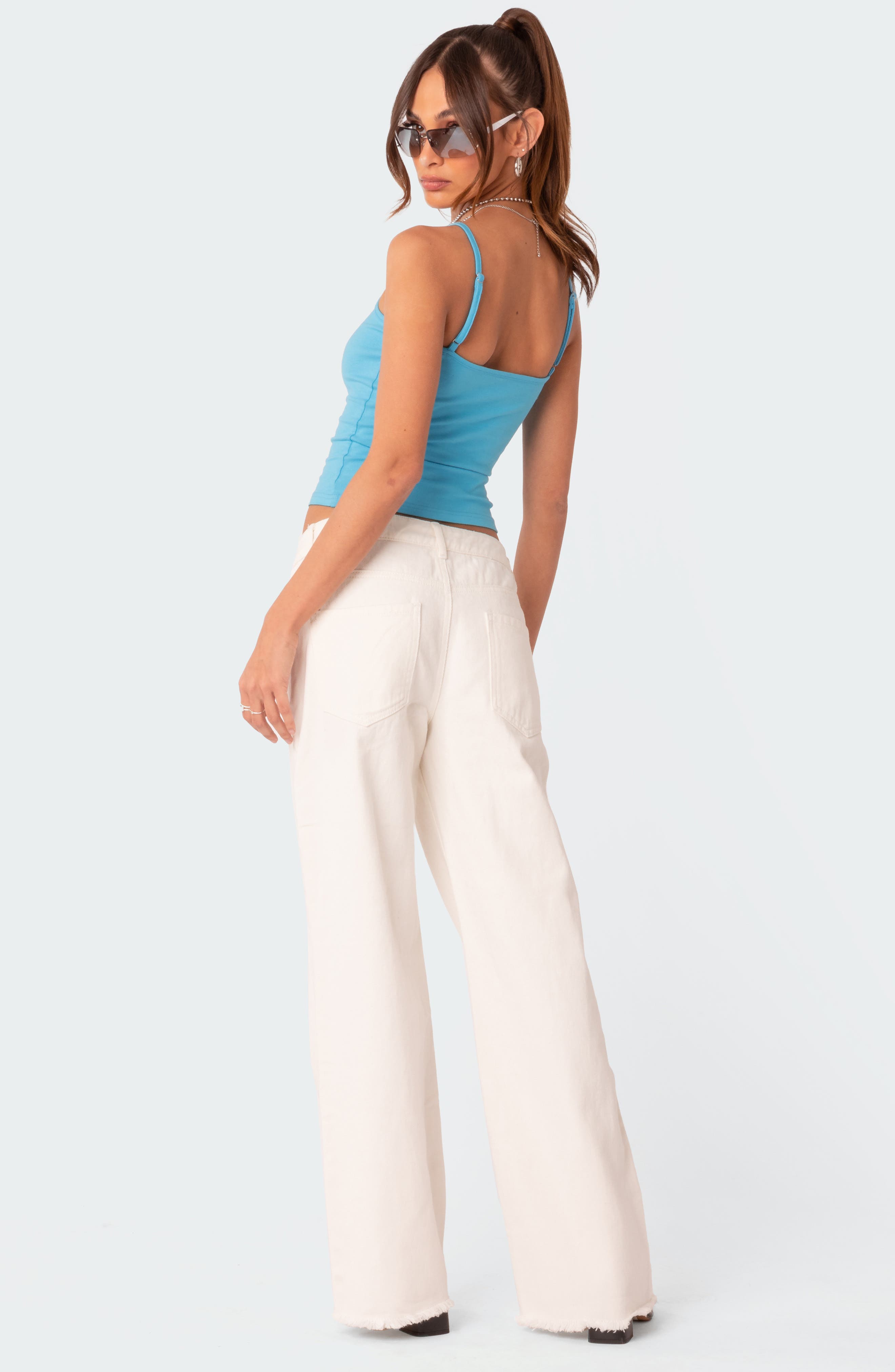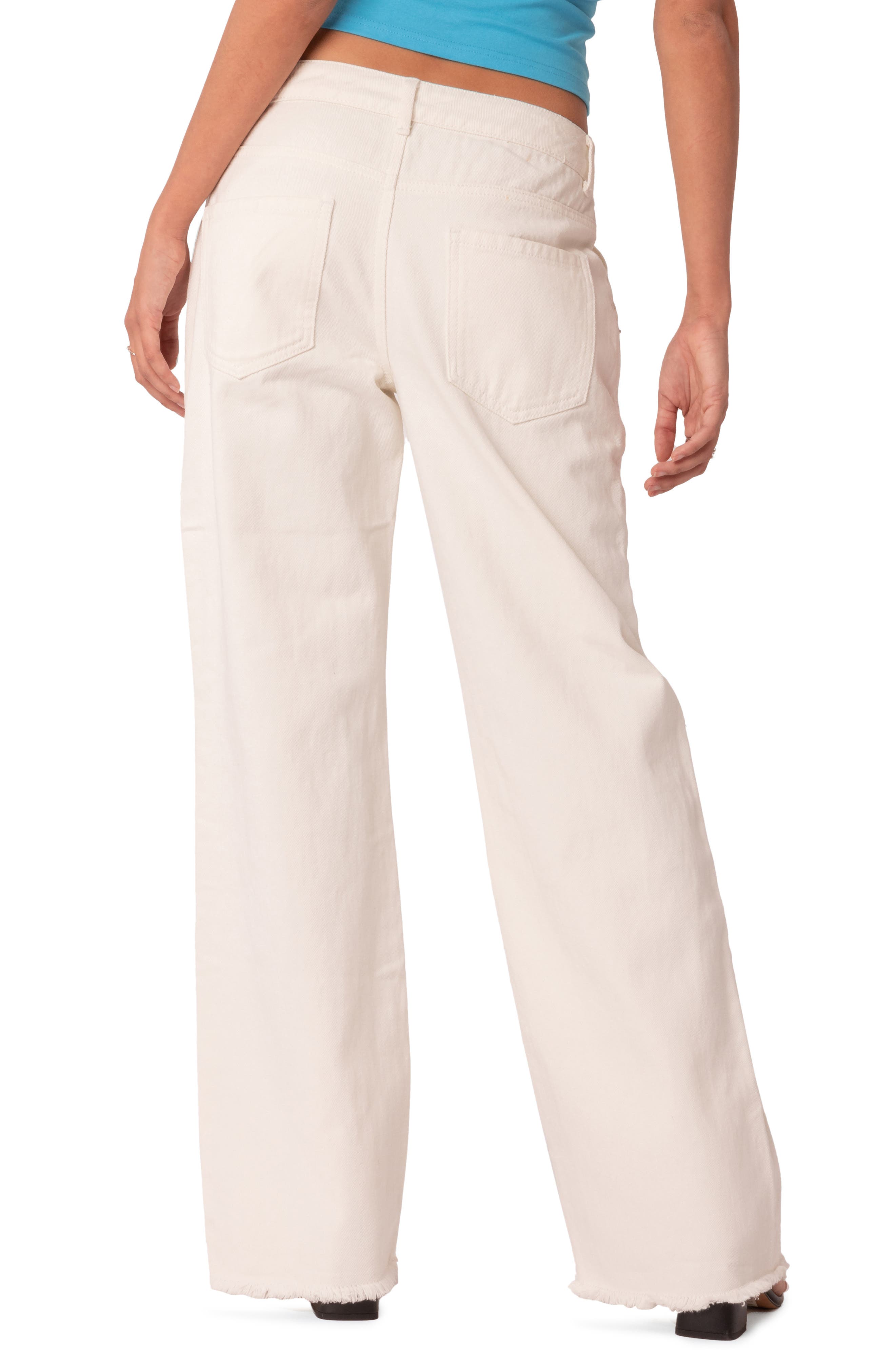 EDIKTED Dahlia Low Rise Fray Hem Straight Leg Jeans_White