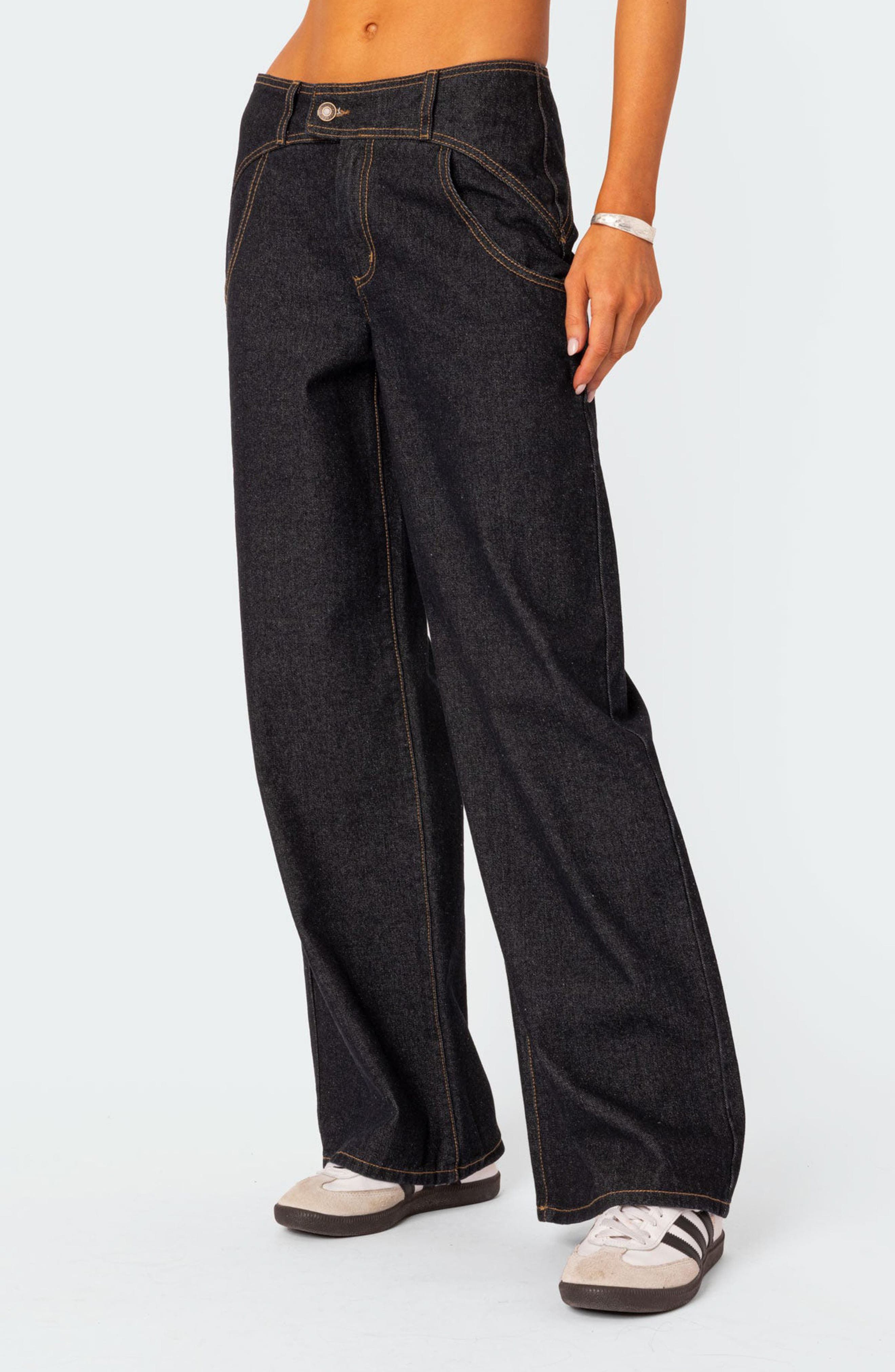 EDIKTED Western Straight Leg Jeans_Dark-Blue