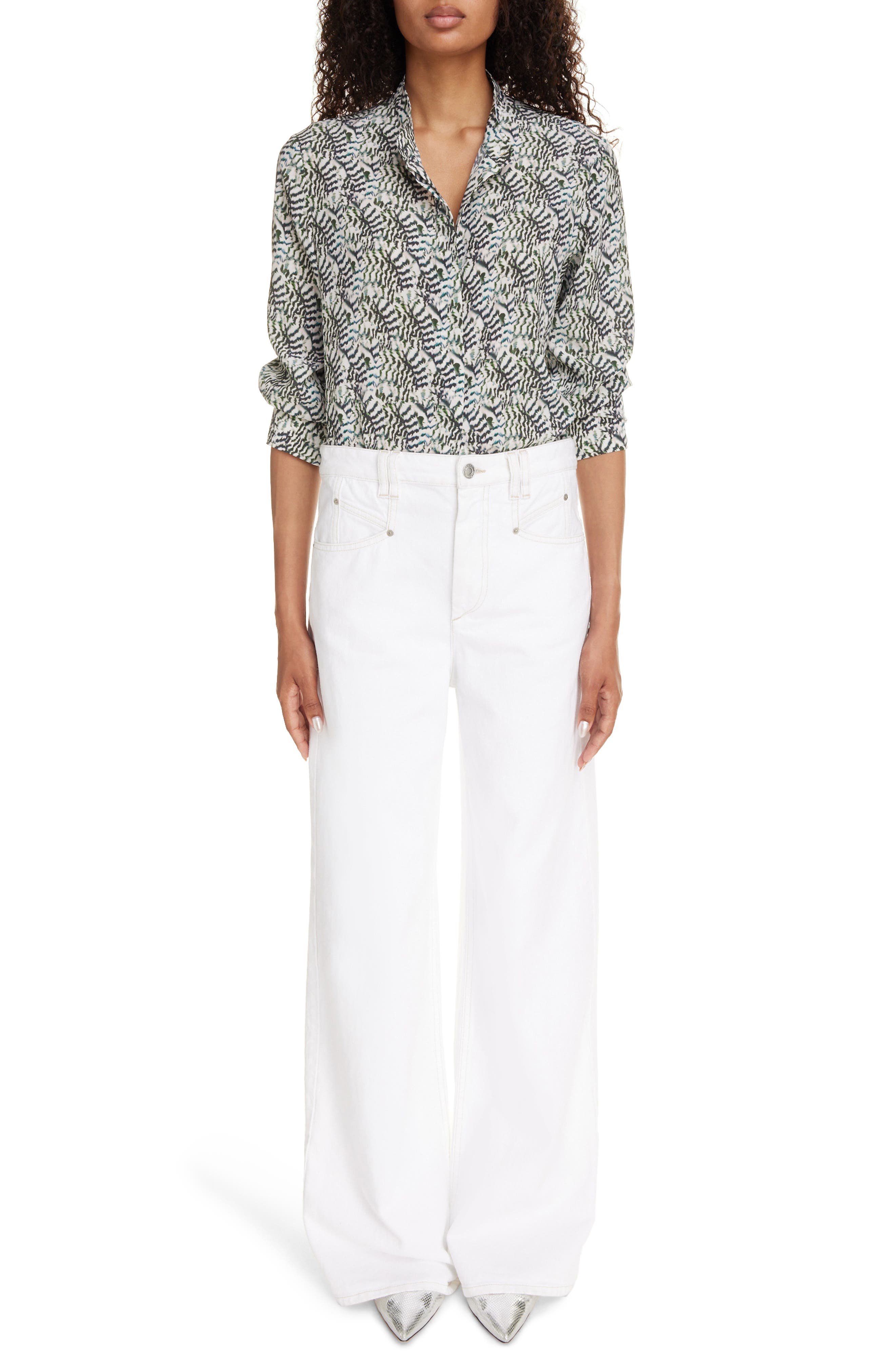 Isabel Marant Lemony High Waist Wide Leg Jeans_White