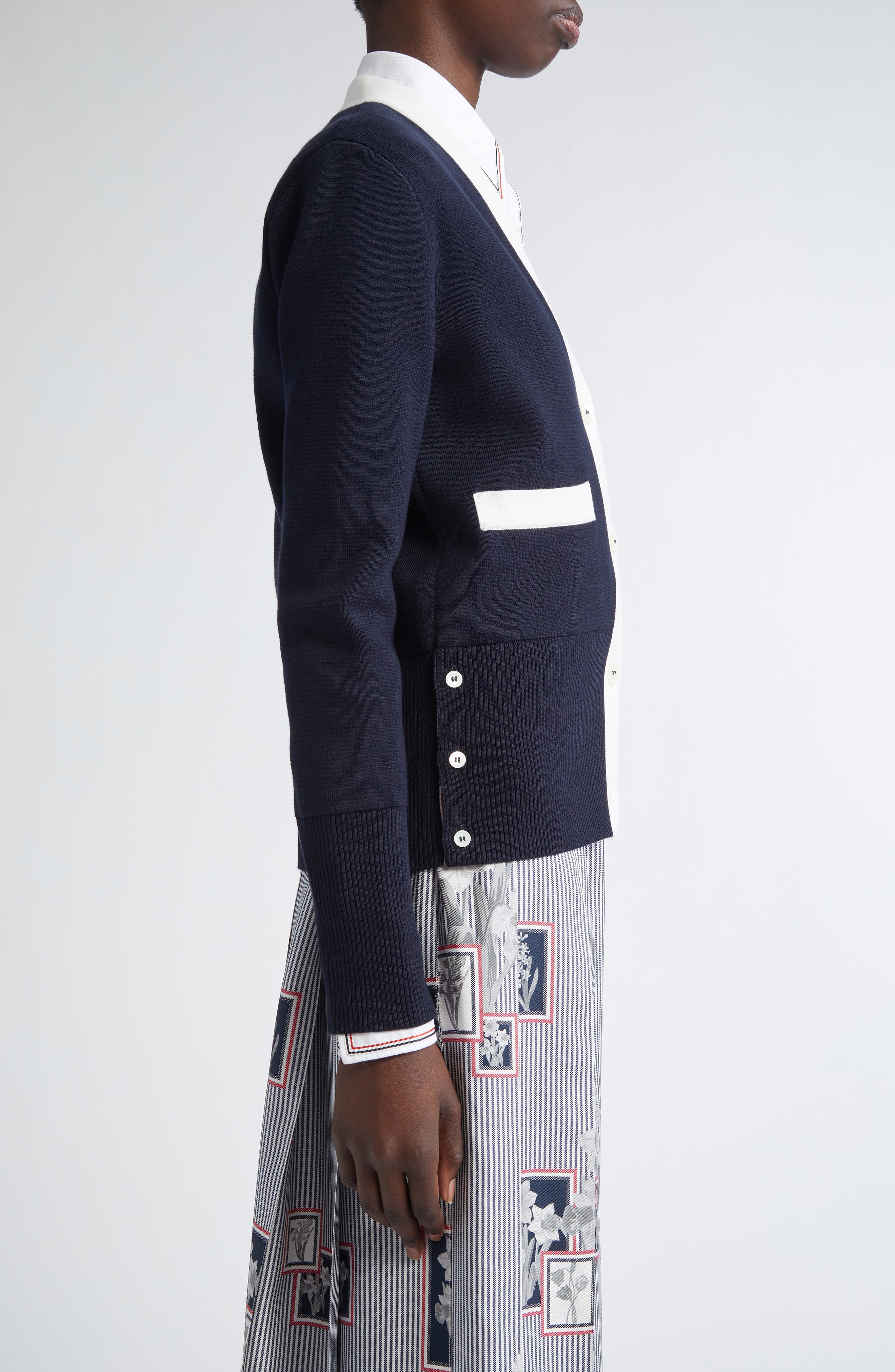 Thom Browne 4-Bar Contrast Trim Cotton Cardigan_Navy