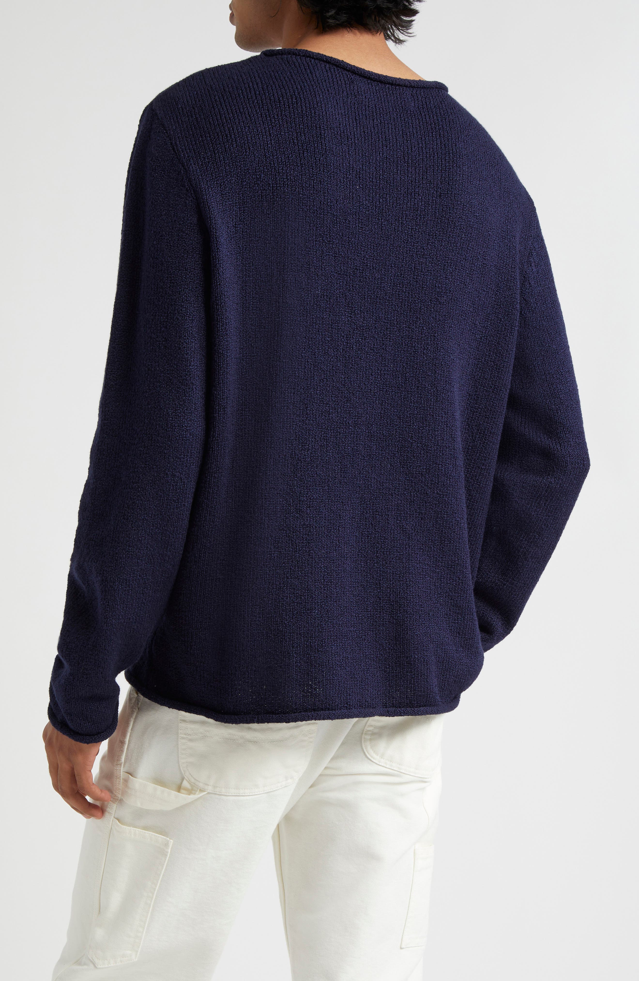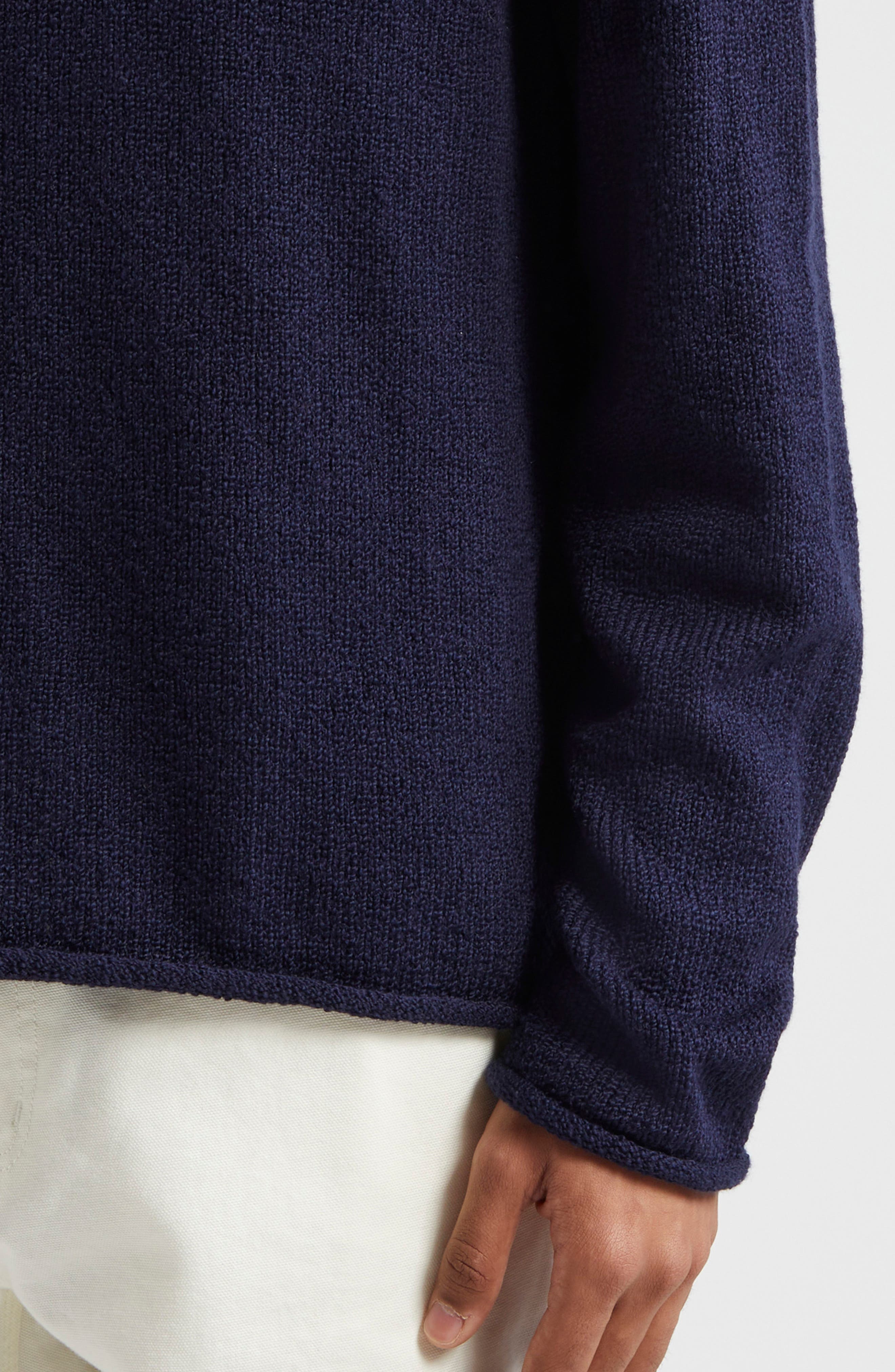 The Elder Statesman Gender Inclusive Roll Neck Cotton Sweater_Navy