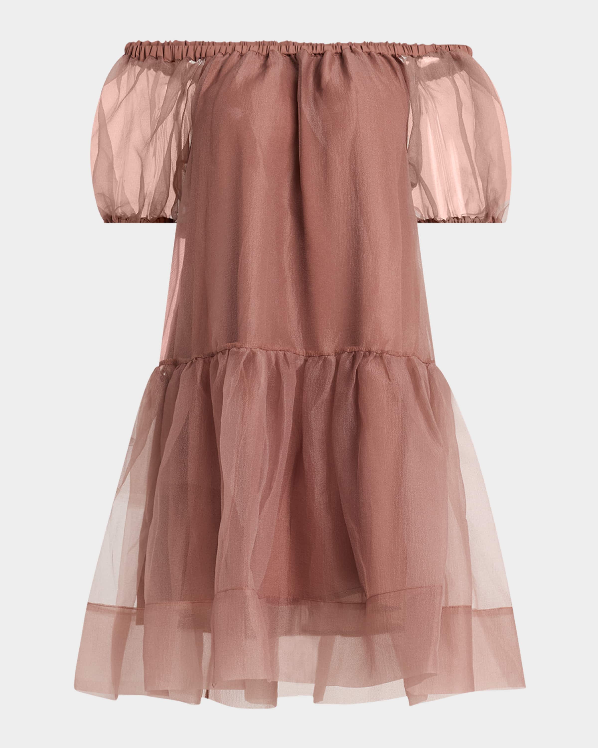Cynthia Rowley Off-Shoulder Puff-Sleeve Organza Midi Dress