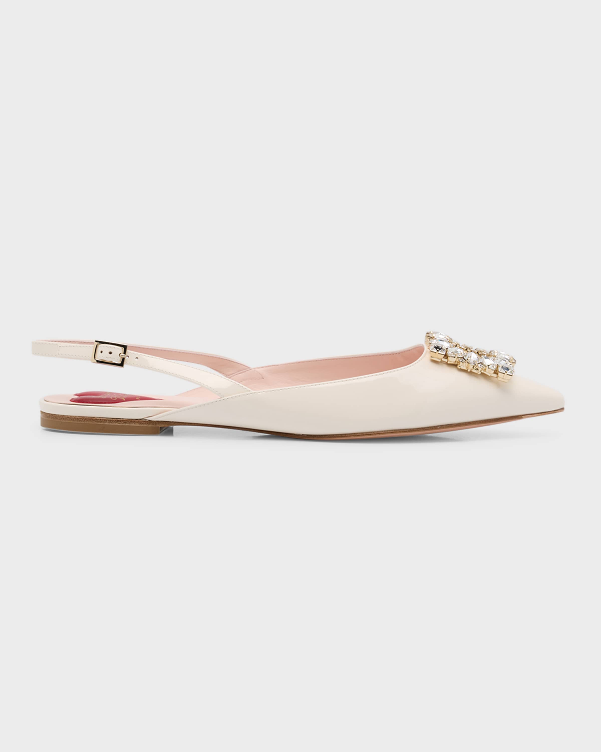 Roger Vivier Leather Crystal Buckle Slingback Ballerina Flats