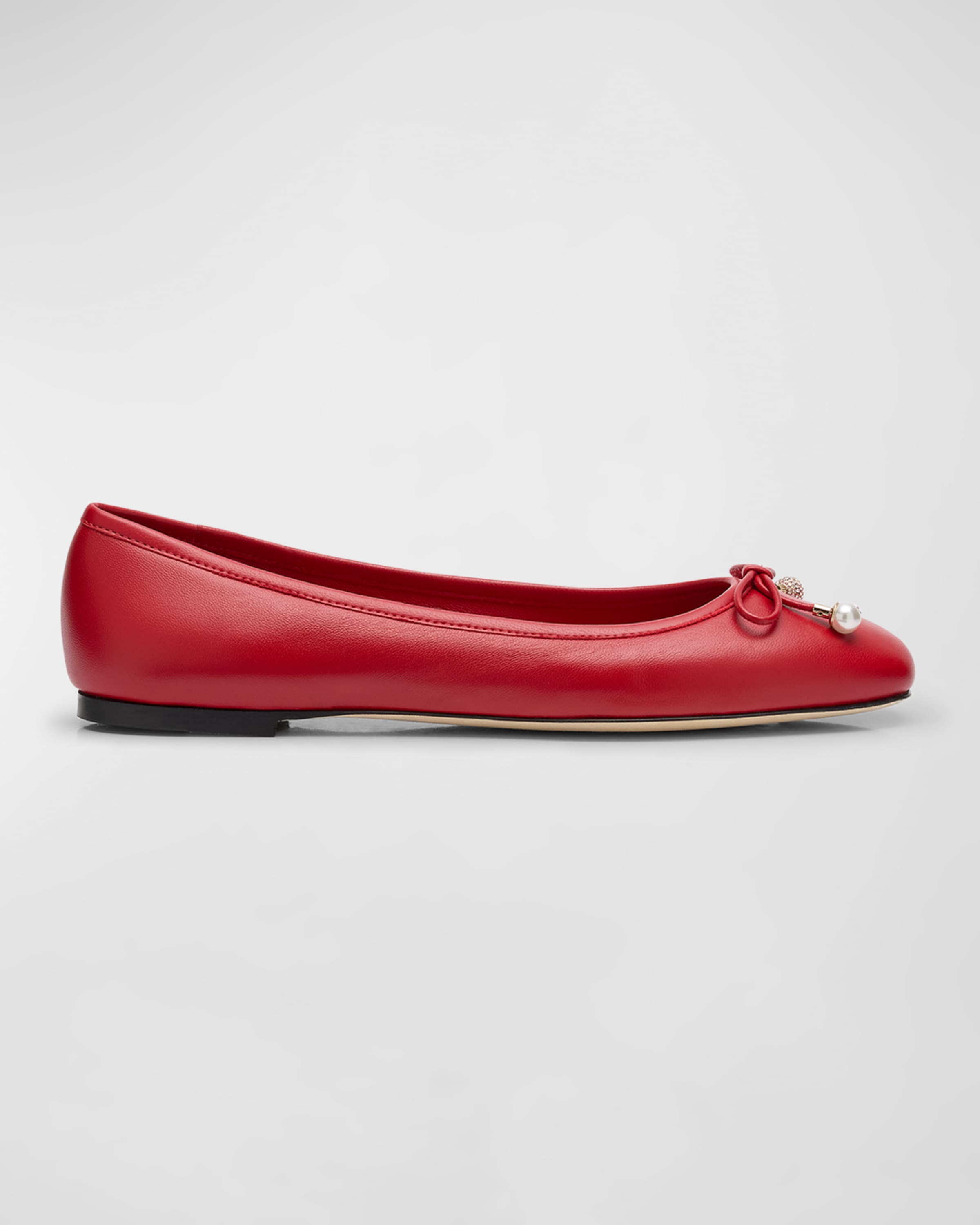 Jimmy Choo Elme Leather Bow Ballerina Flats