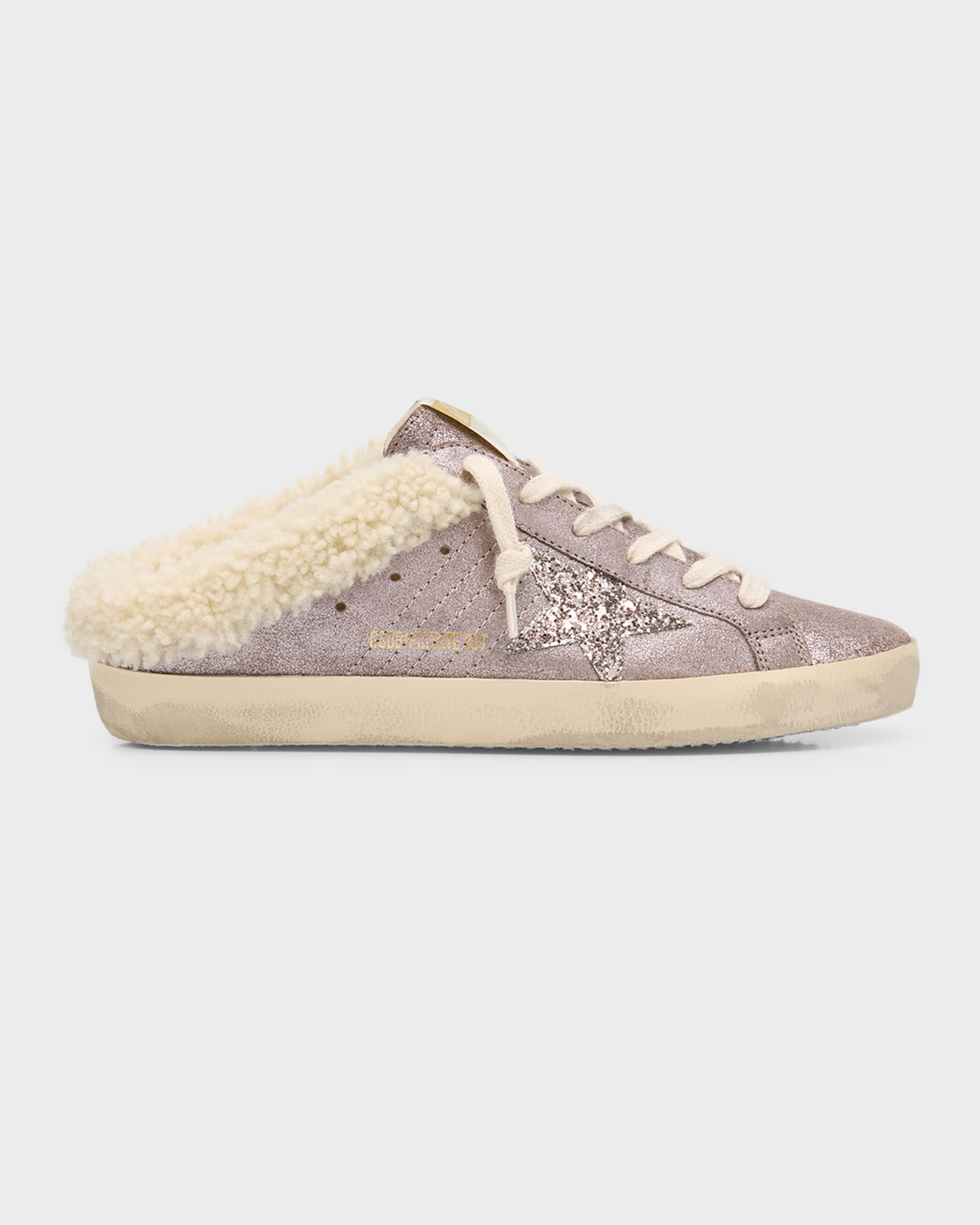 Golden Goose Sabot Shimmer Shearling Slide Sneakers