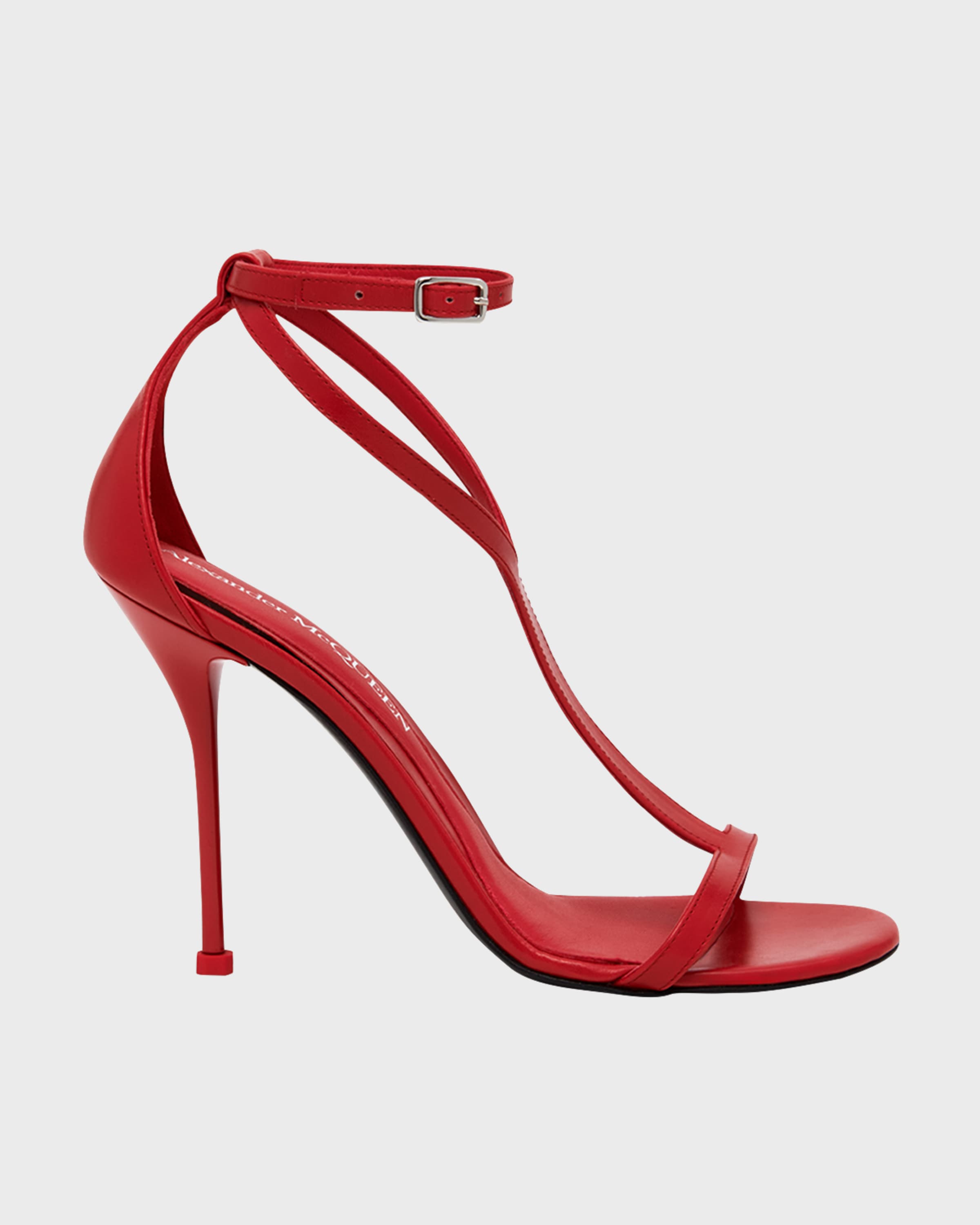 McQueen Harness Leather T-Strap Stiletto Sandals