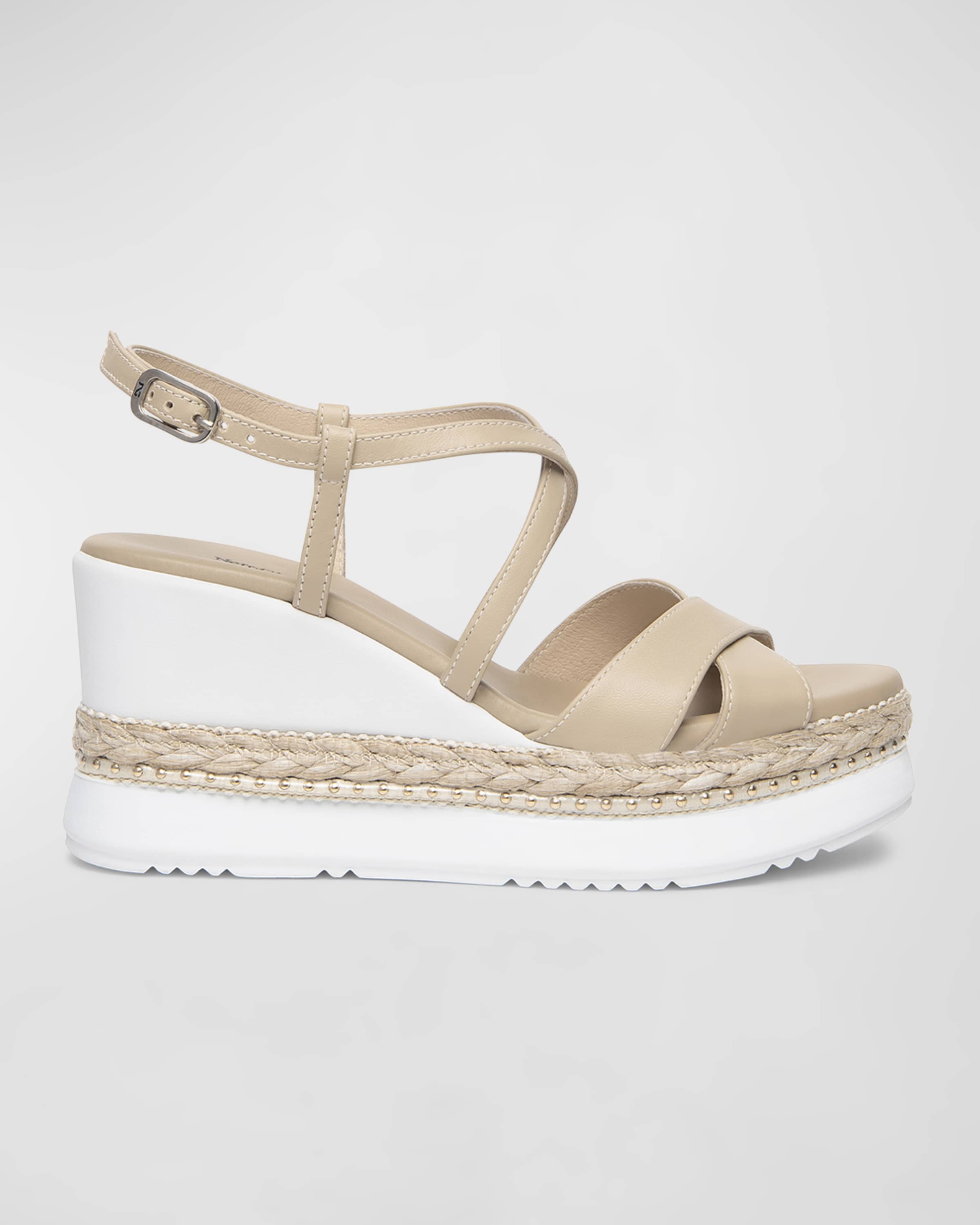 NeroGiardini Crisscross Braided Rope Wedge Sandals
