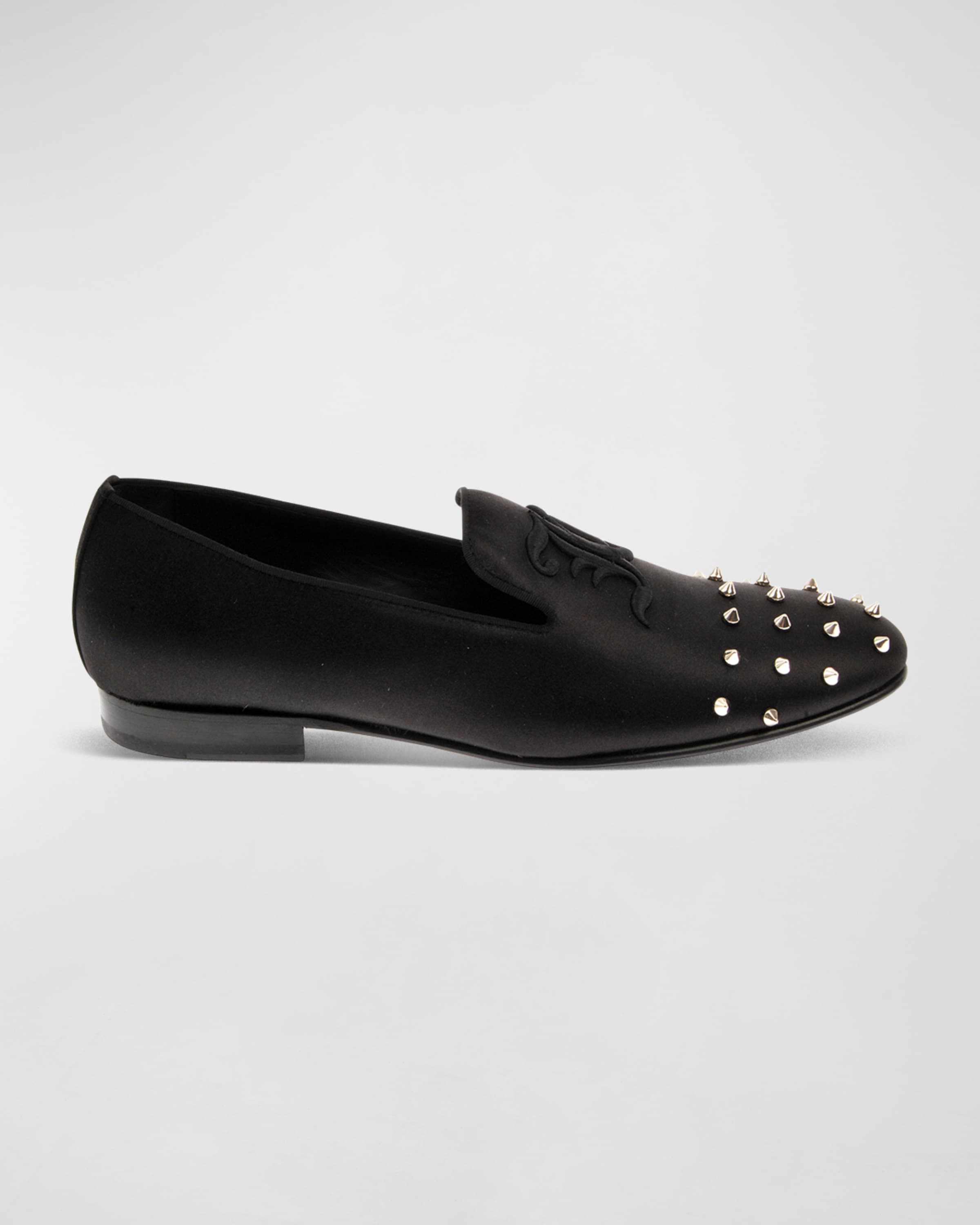 John Galliano Paris Mens Embroidered Monogram Studded Leather Loafers
