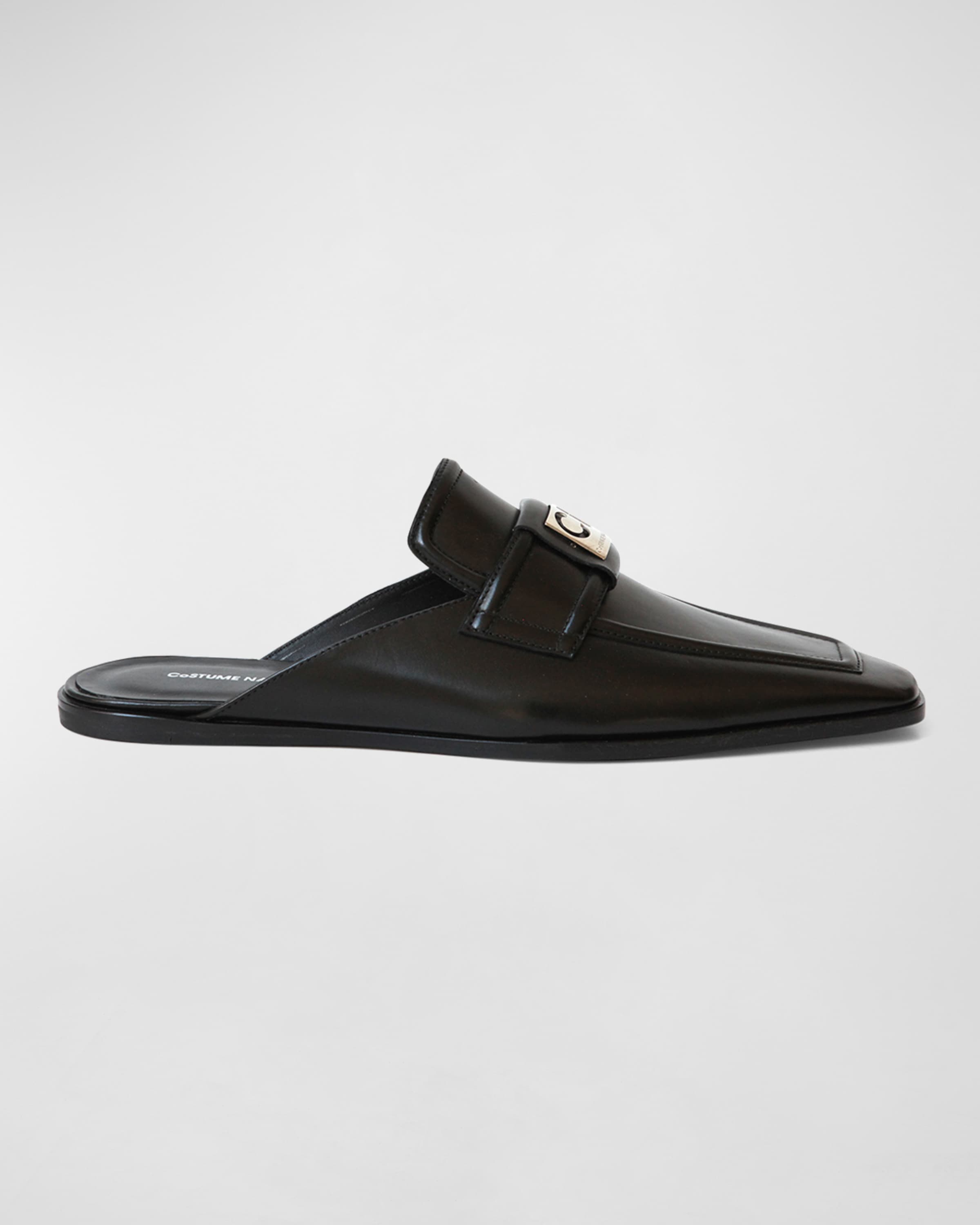 Costume National Mens CN-Logo Leather Backless Loafer Slides