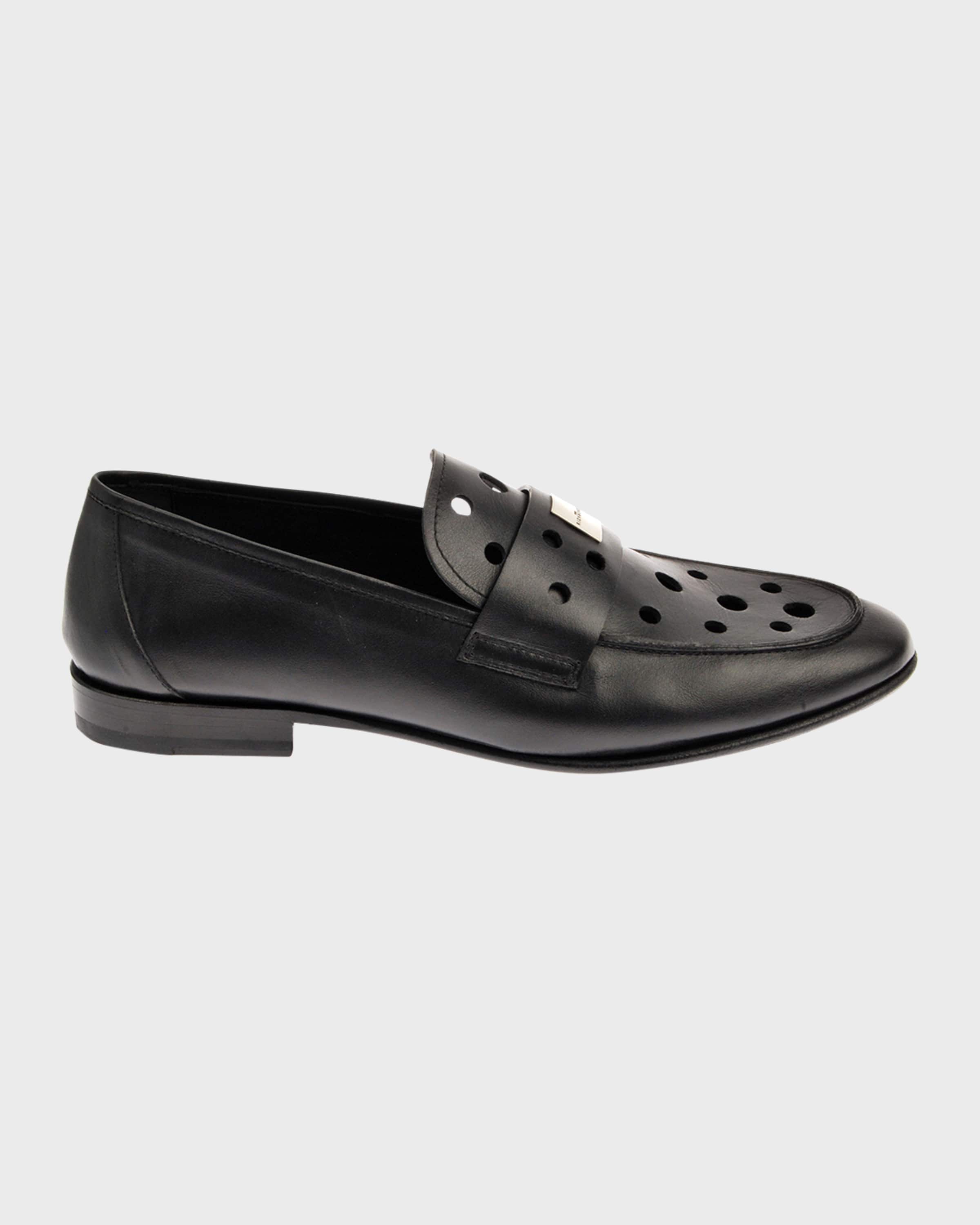 John Richmond Mens Cut-Out Leather Penny Loafers