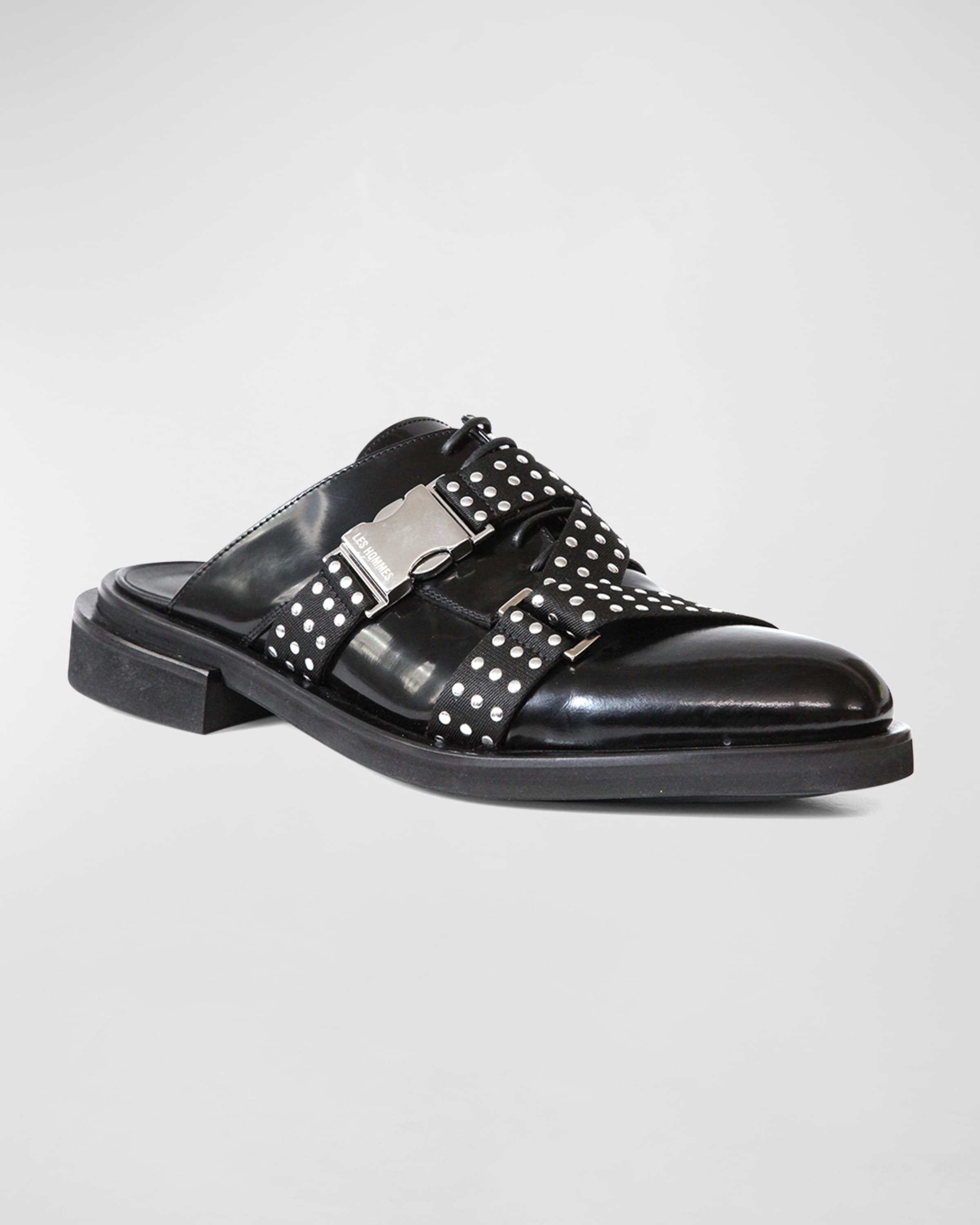 Les Hommes Mens Leather Studded Strap Mule Loafers