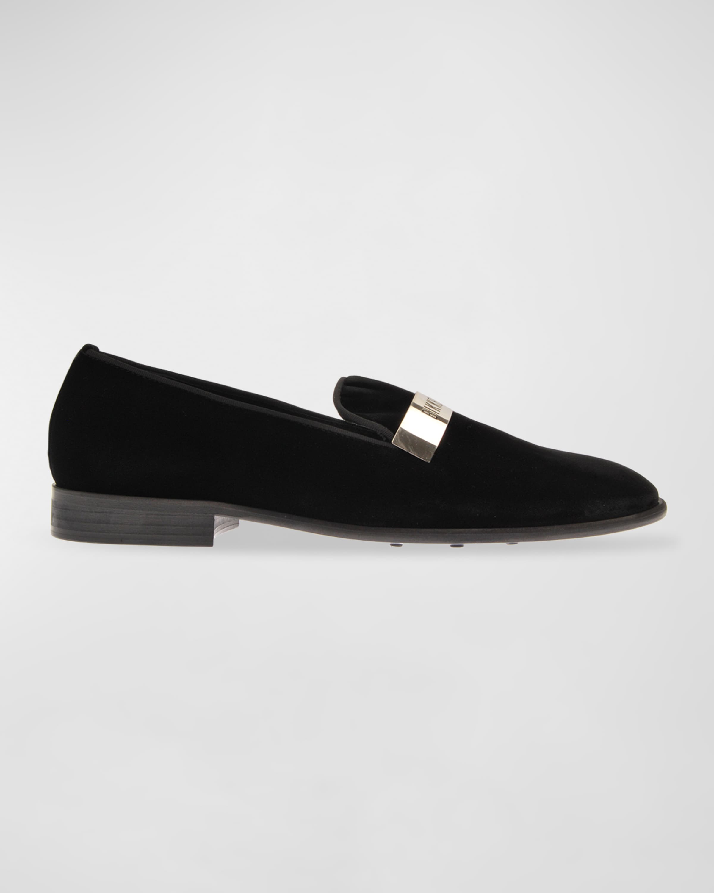 Bikkembergs Mens Logo Plaque Velvet Smoking Slippers