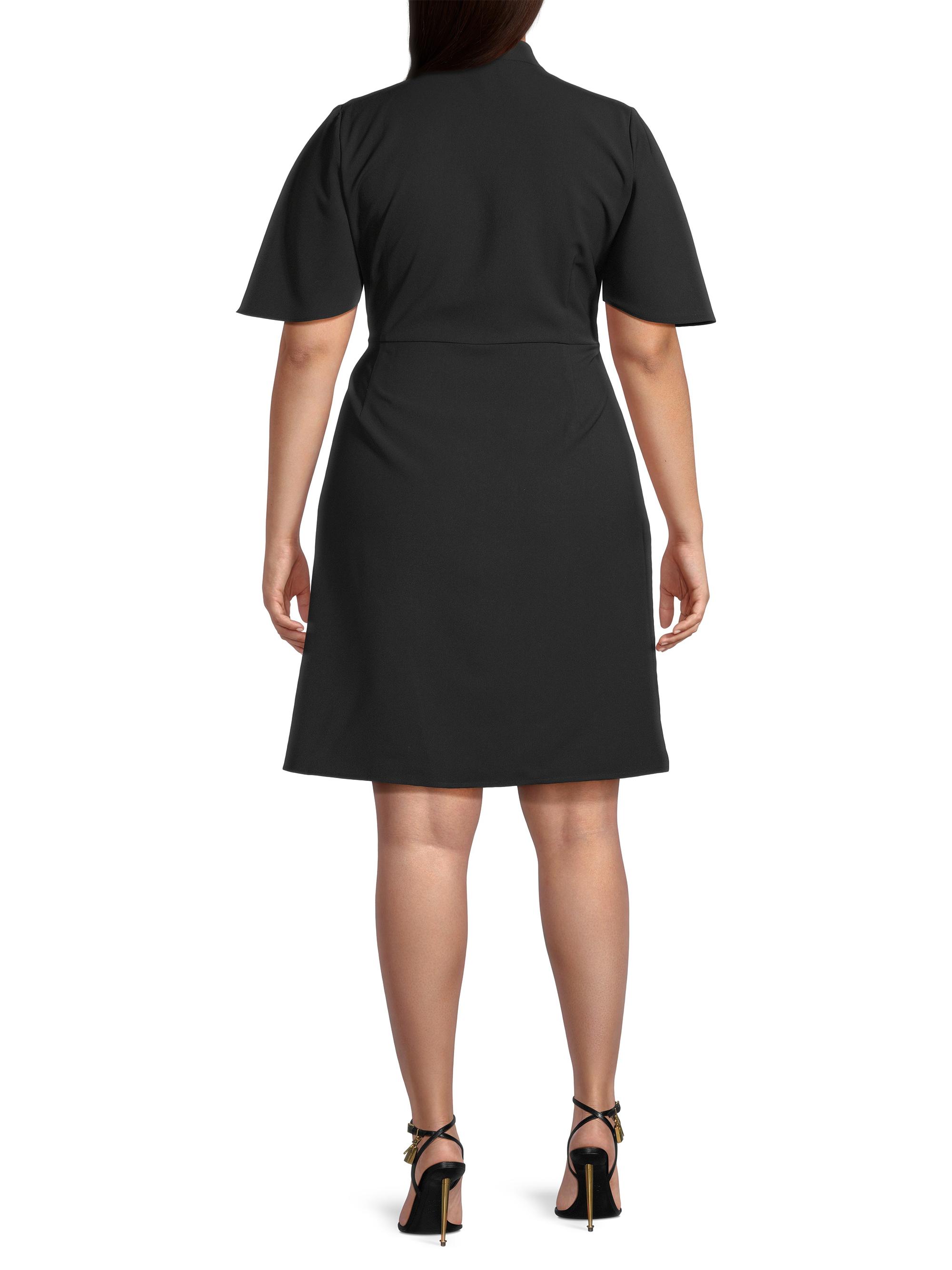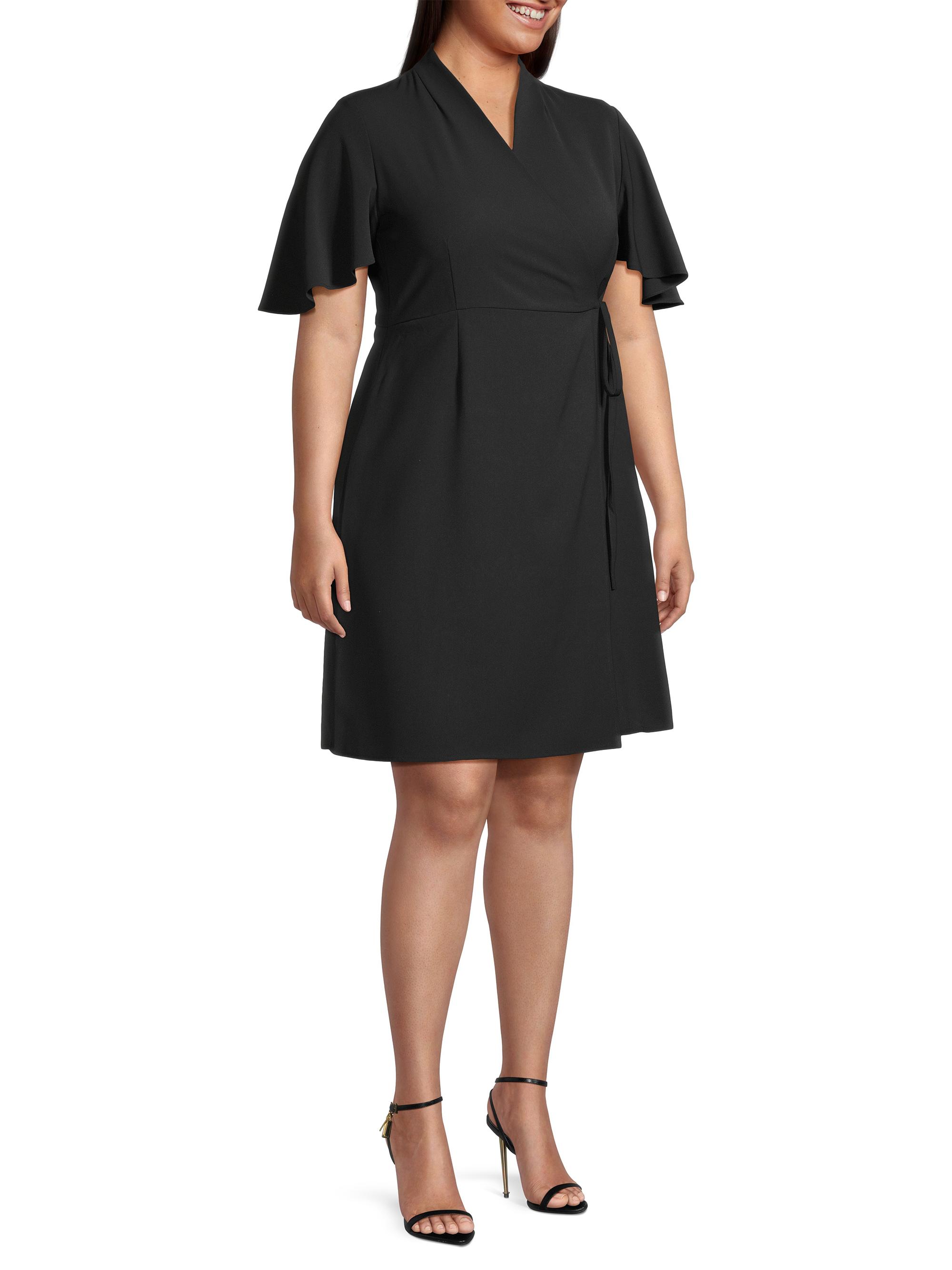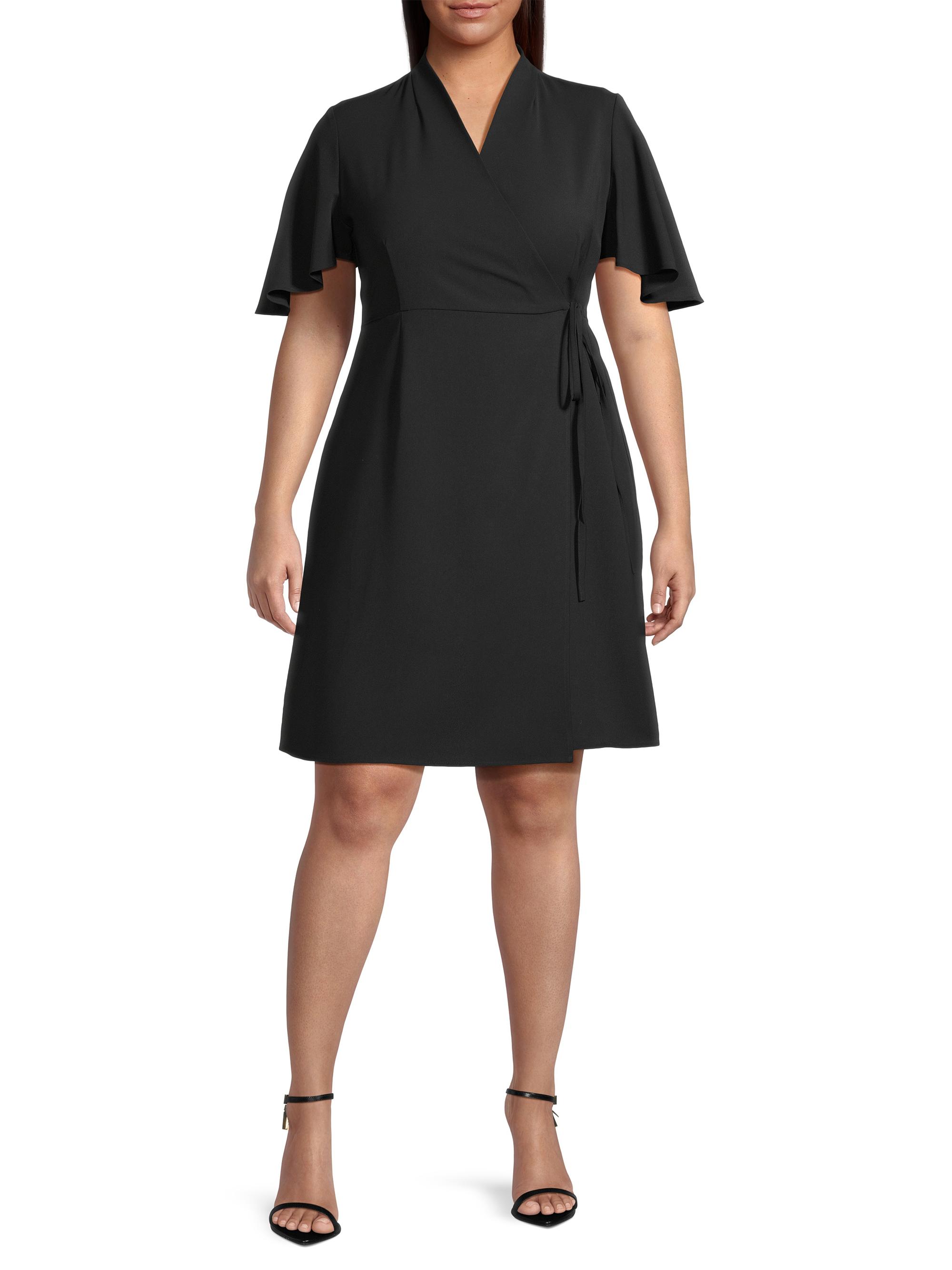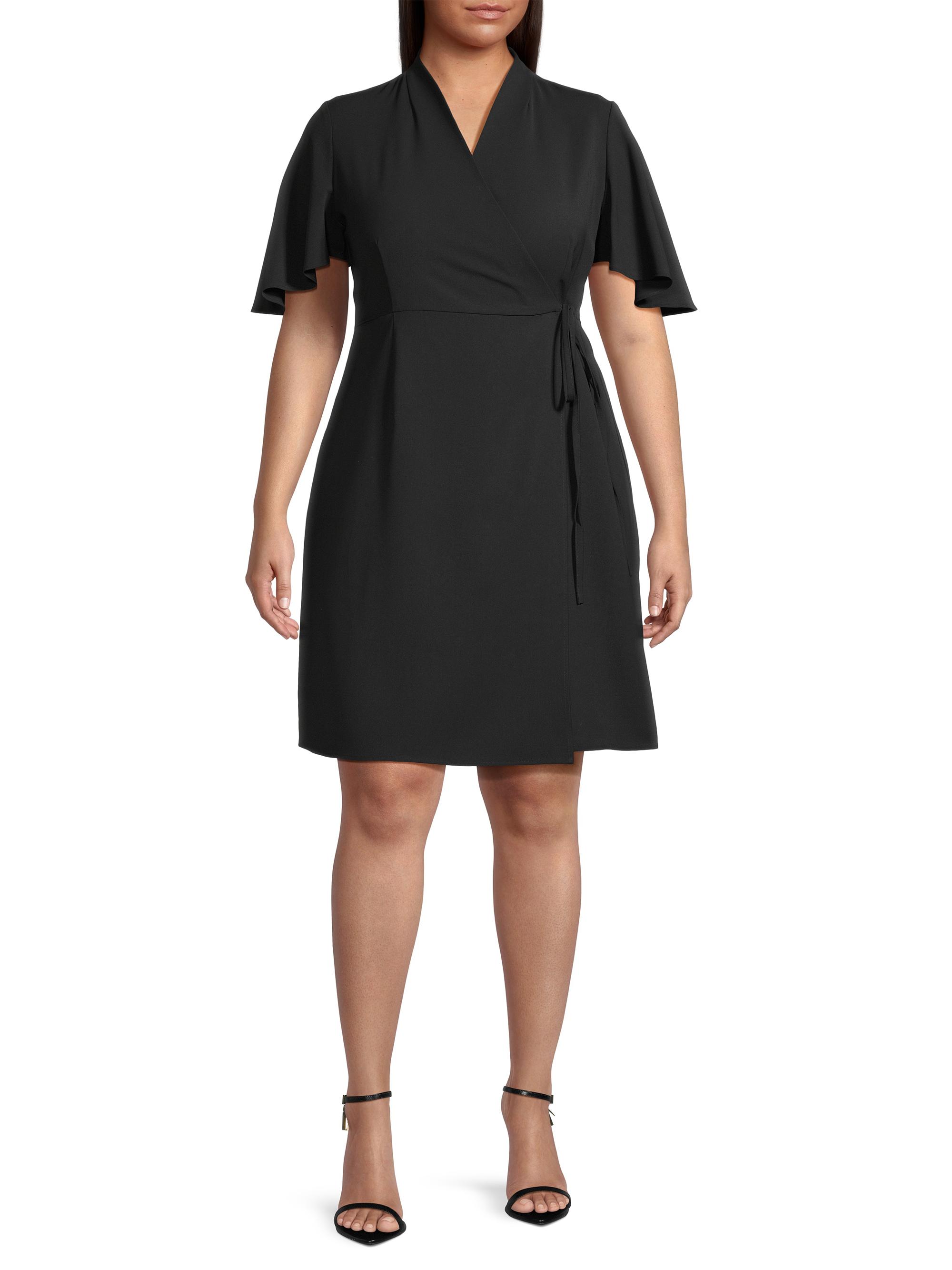 Ming Wang, Plus Size Butterfly-Sleeve Wrap Dress BLACK