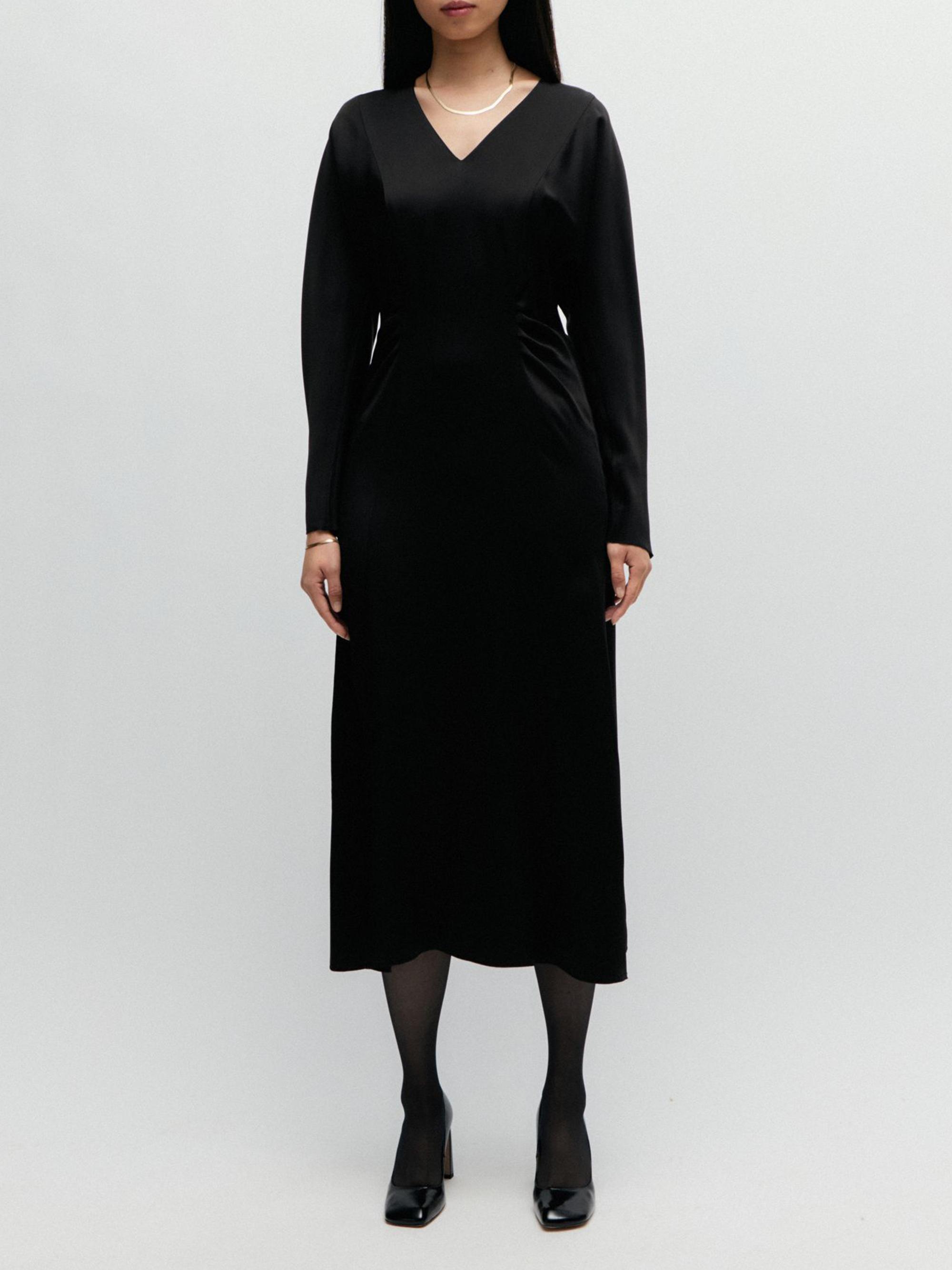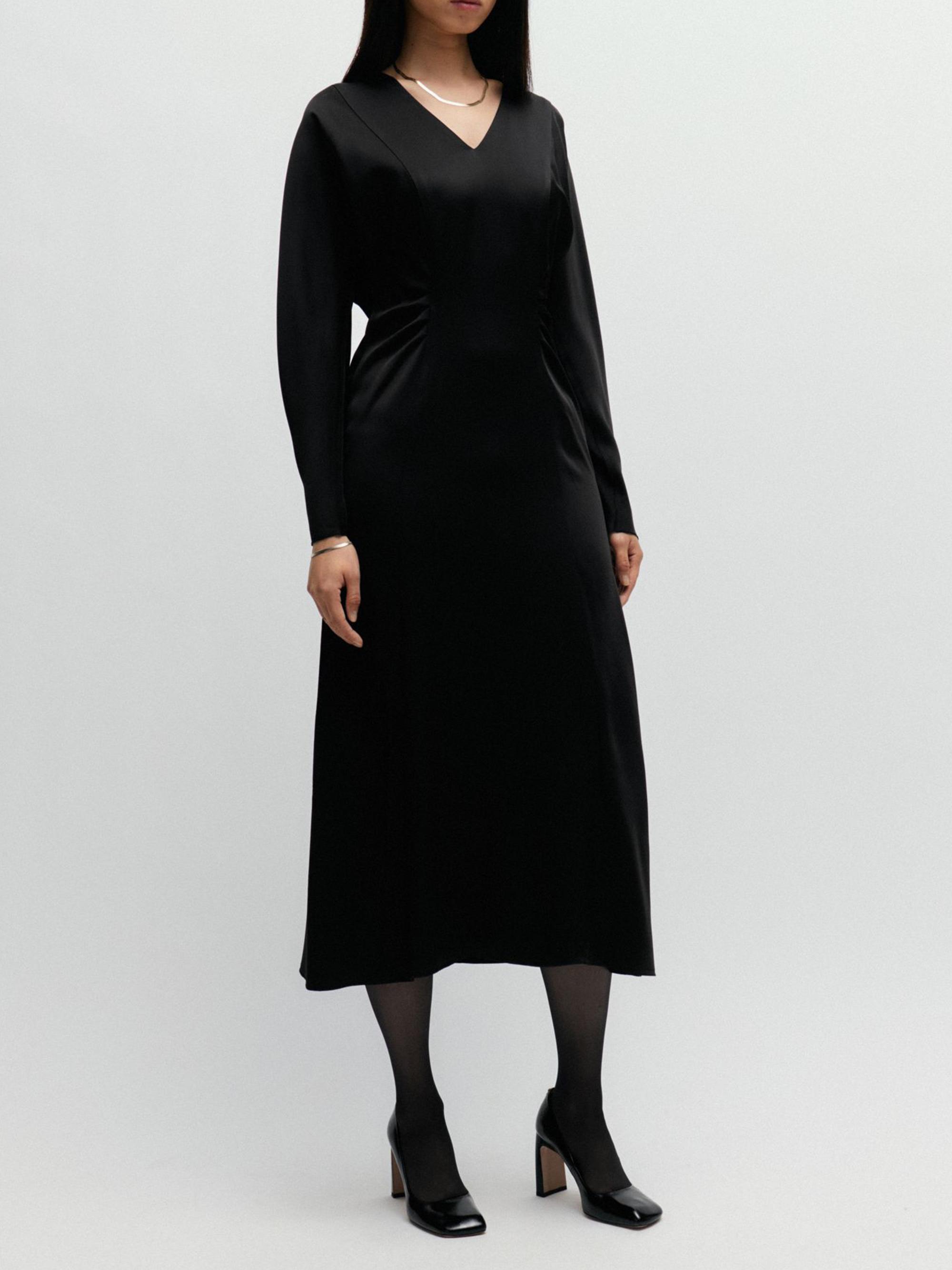 BOSS Gathered-Detail Regular-Fit Dress in Soft Satin