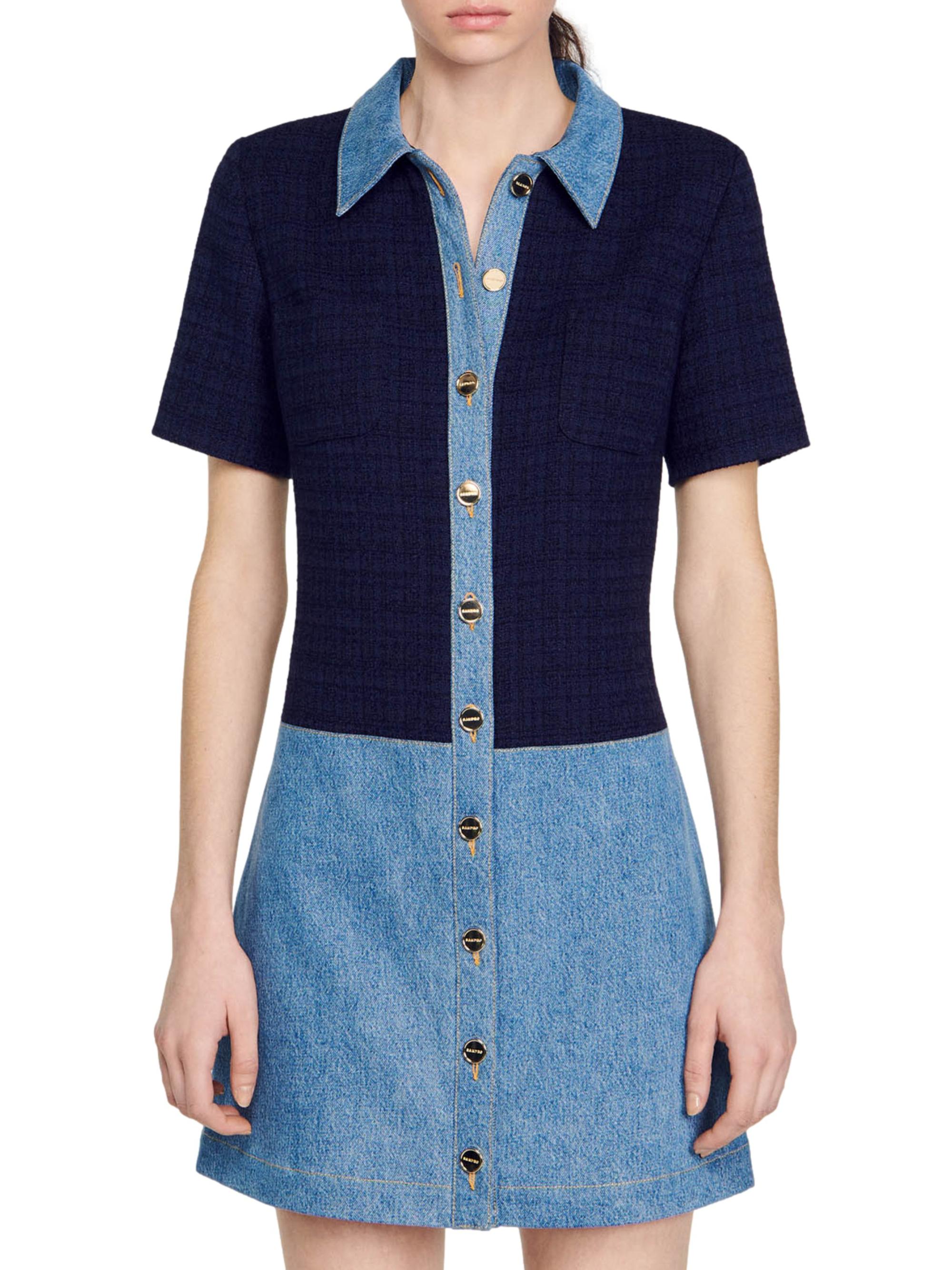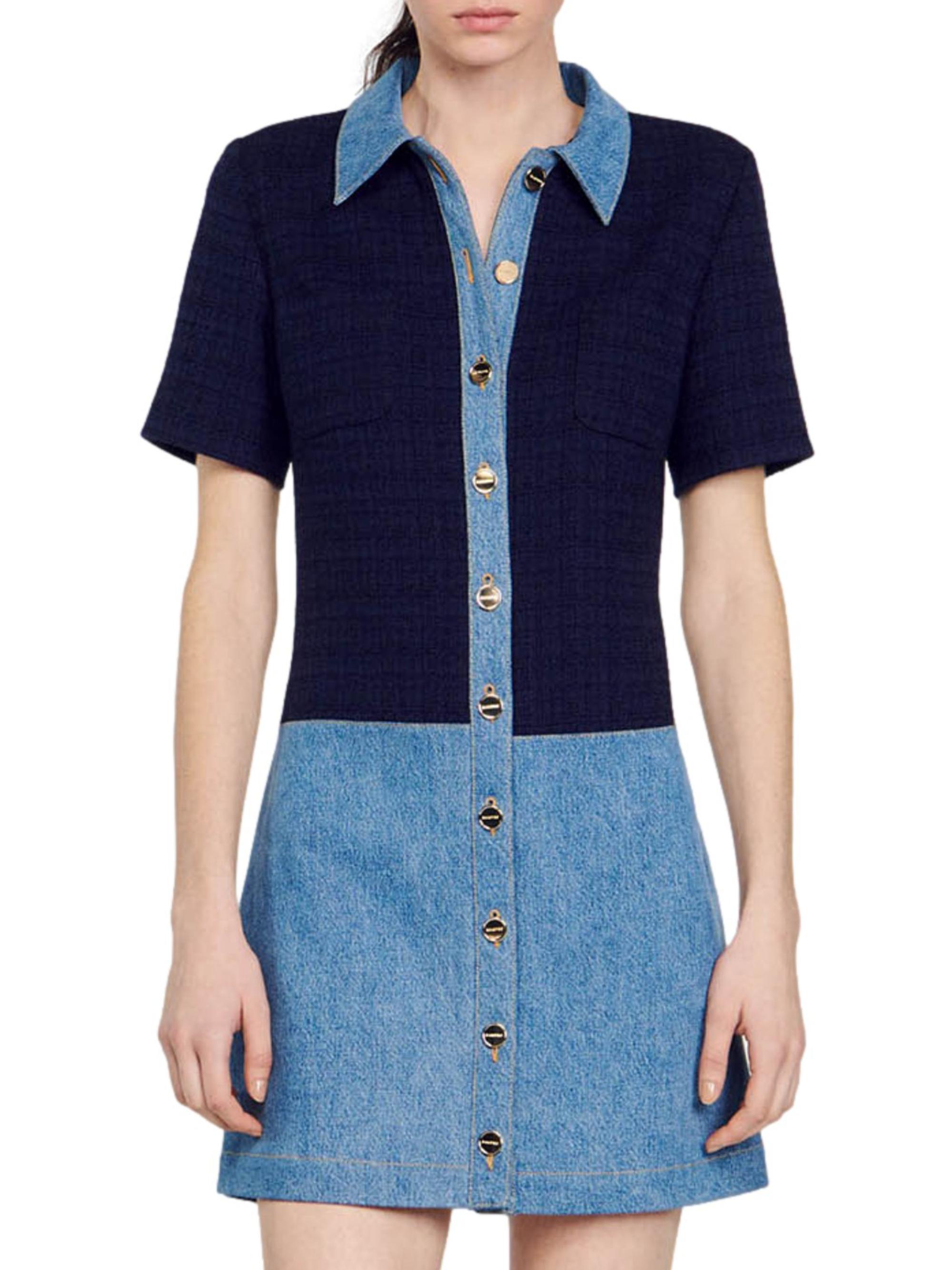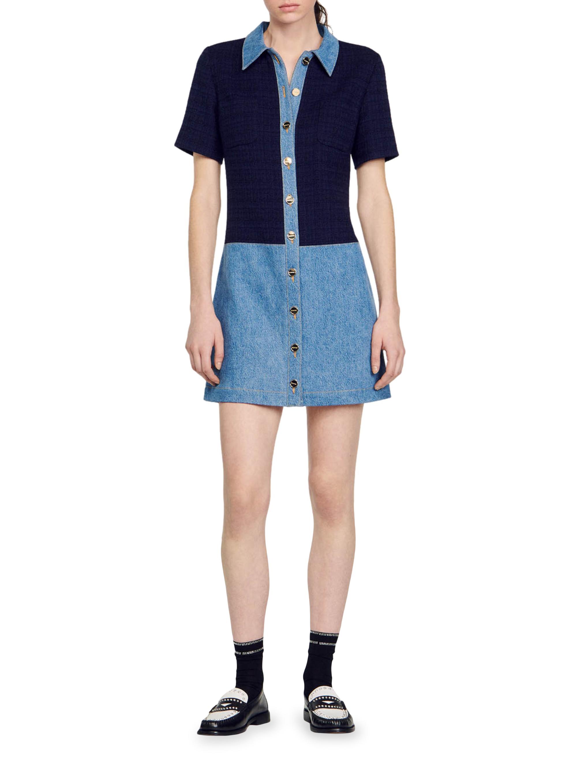 Sandro Tweed and Denim Short Dress