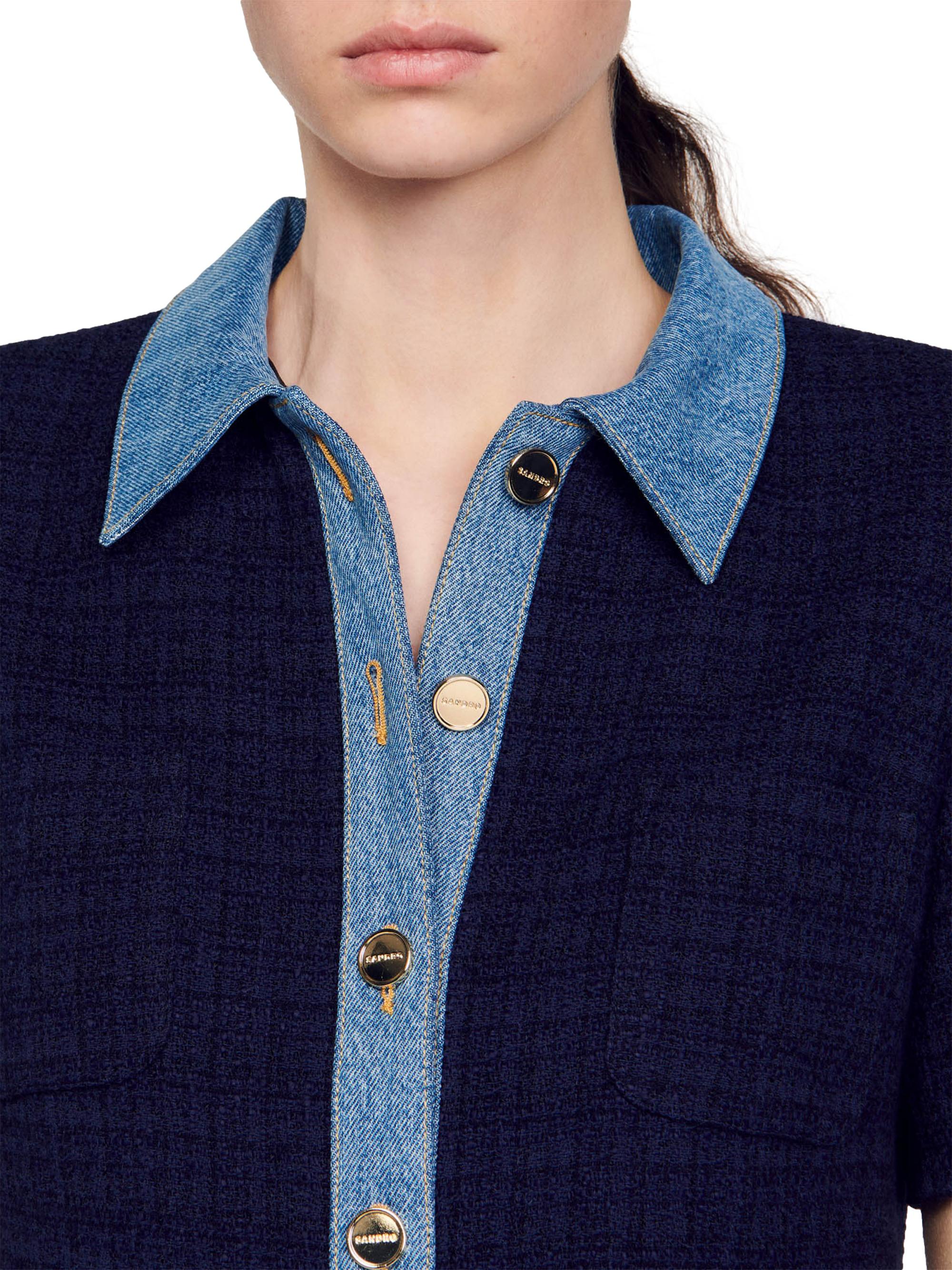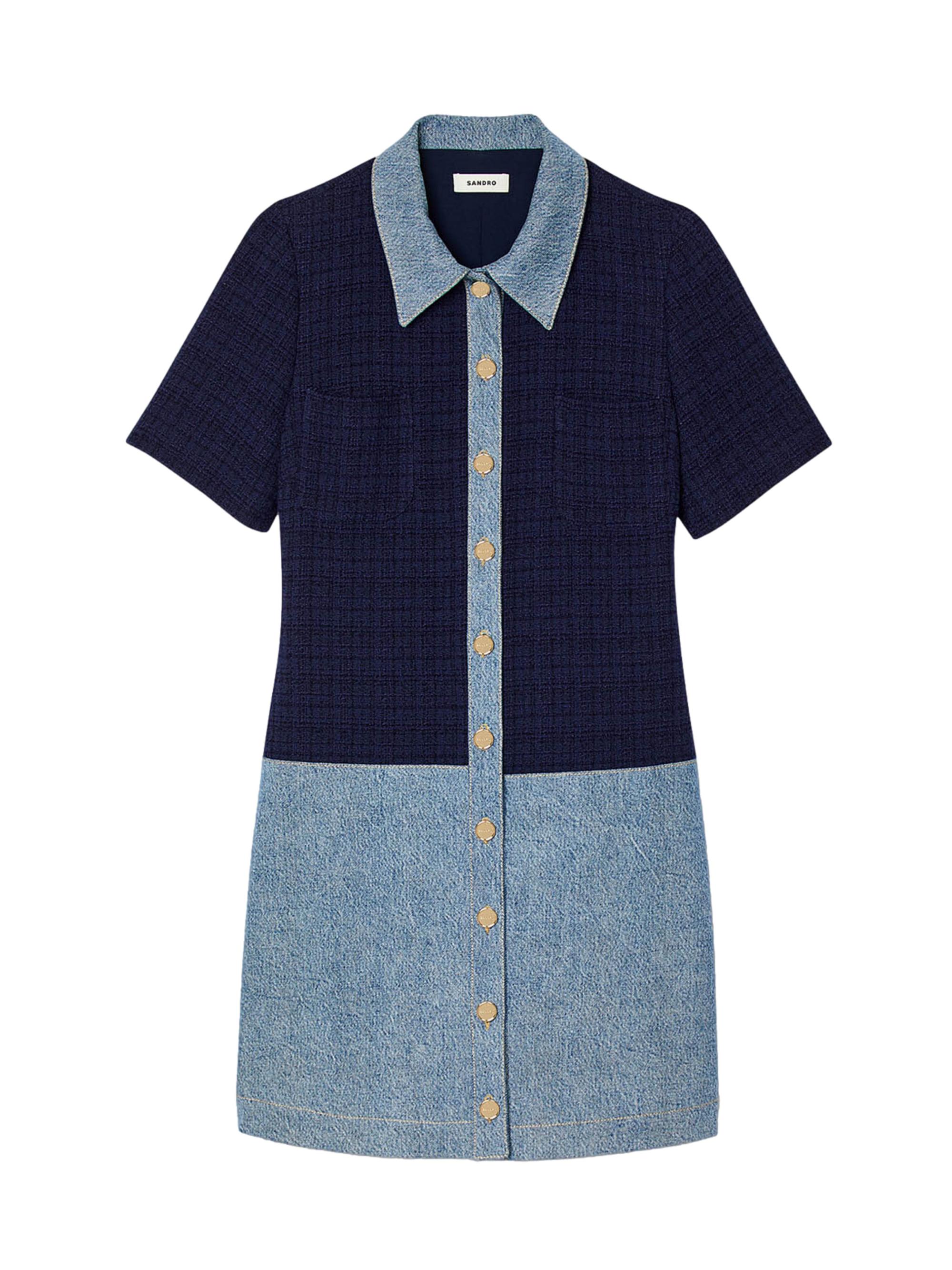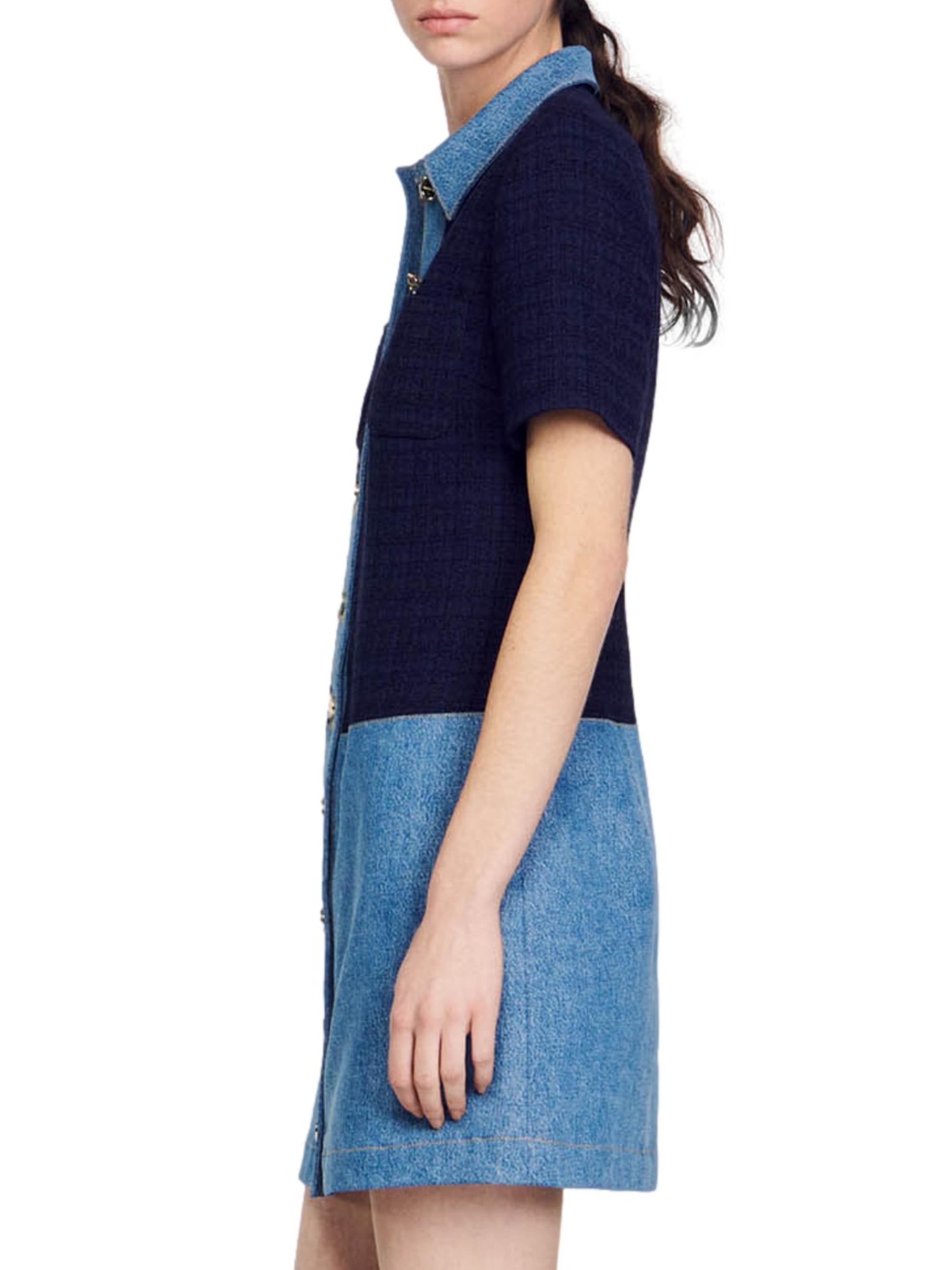 Sandro Tweed and Denim Short Dress
