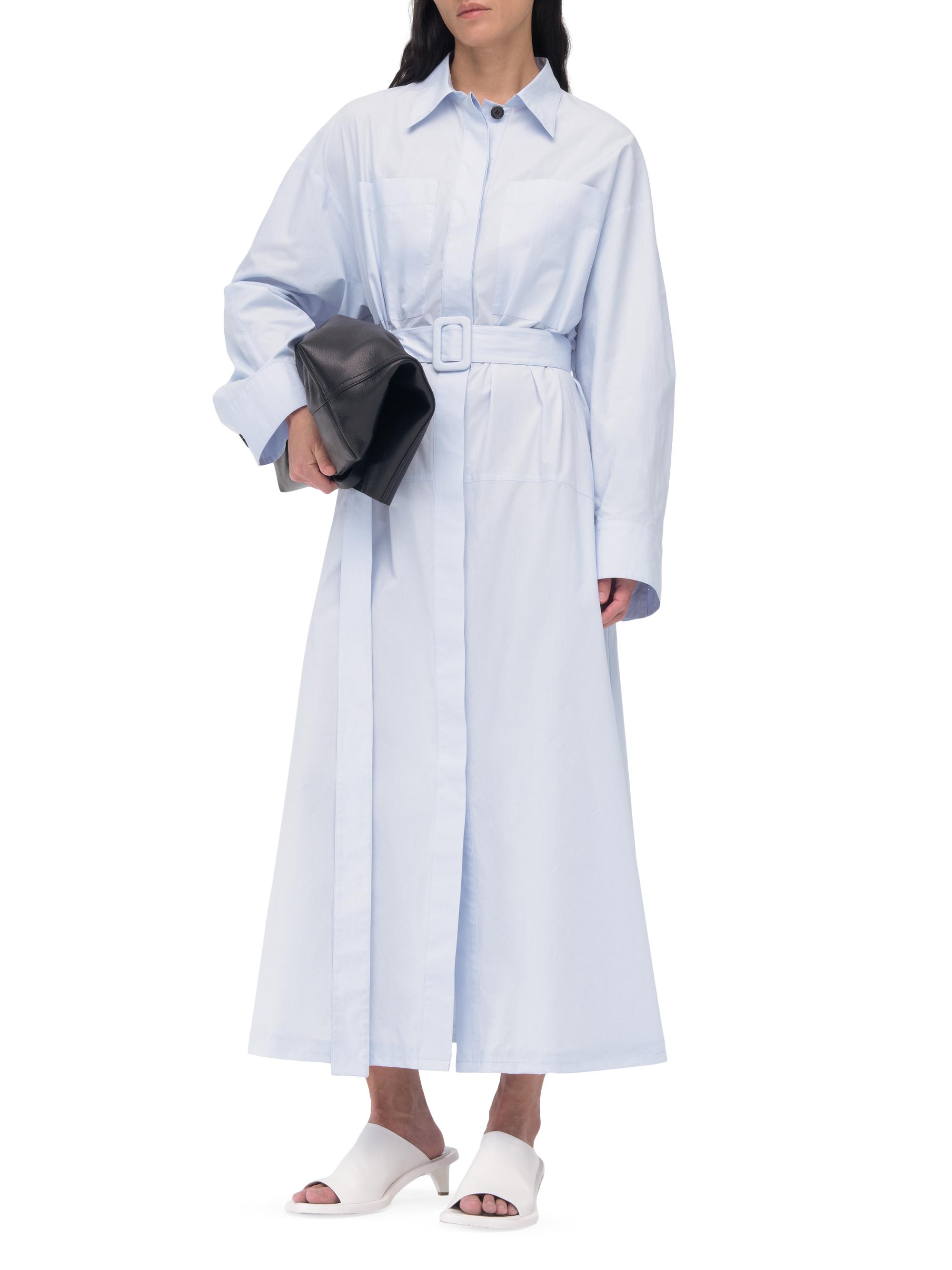Another Tomorrow Belted Cotton Drop Waist Shirtdress