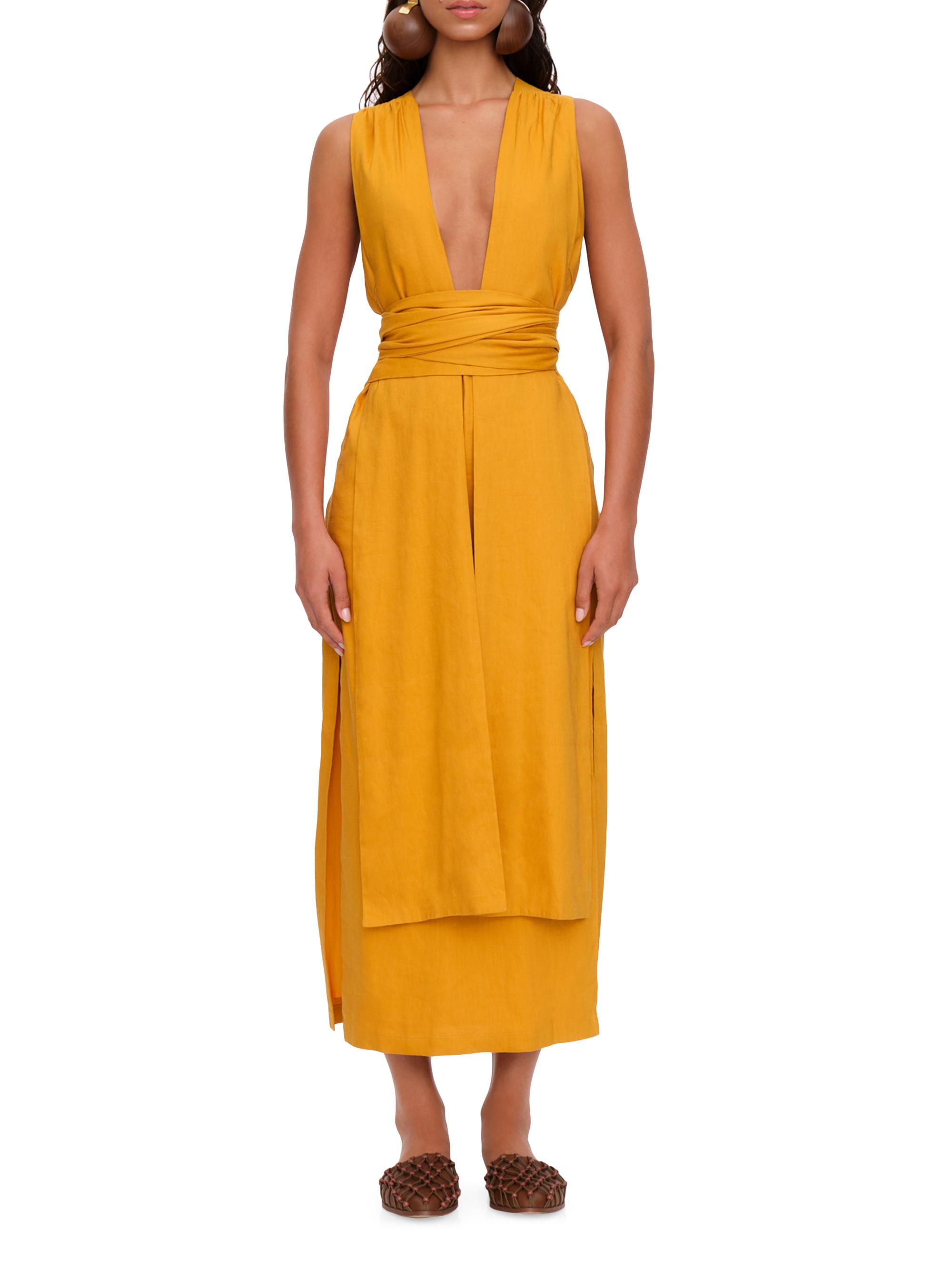 Andrea Iyamah Zado Linen-Blend Sleeveless Midi-Dress