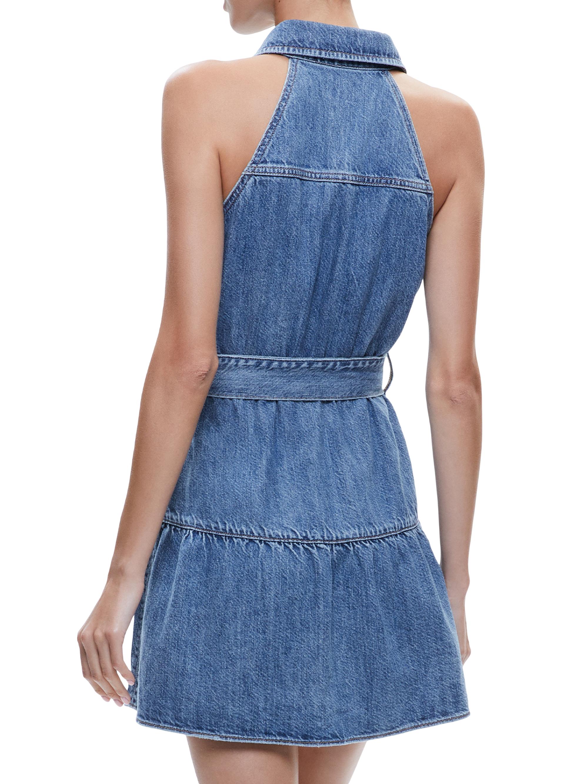 Alice + Olivia Miranda Denim Tie-Waist Minidress