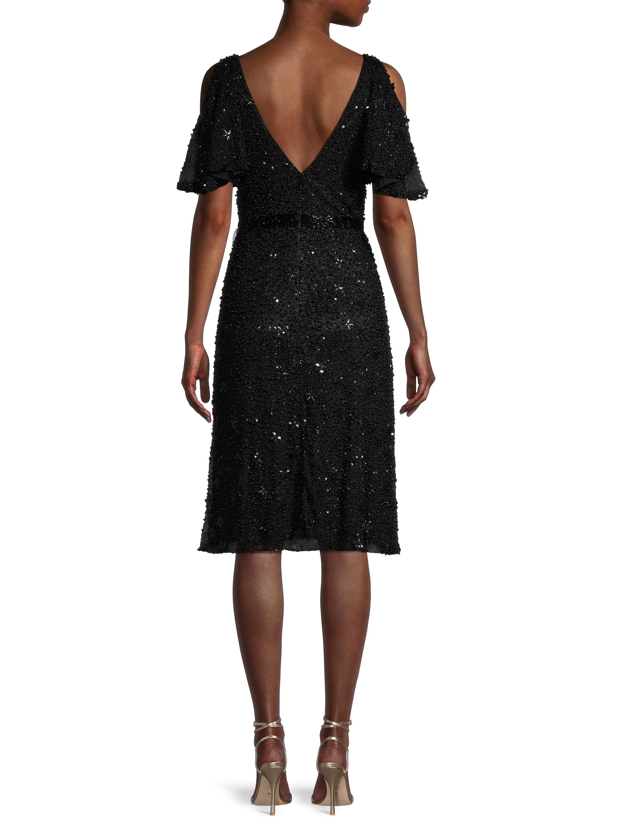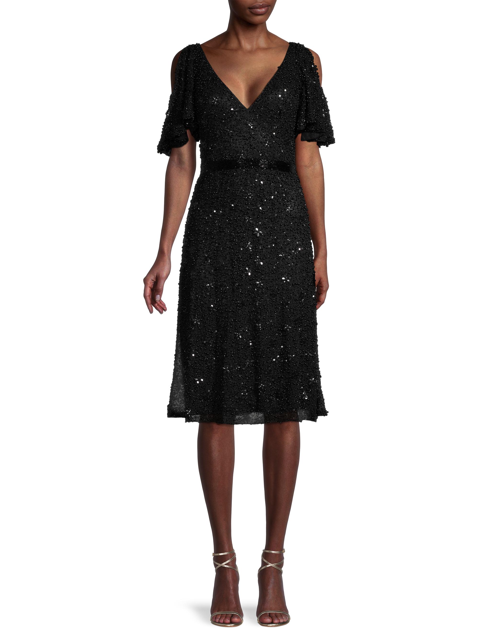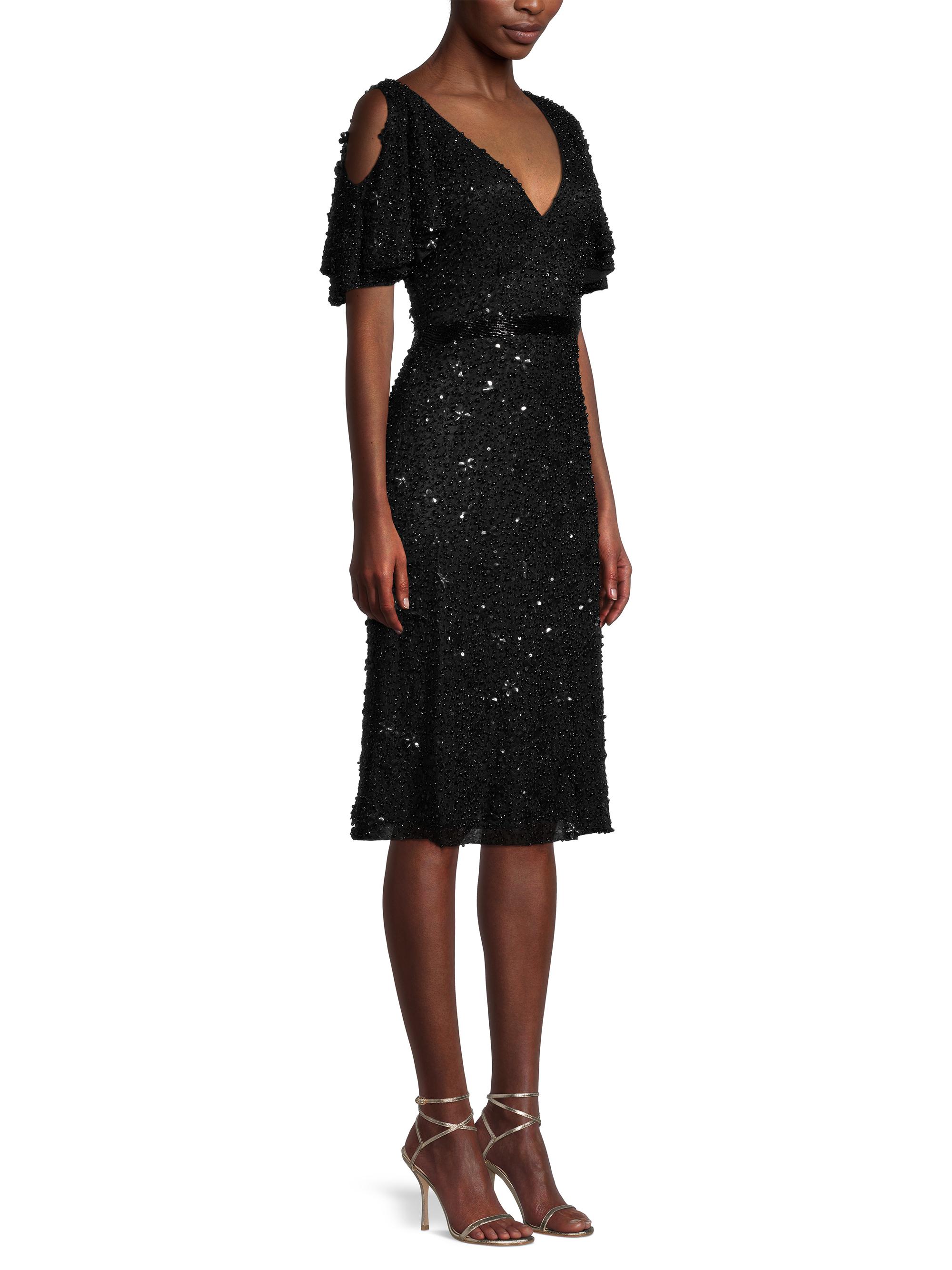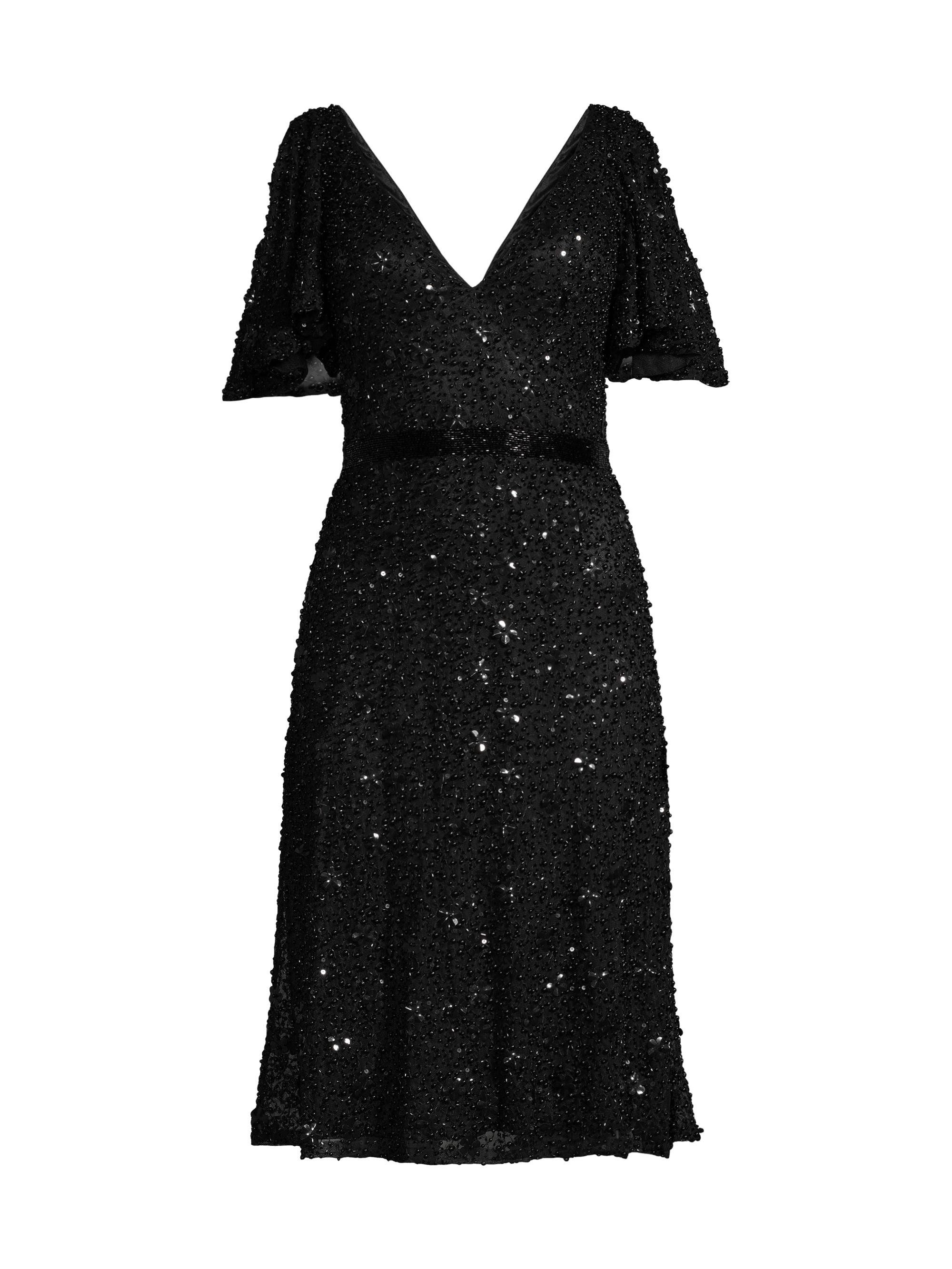 Mac Duggal Butterfly-Sleeve Sequin A-Line Dress