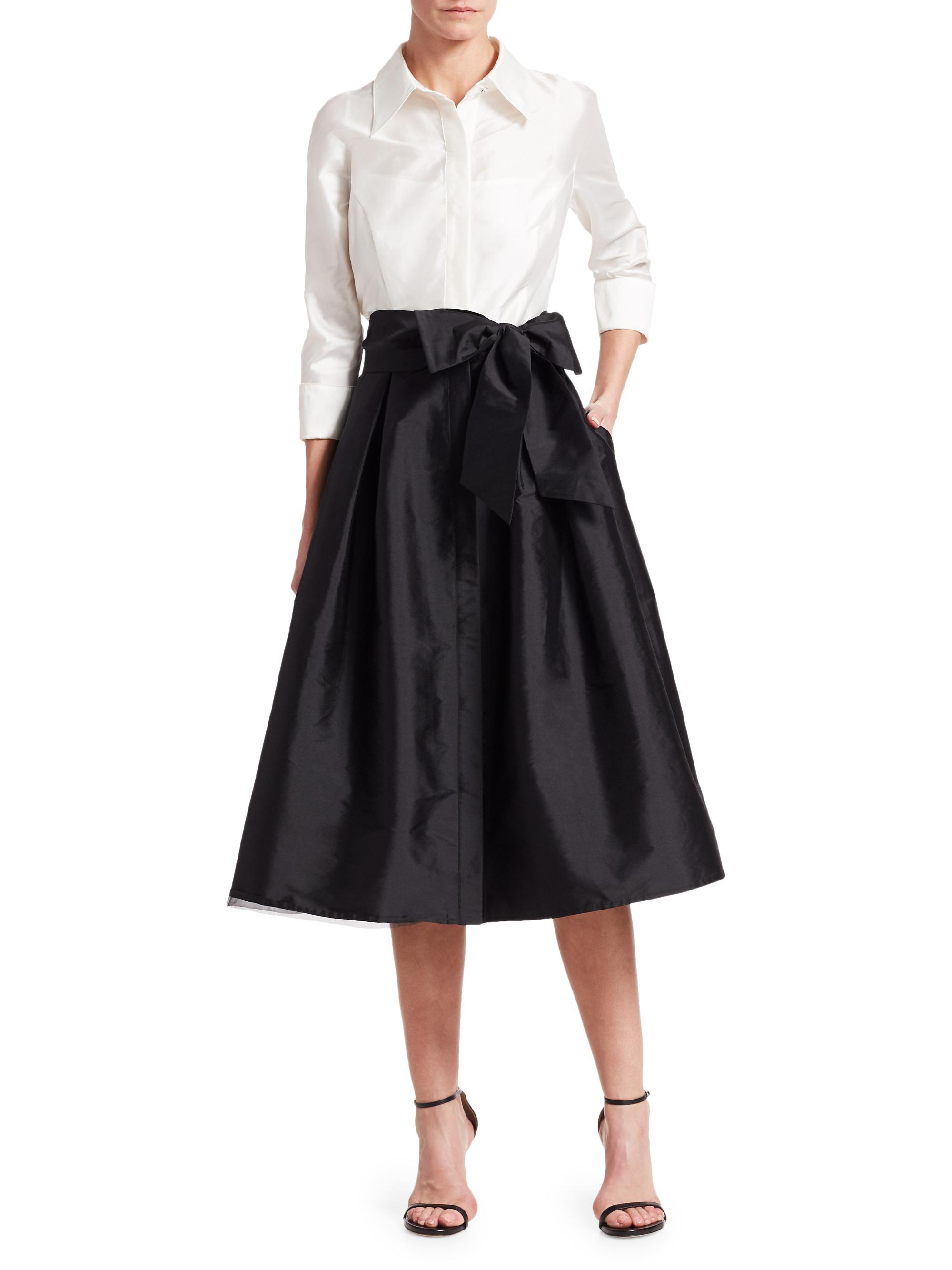 Teri Jon by Rickie Freeman Two-Tone Collared Taffeta Gown