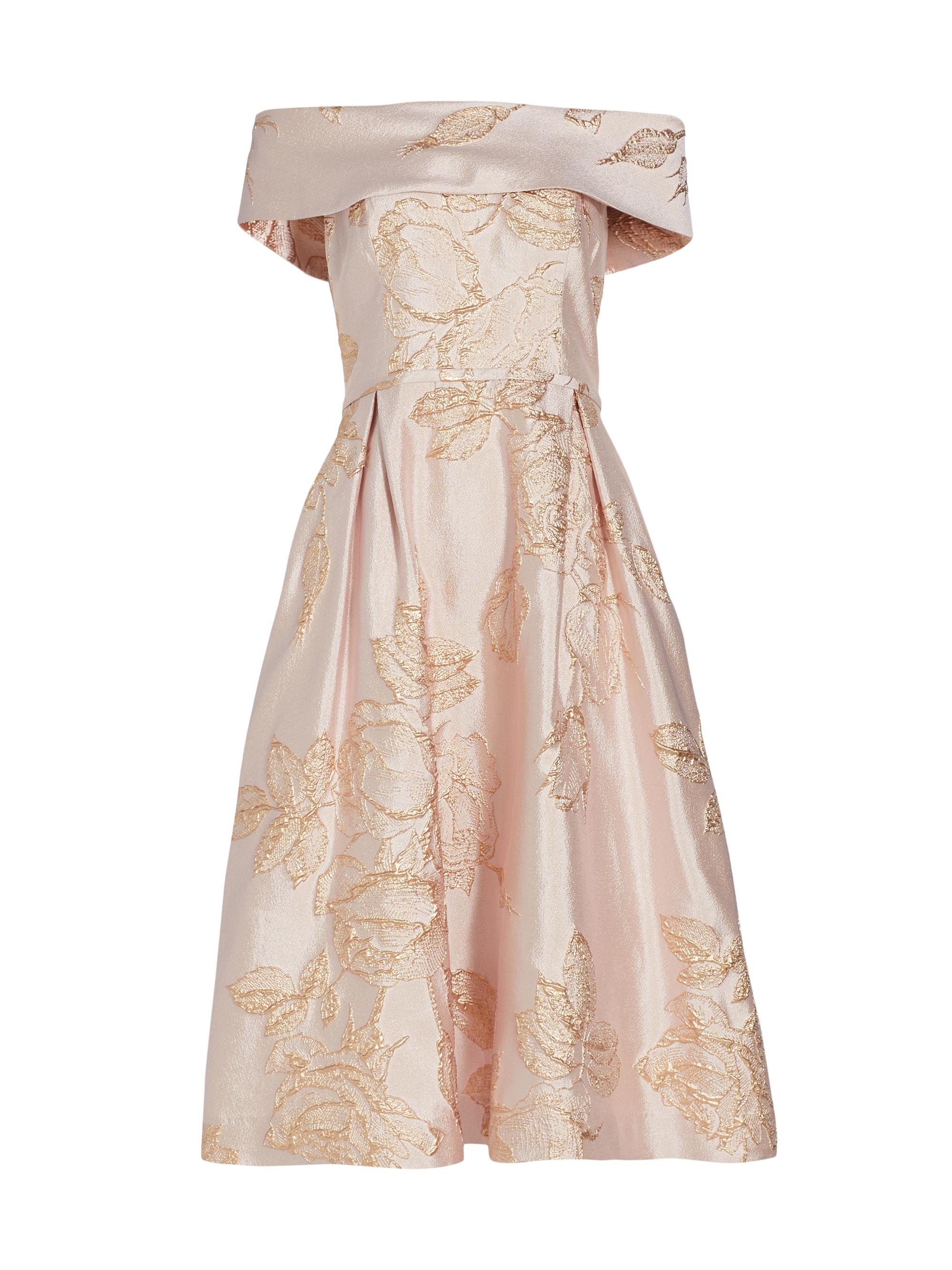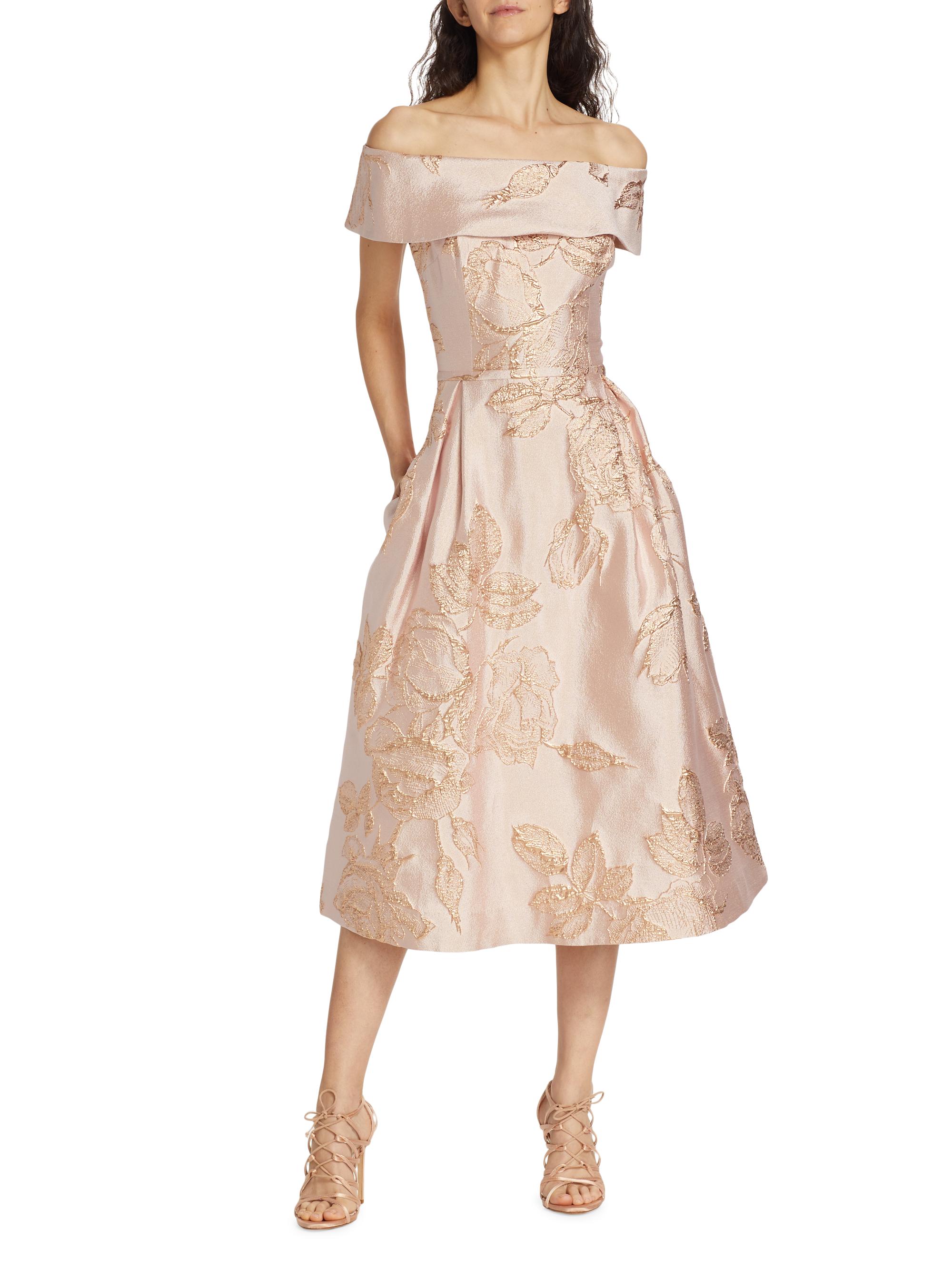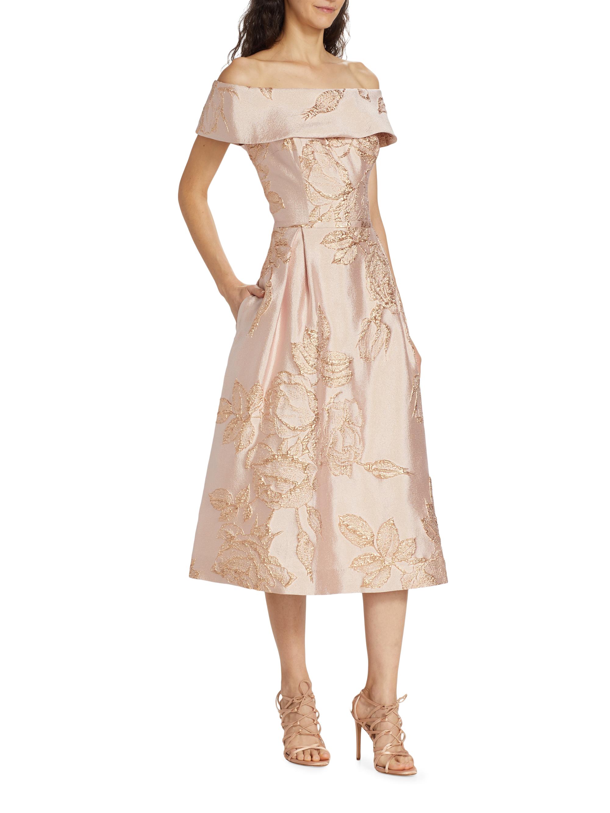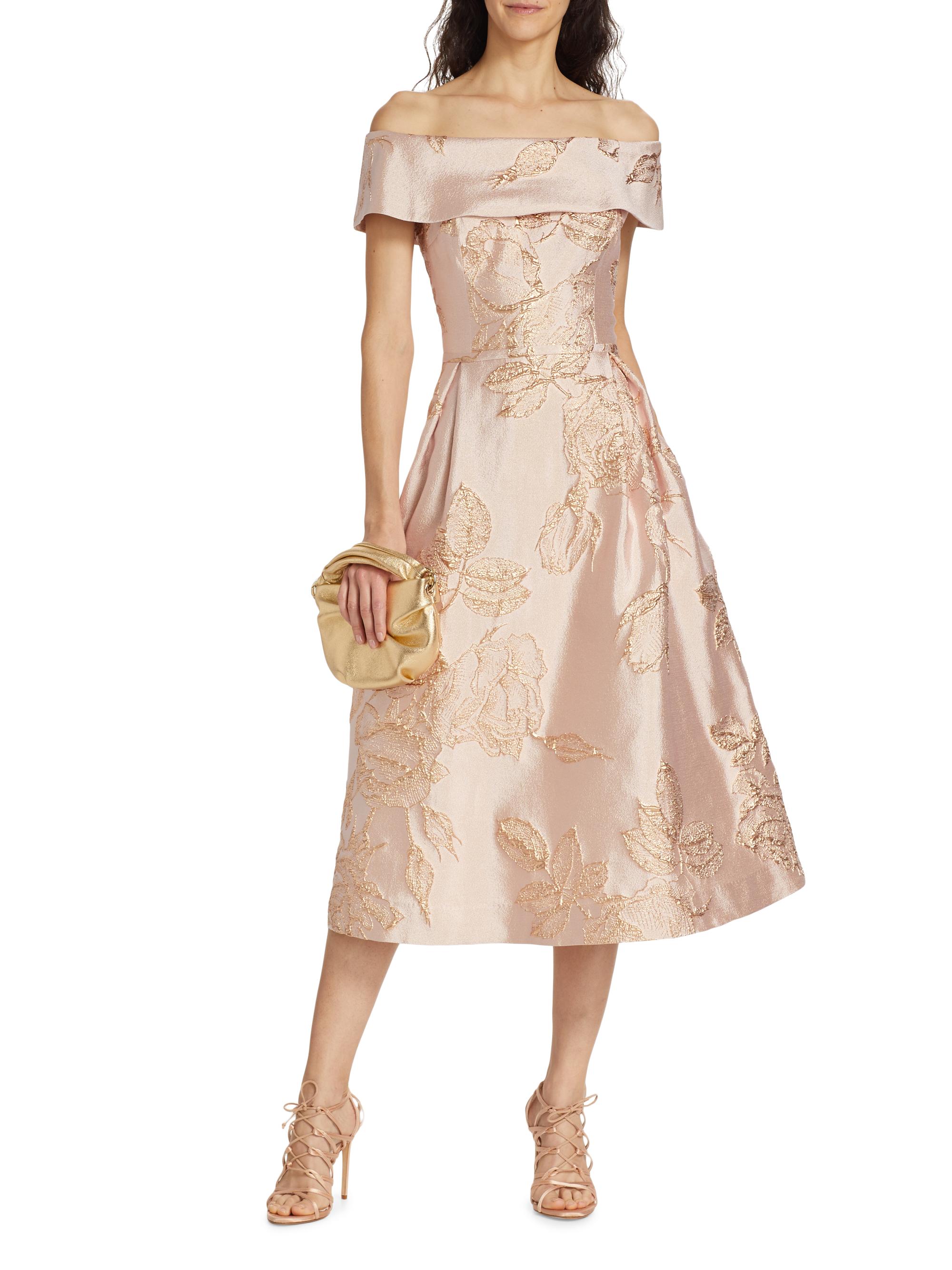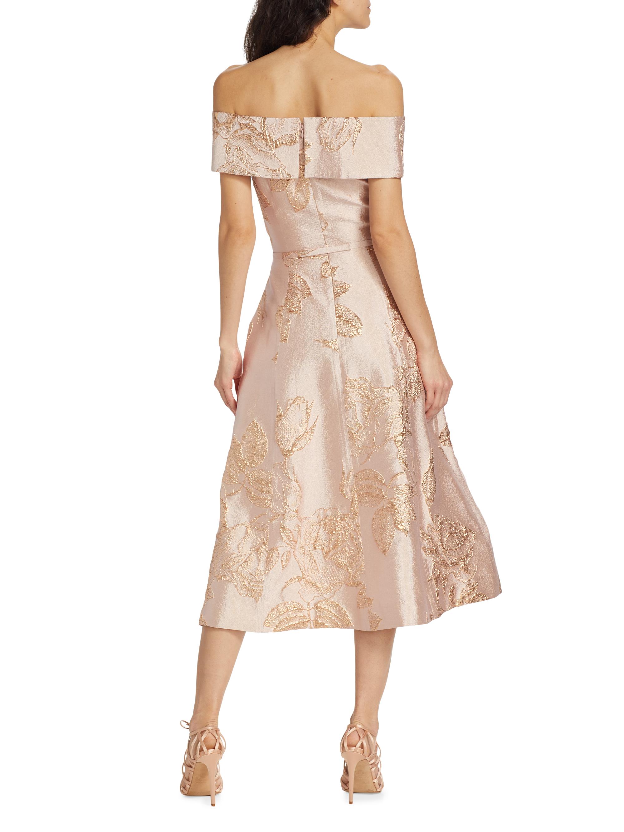 Teri Jon by Rickie Freeman Metallic Floral Off-The-Shoulder Cocktail Dress