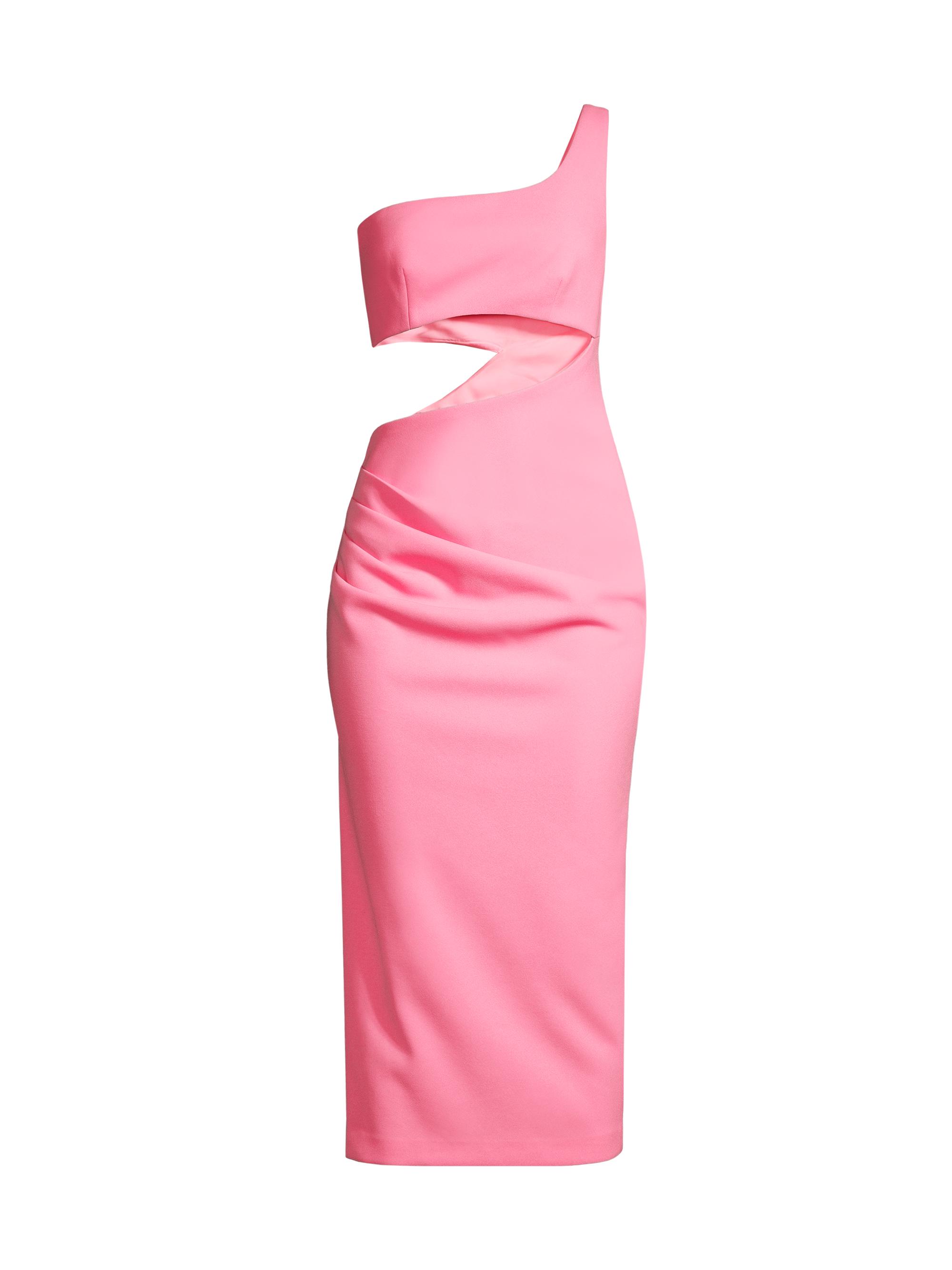 Misha Elisebeth Crepe One-Shoulder Midi-Dress