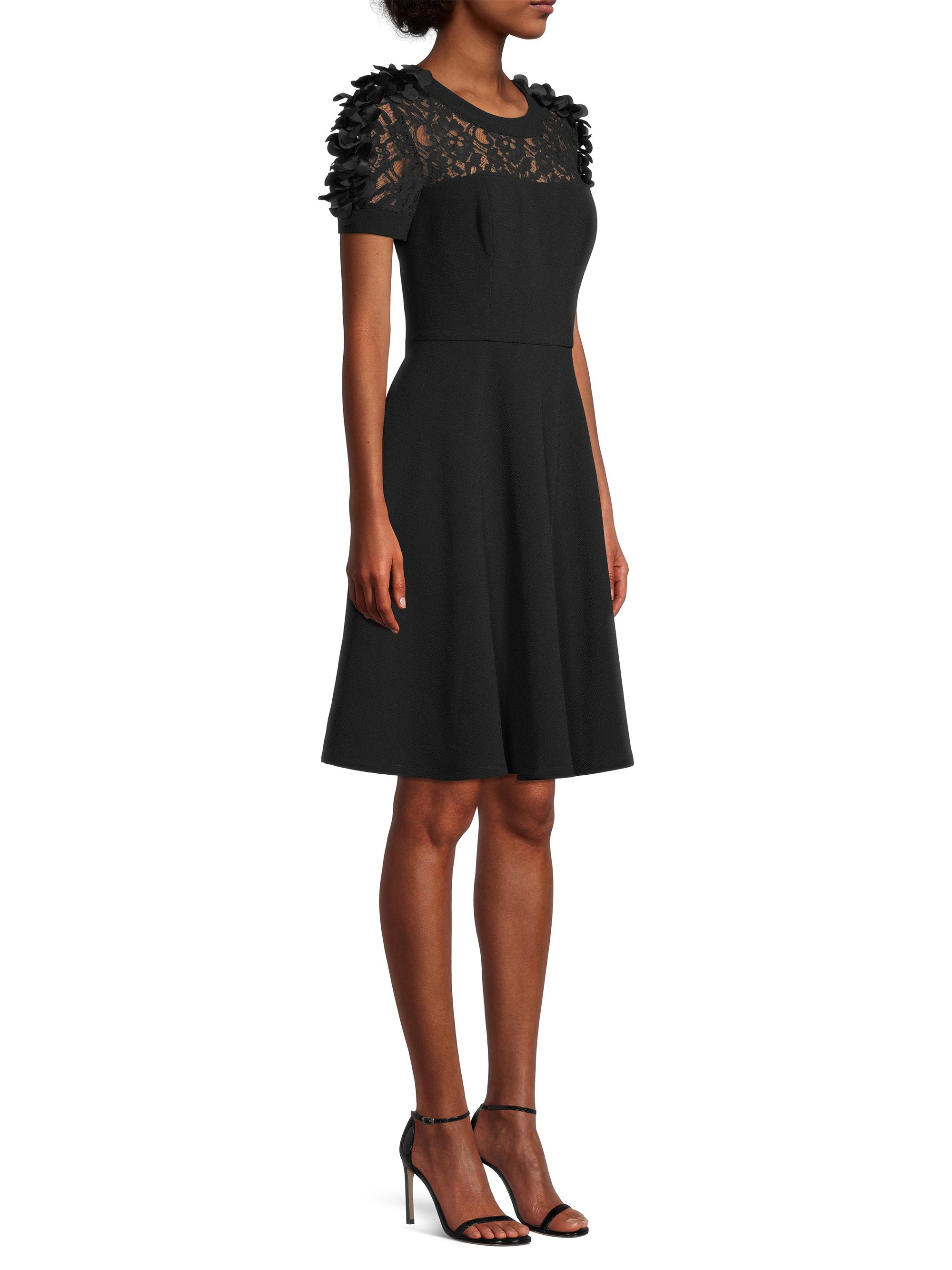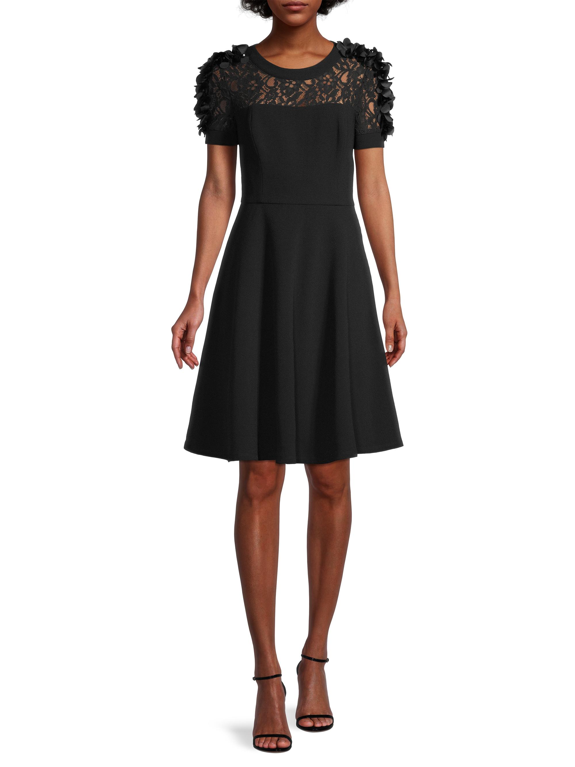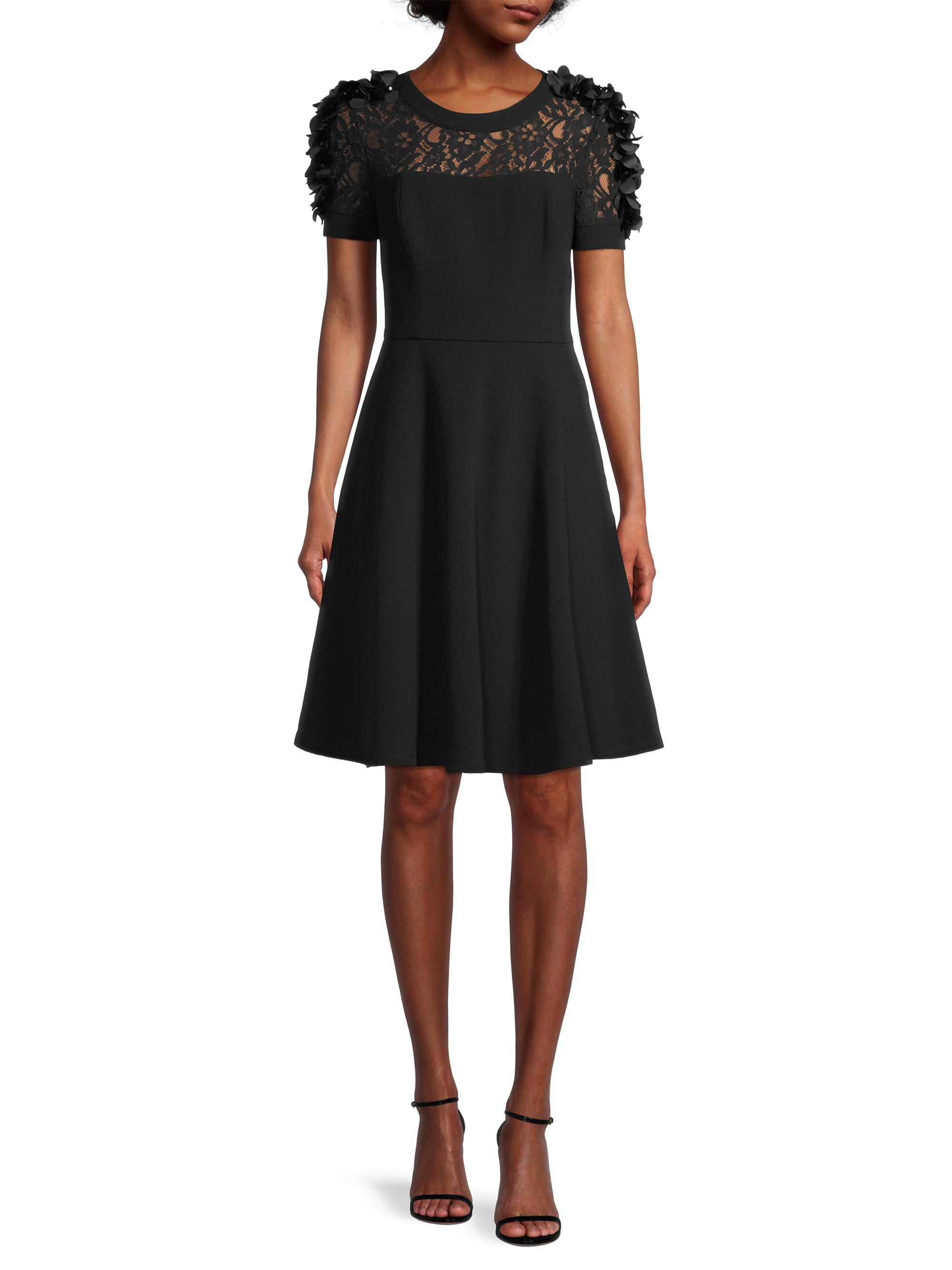 Shani Floral Applique Fit-&-Flare Crepe Dress