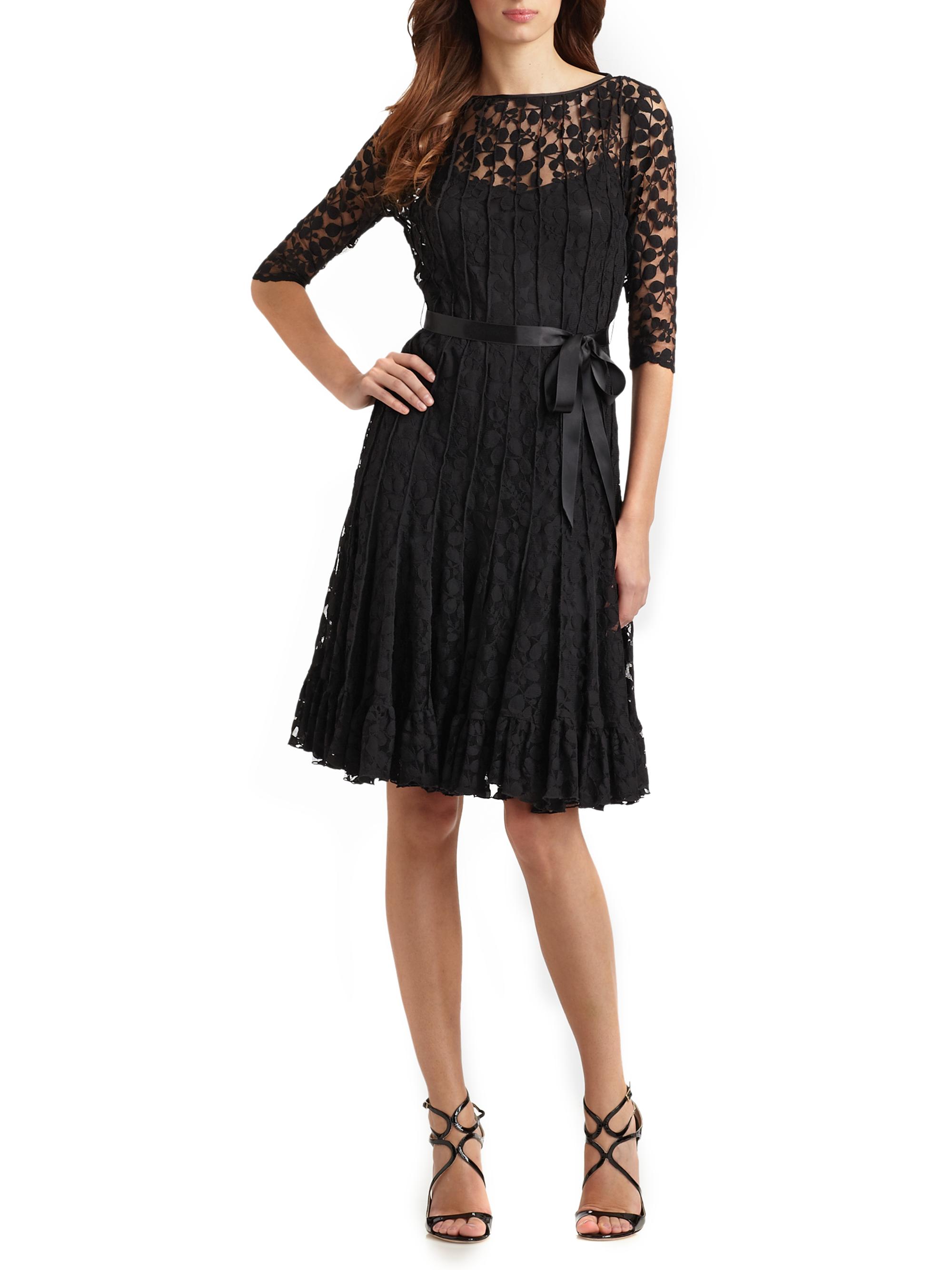 Teri Jon by Rickie Freeman Lace Pintuck Dress