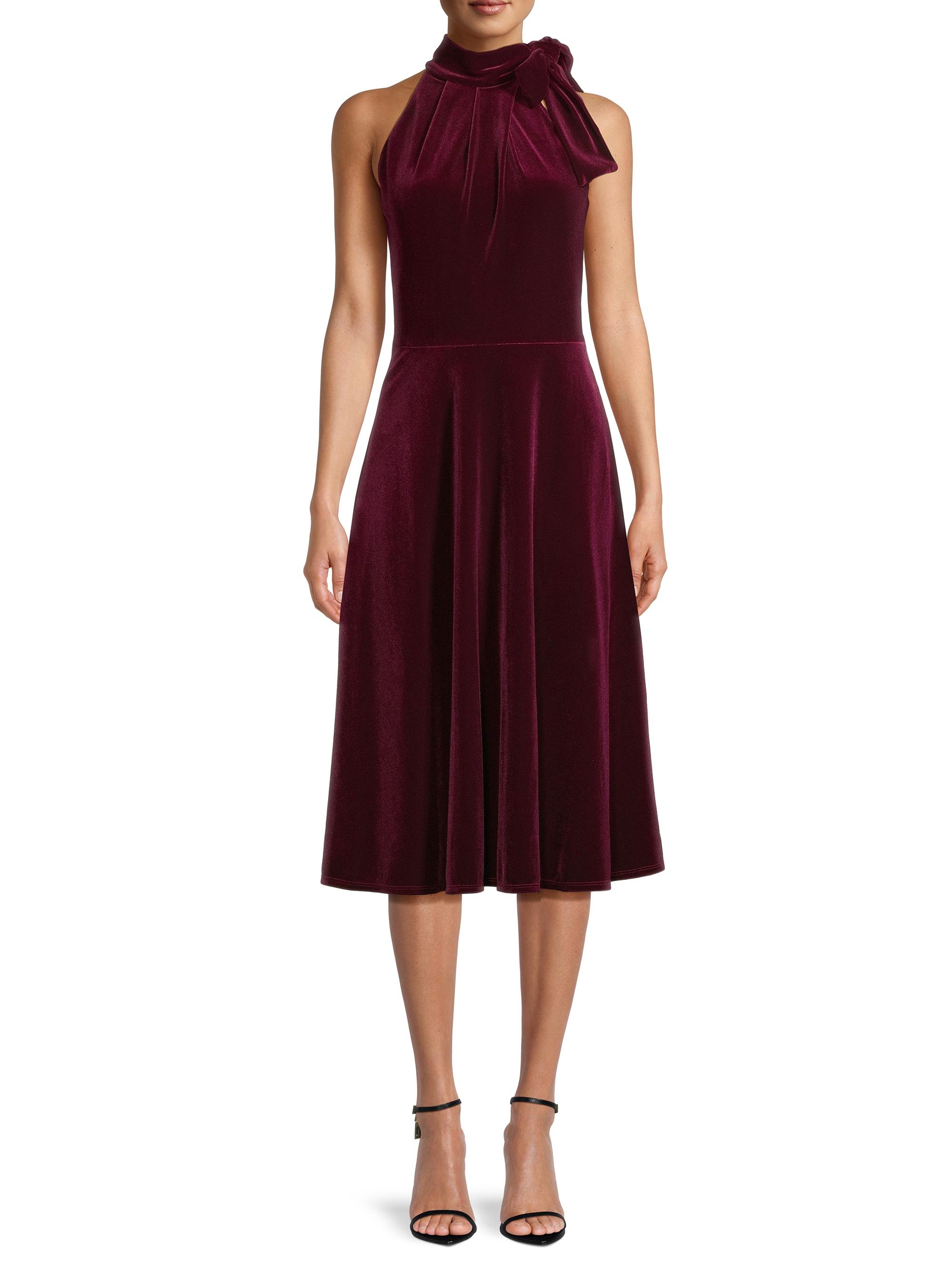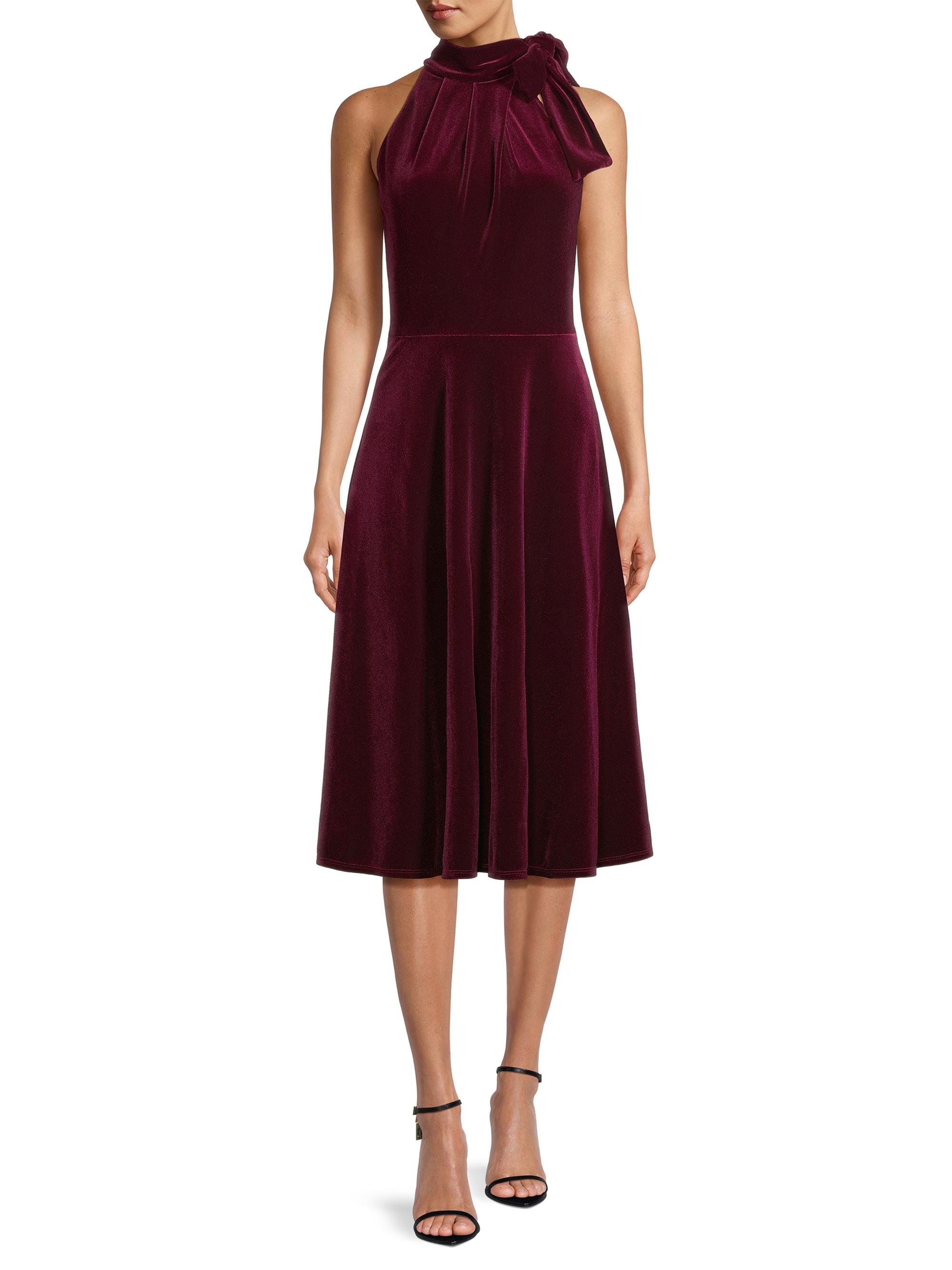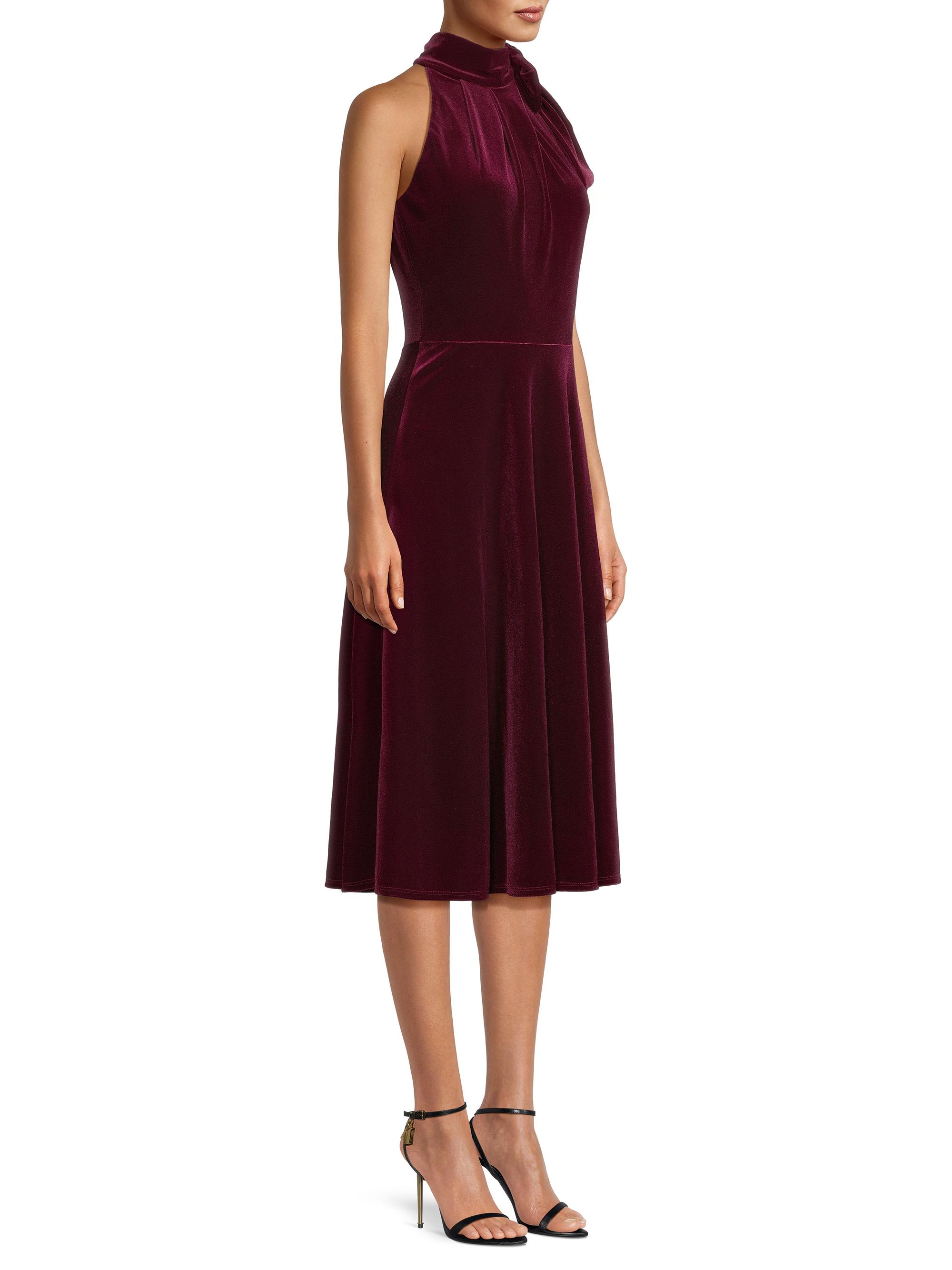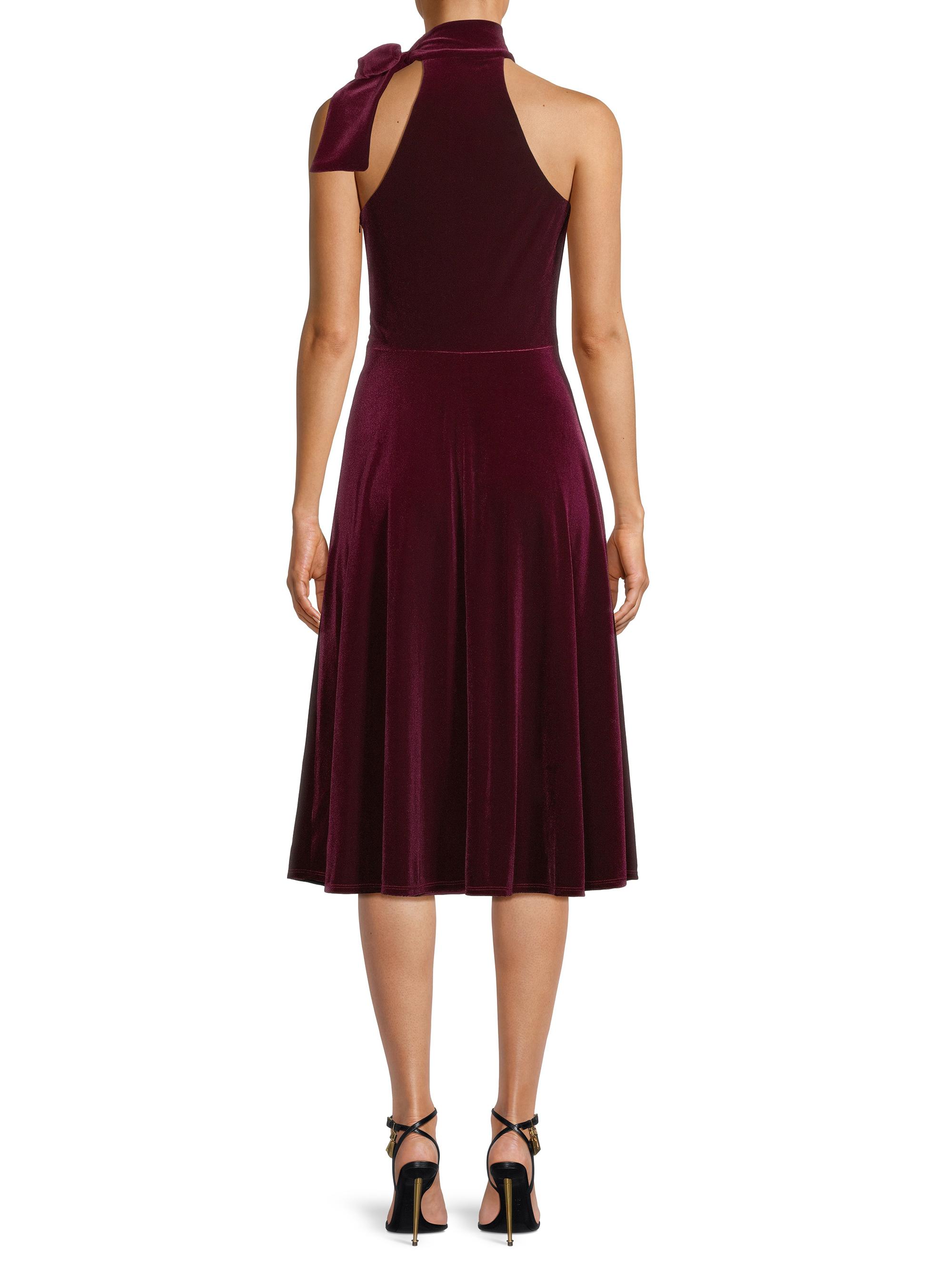 Black Halo Audrey Velvet Tie-Neck Midi Dress