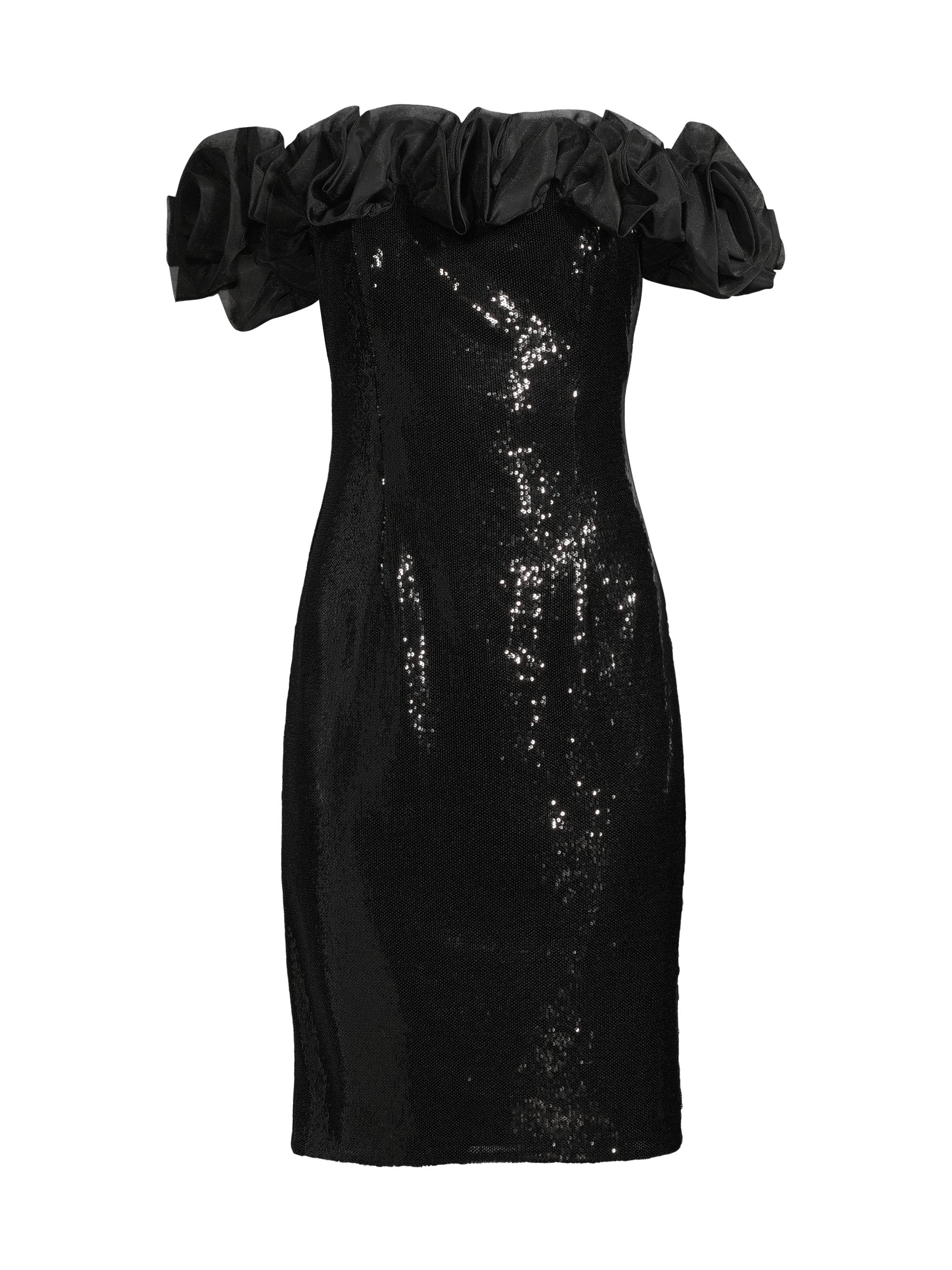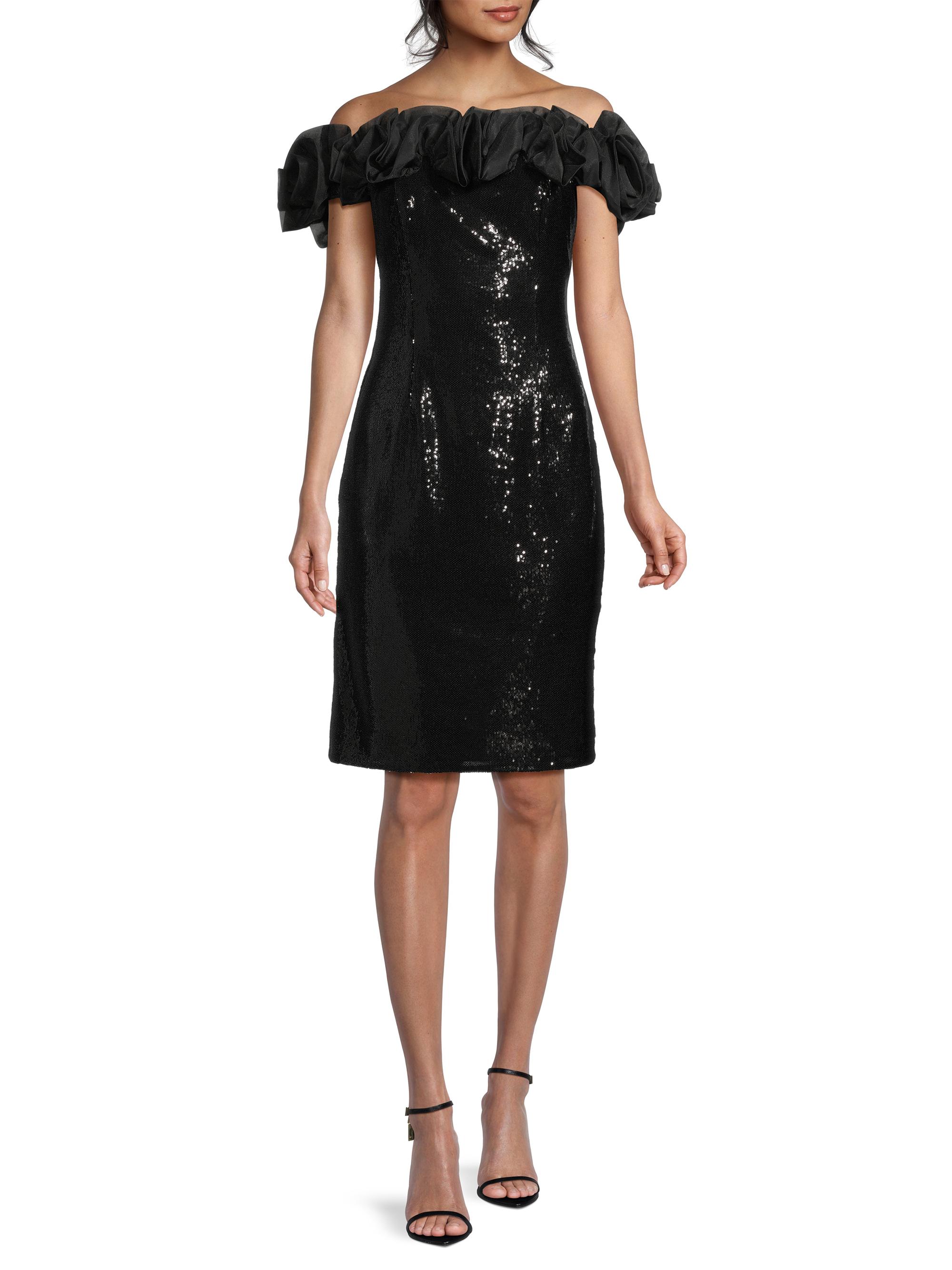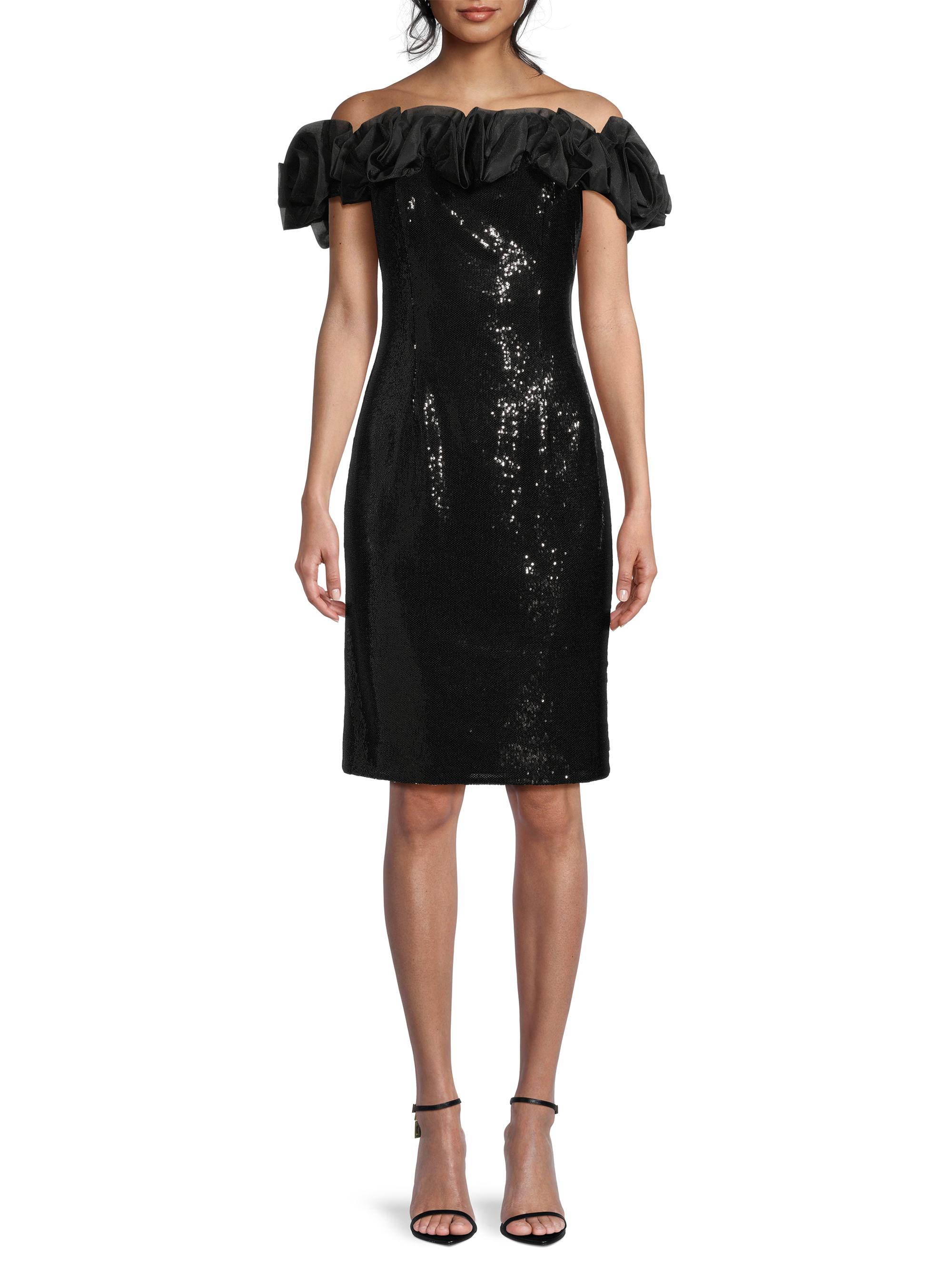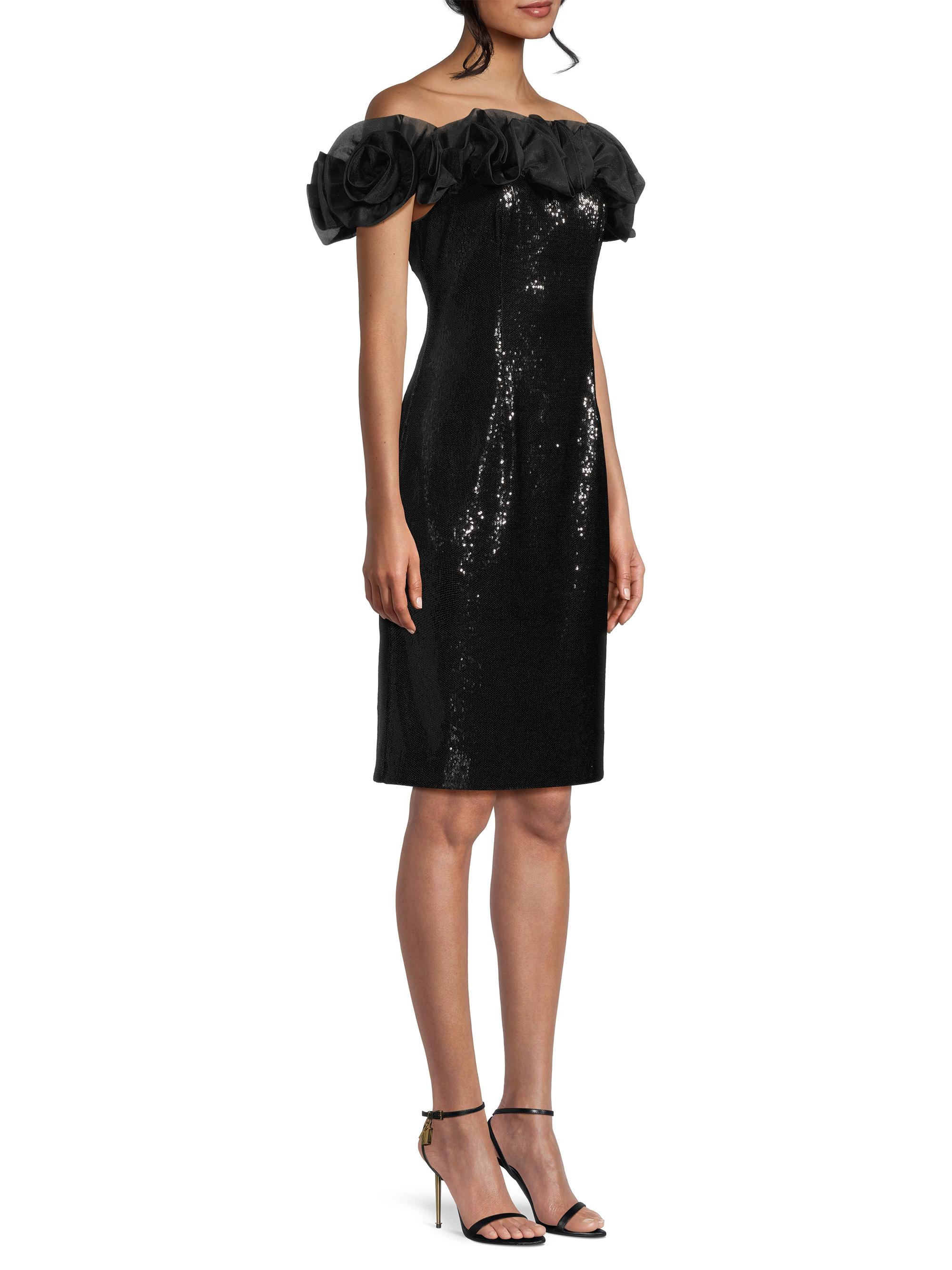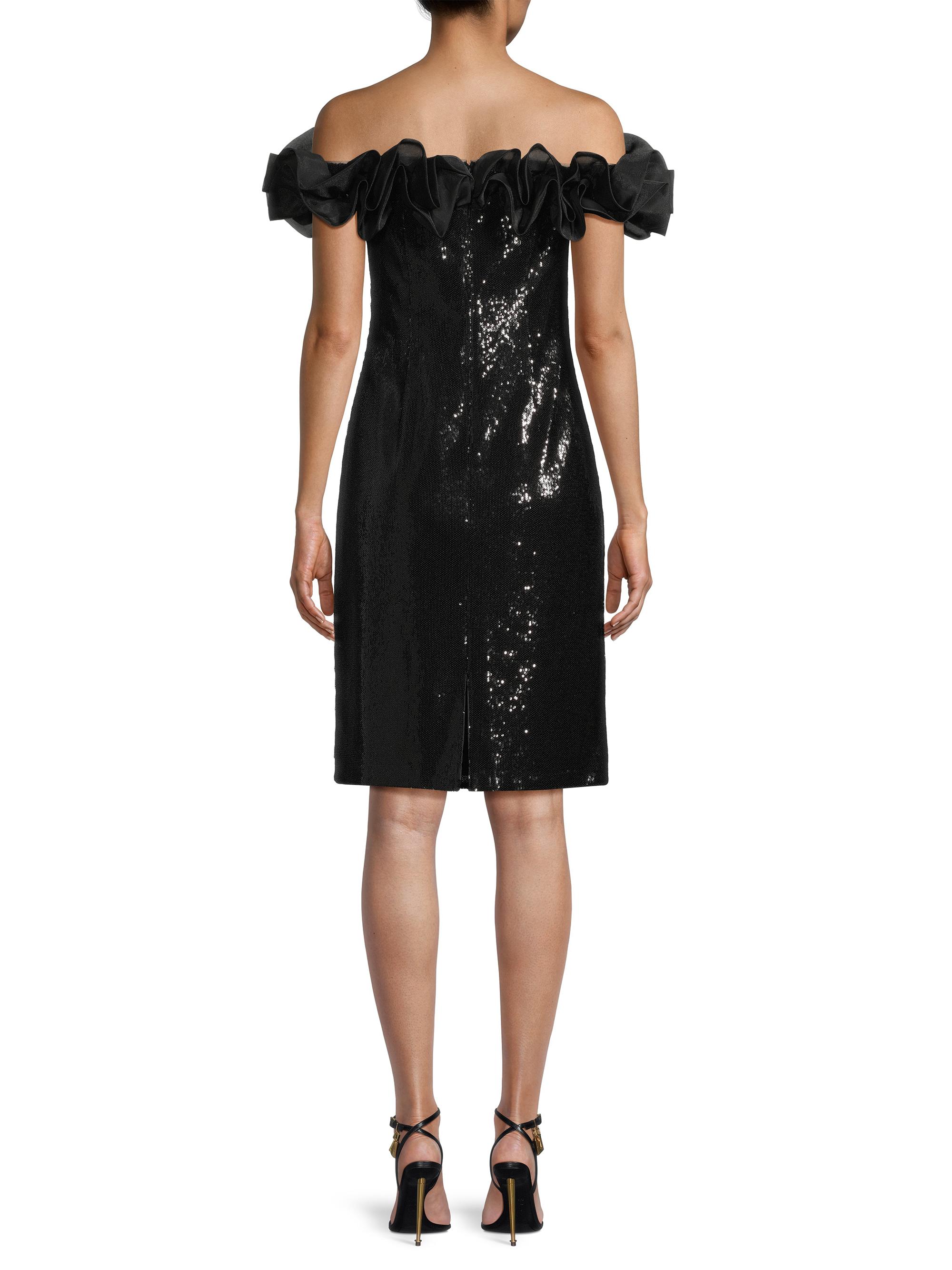 Aidan Mattox Sequined Ruffled Off-the-Shoulder Sheath Dress